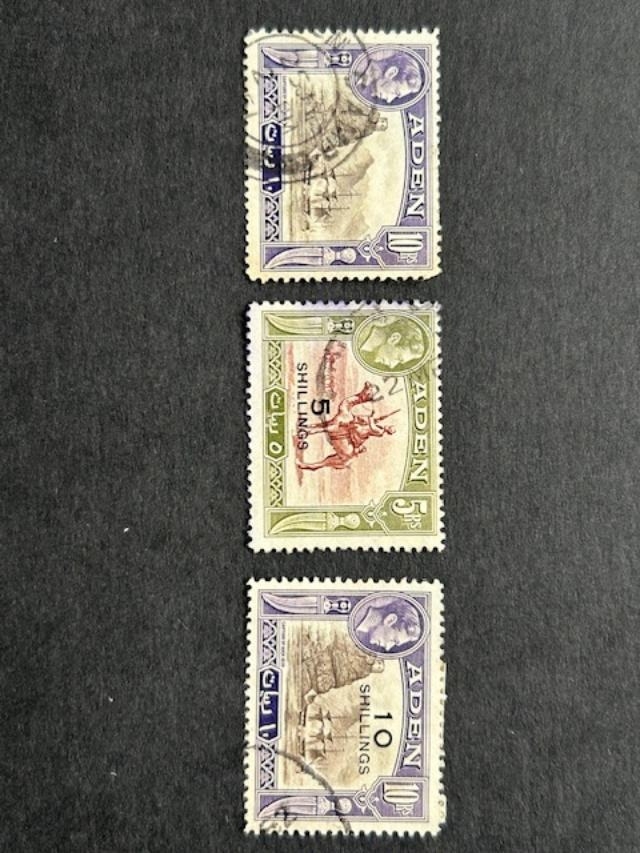 Aden 1939-48 10R & 1951 5/- & 10/- all cds used. (3) (S)