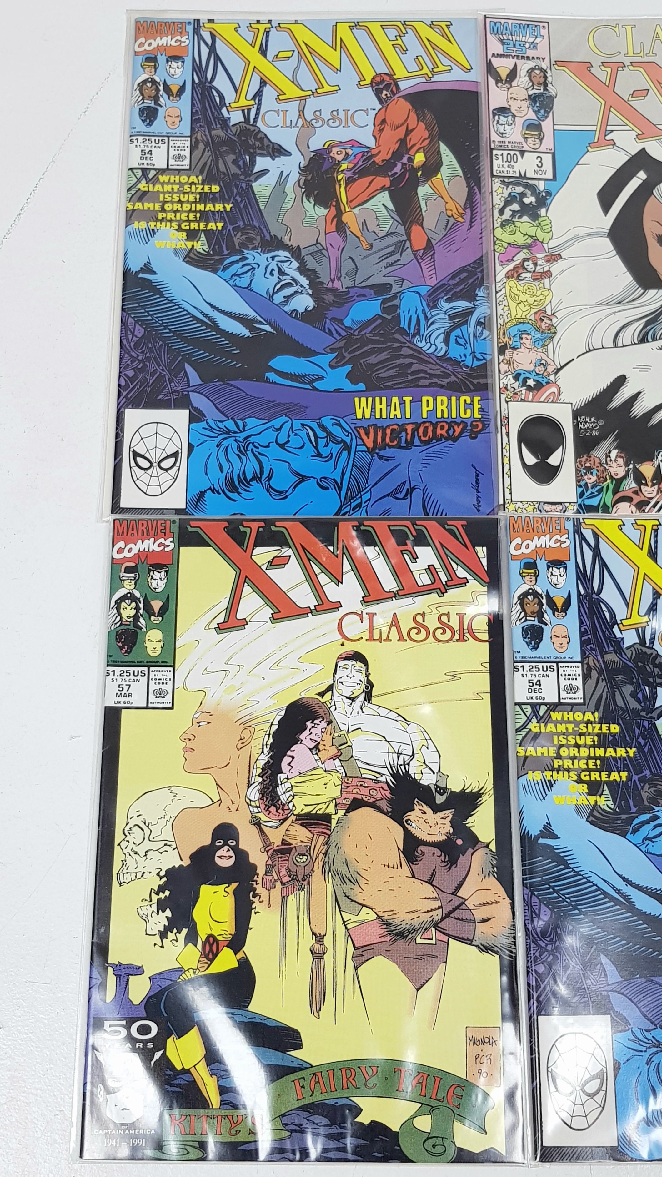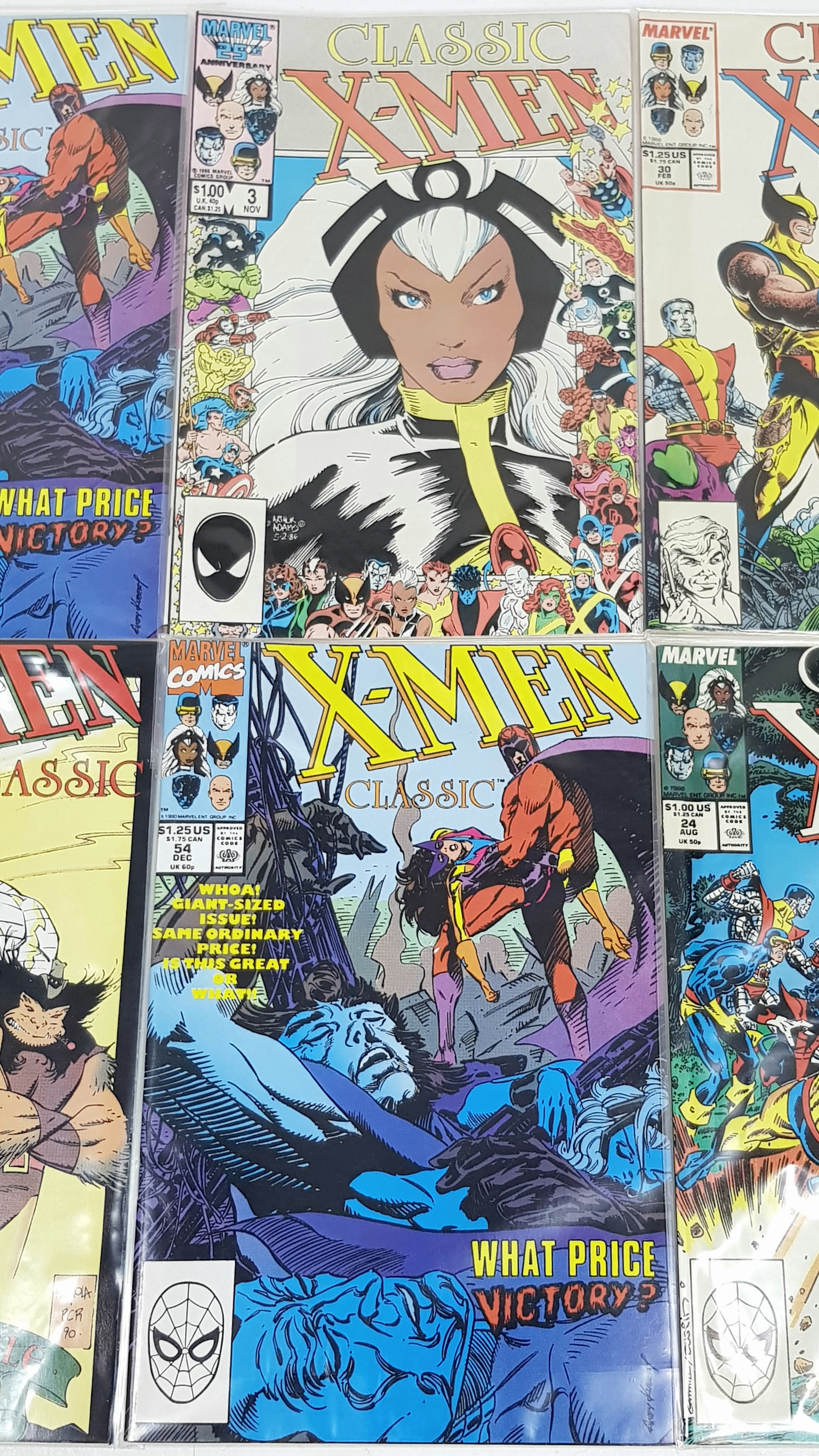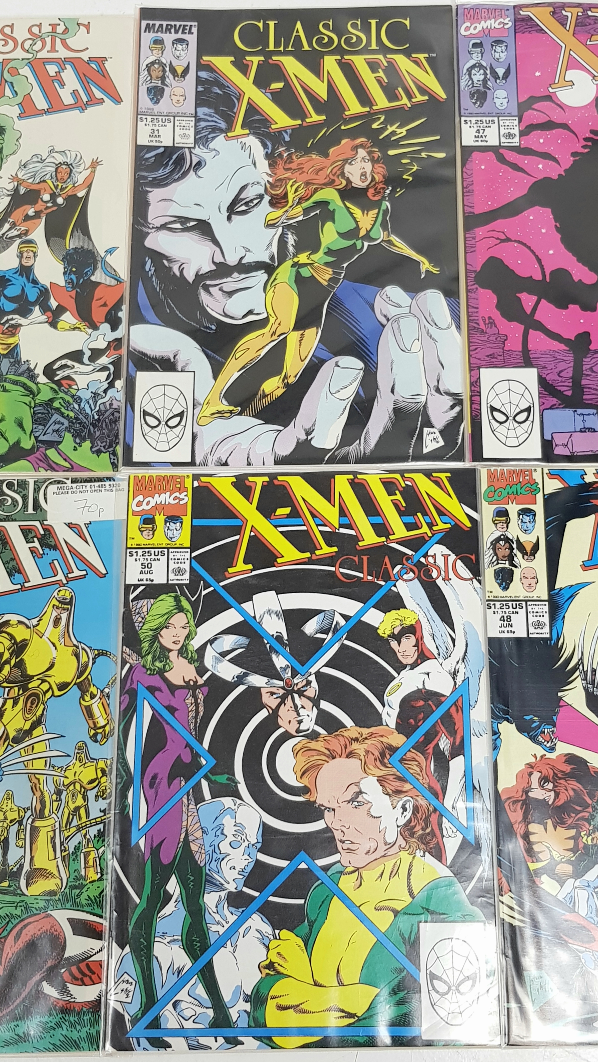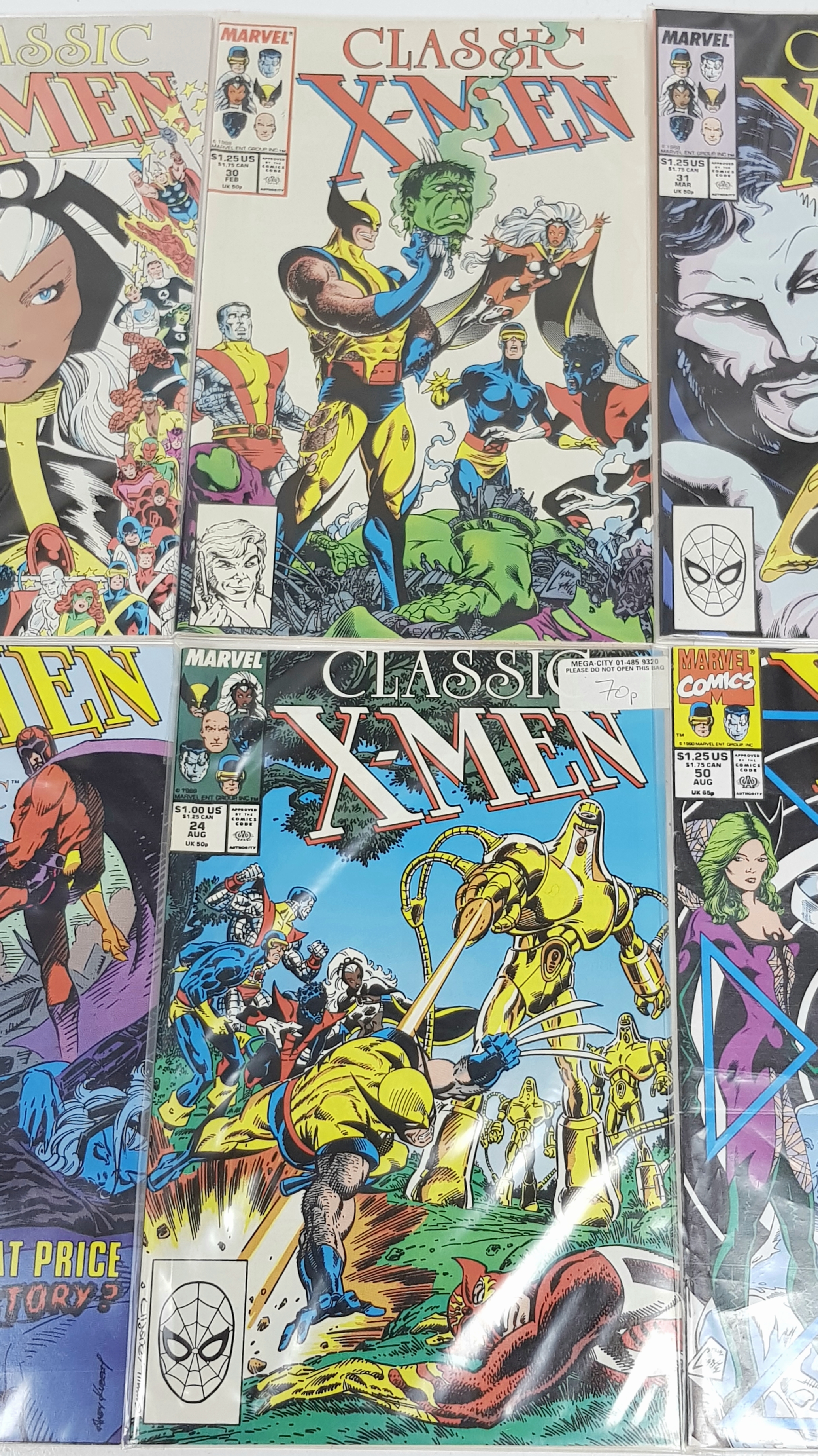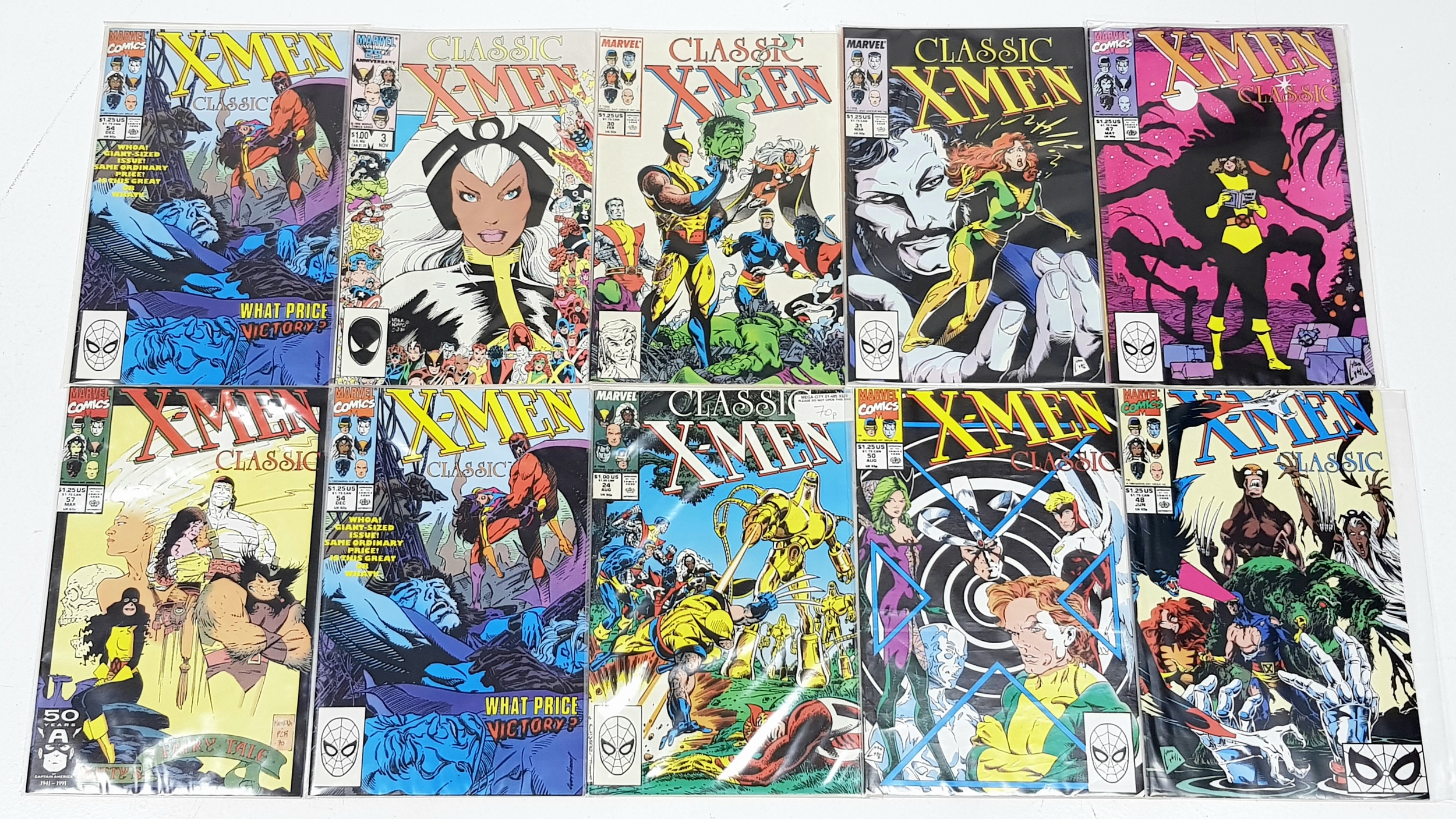 Ten Marvel X Men Classic Comics - Most Being in Very Fine to Very Fine Plus Grade. All individually wrapped in plastic. Please refer to photos for finer details.