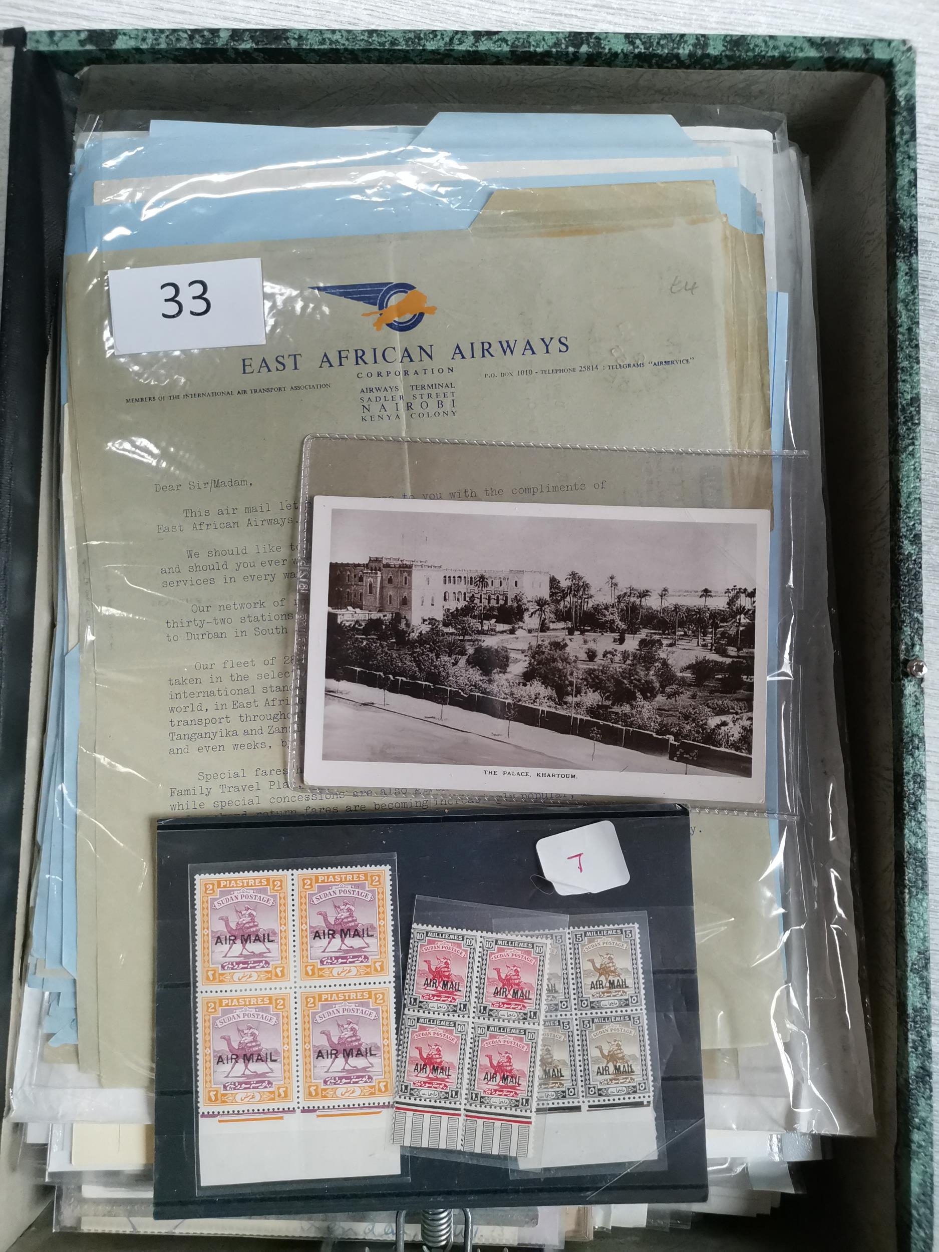 MIXED WORLD. POSTAL HISTORY. Collection of covers + some stamps in box-file incl. interest in GB/East Africa early 1930's Air Mail covers. (qty)