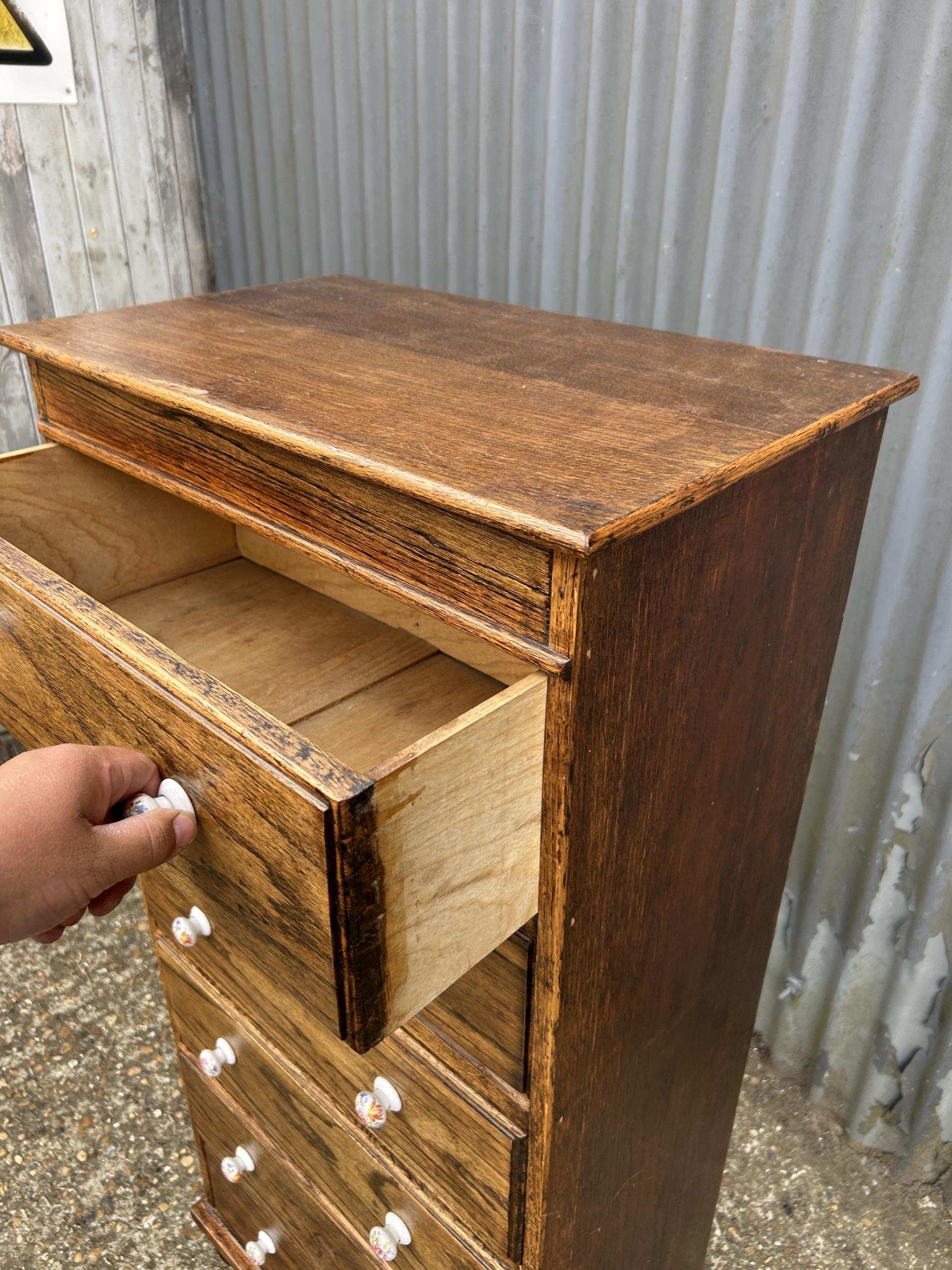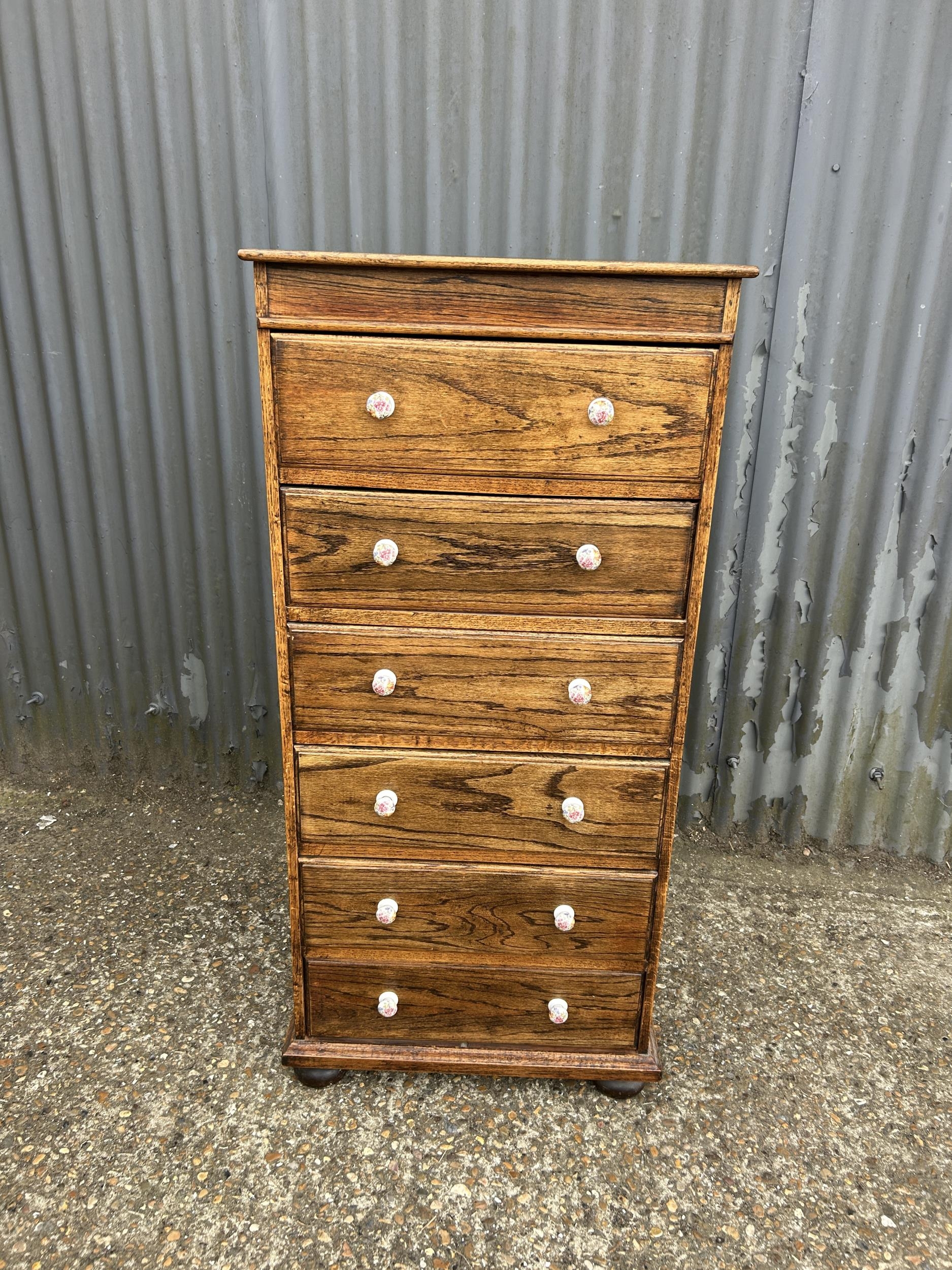 A oak tall boy chest of six drawers