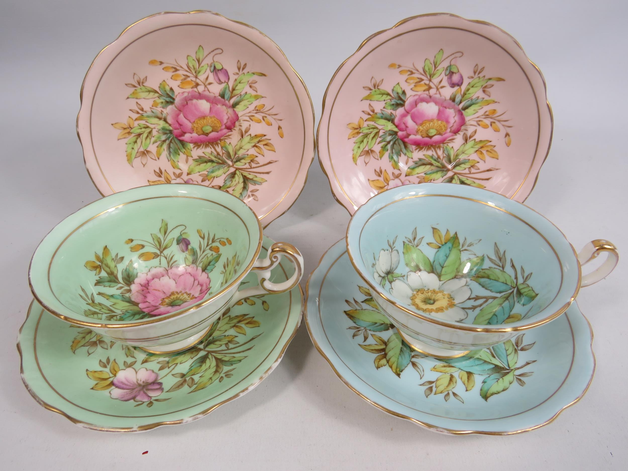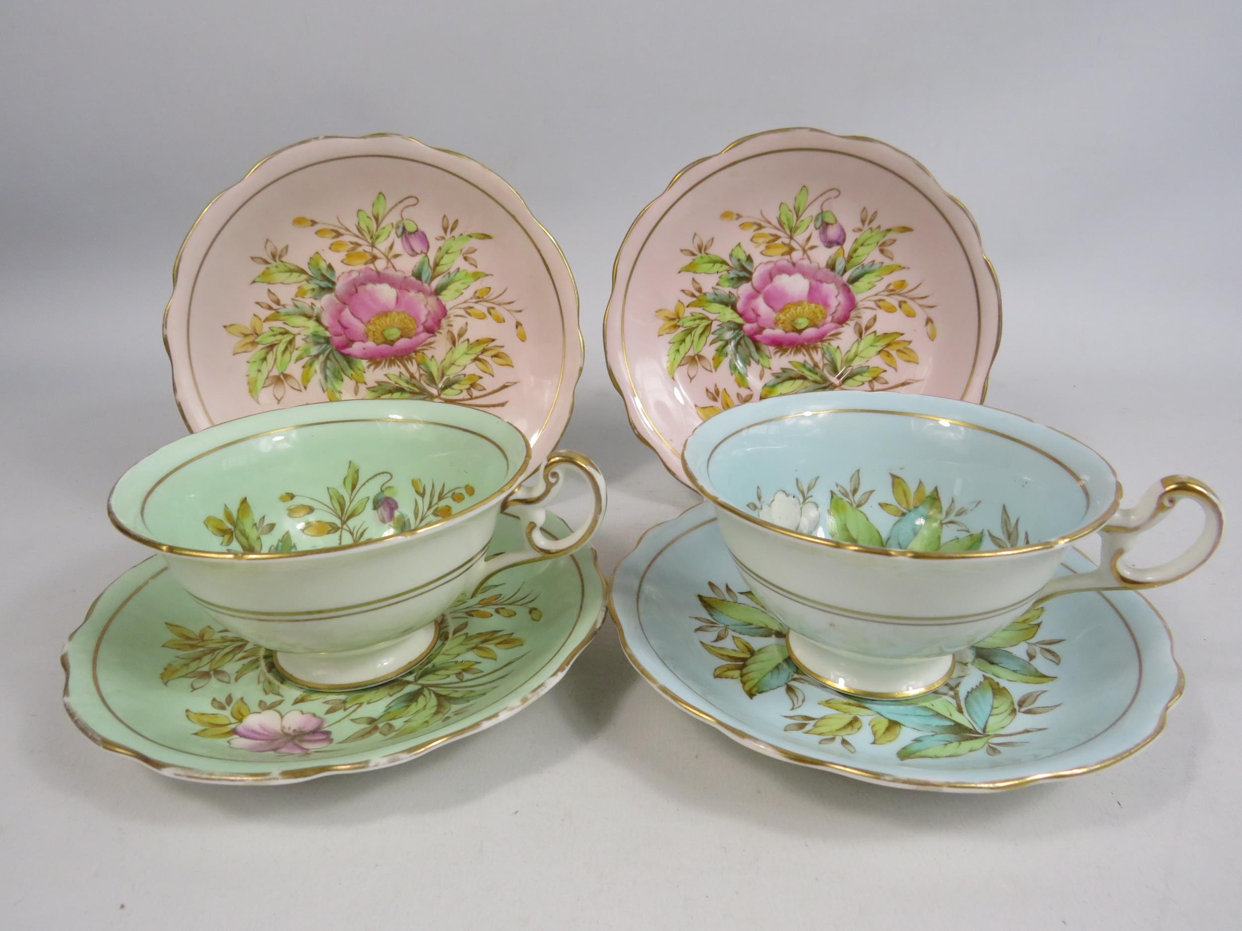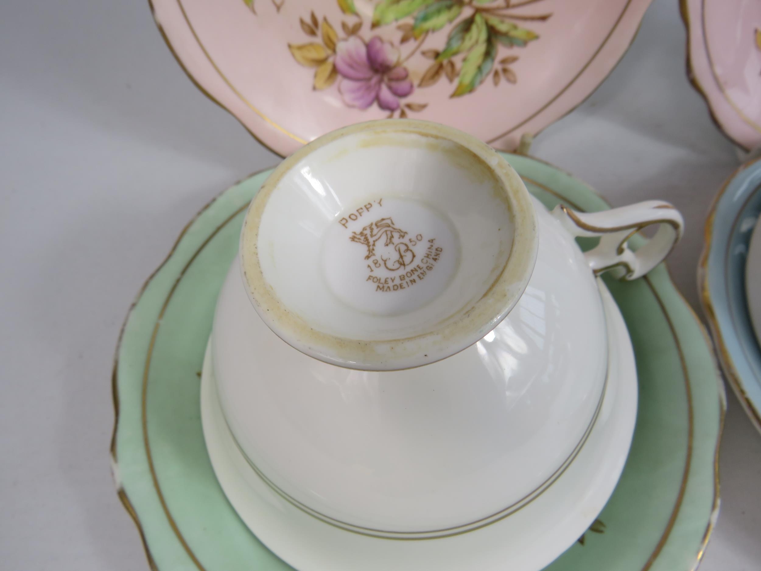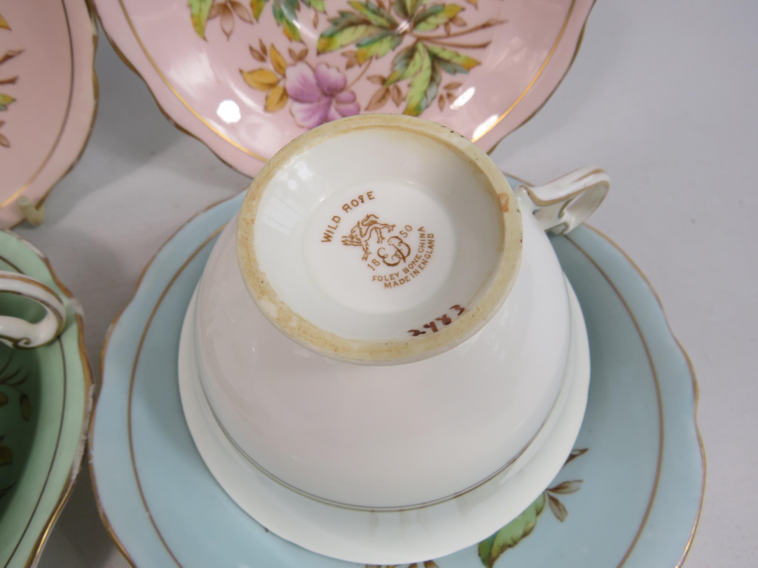 2 Foley china E Brain cabinet cups and saucers plus 2 spare saucers.