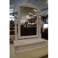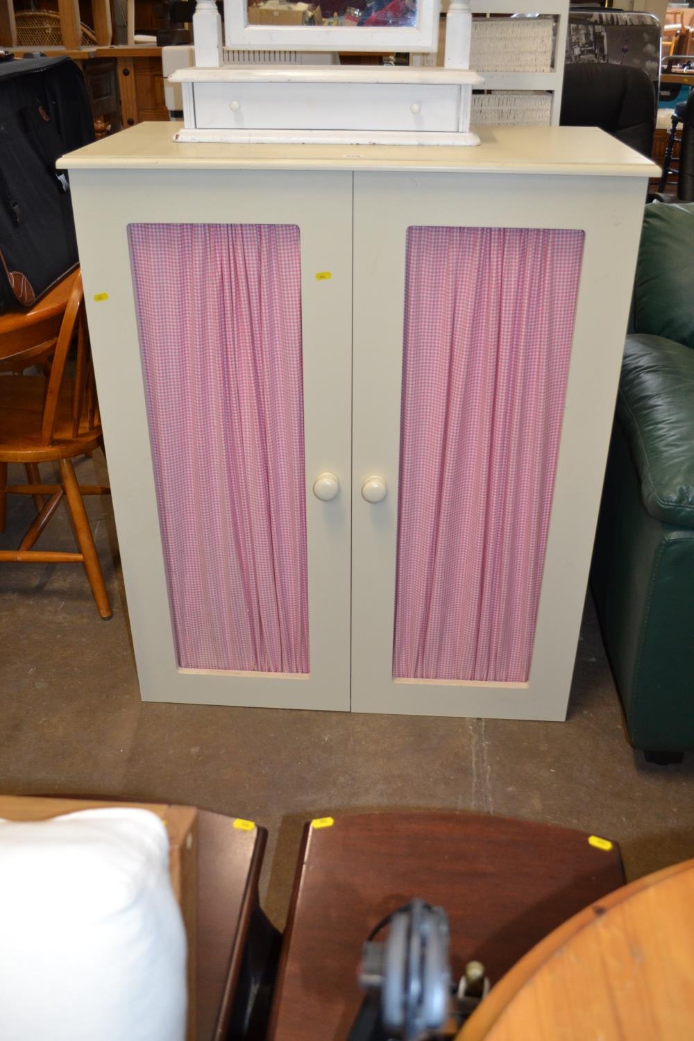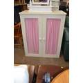 SMALL HALF HEIGHT WARDROBE, PAINTED CREAM, PINK MATERIAL CURTAIN FRONTED