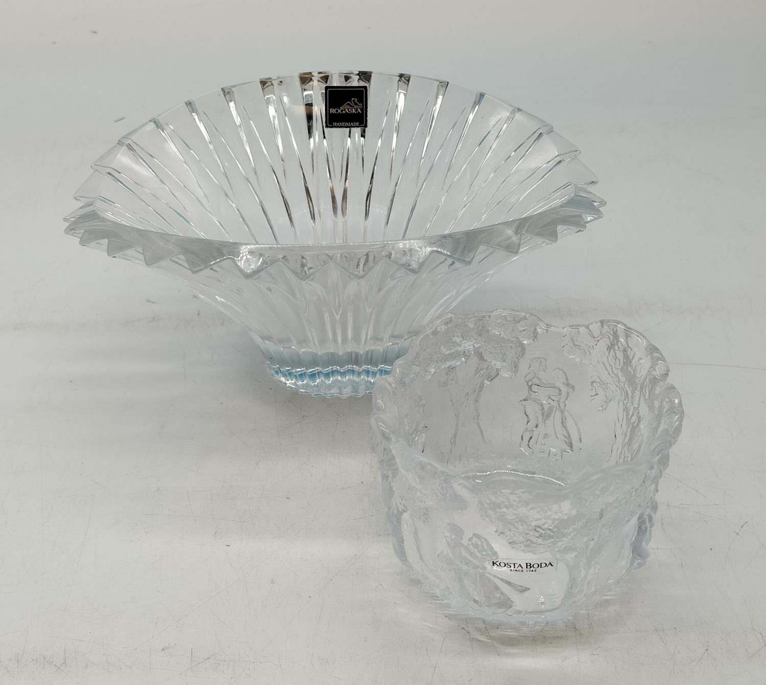 Kosta Boda Glass Tea Light Holder plus Hand Made Rogaska Crystal Bowl. 11cm High, 22cm x 17cm.