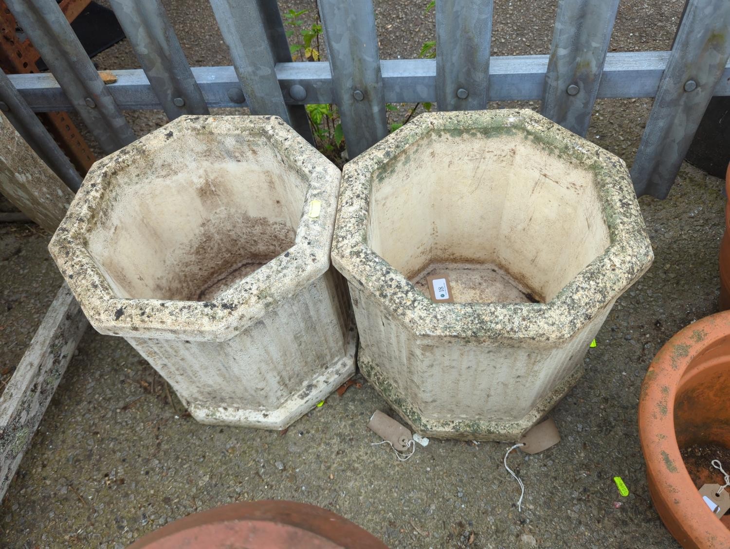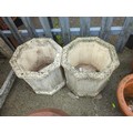 Pair of octagonal concrete planters. Dia33cm H33cm.