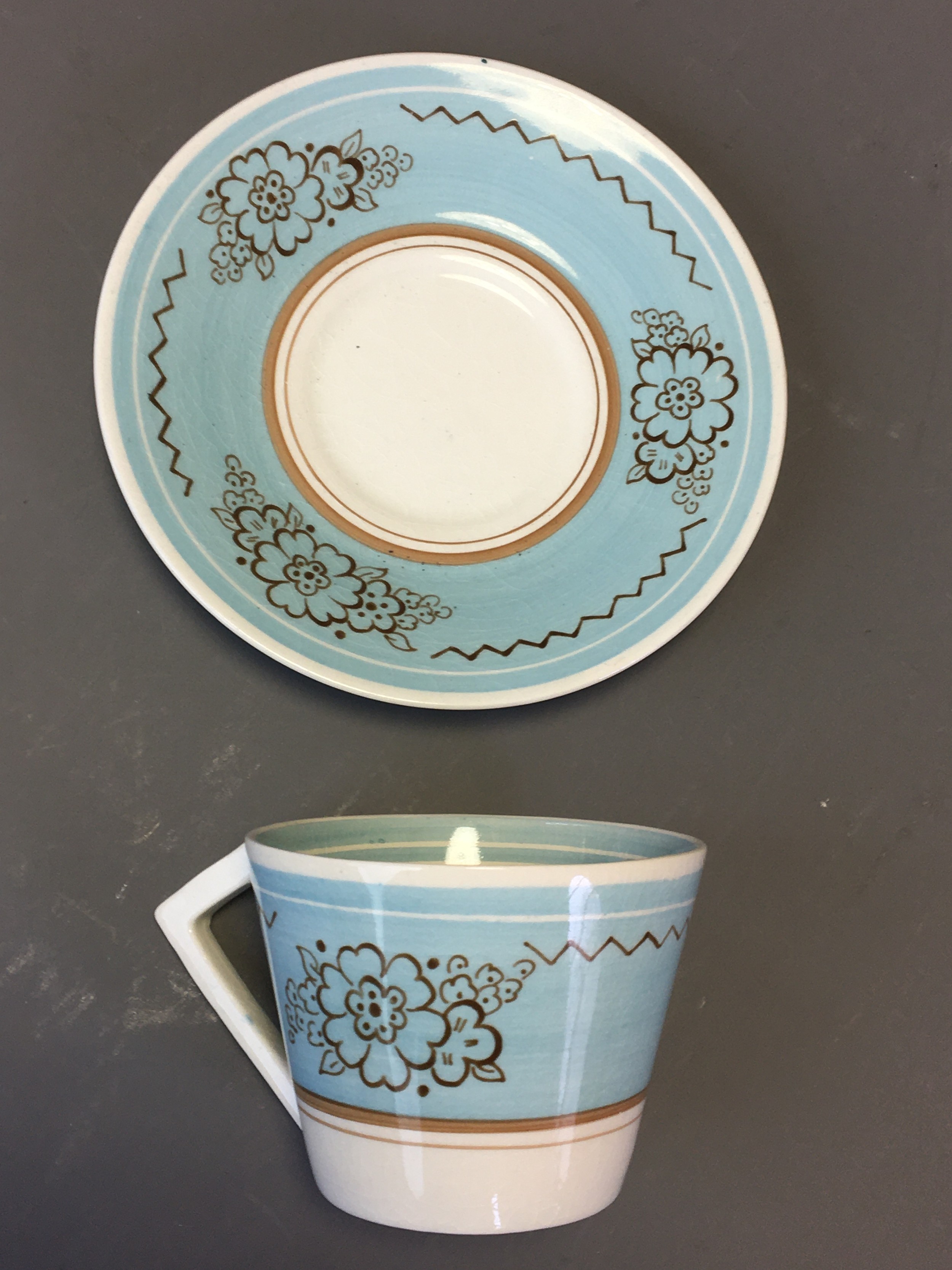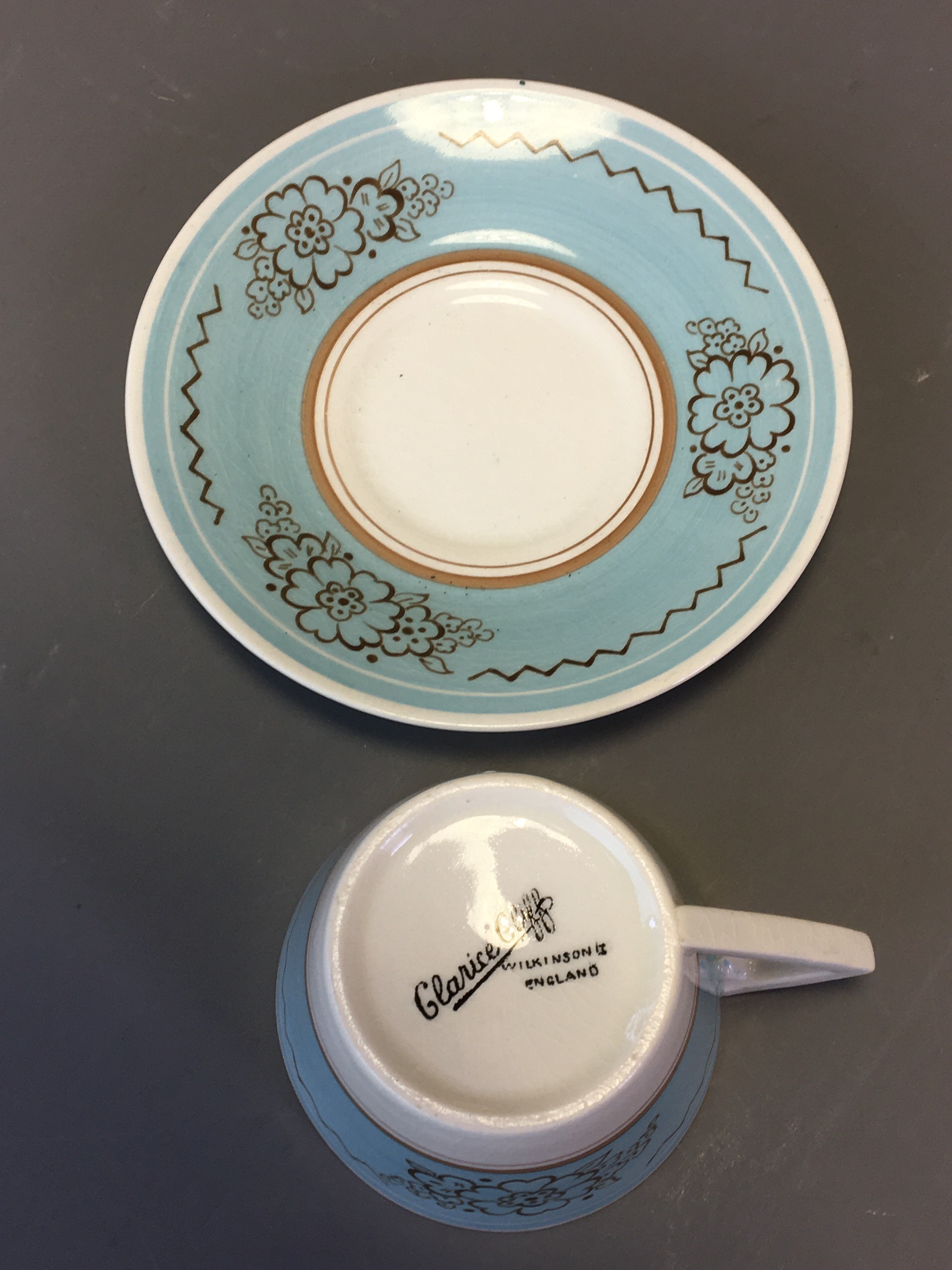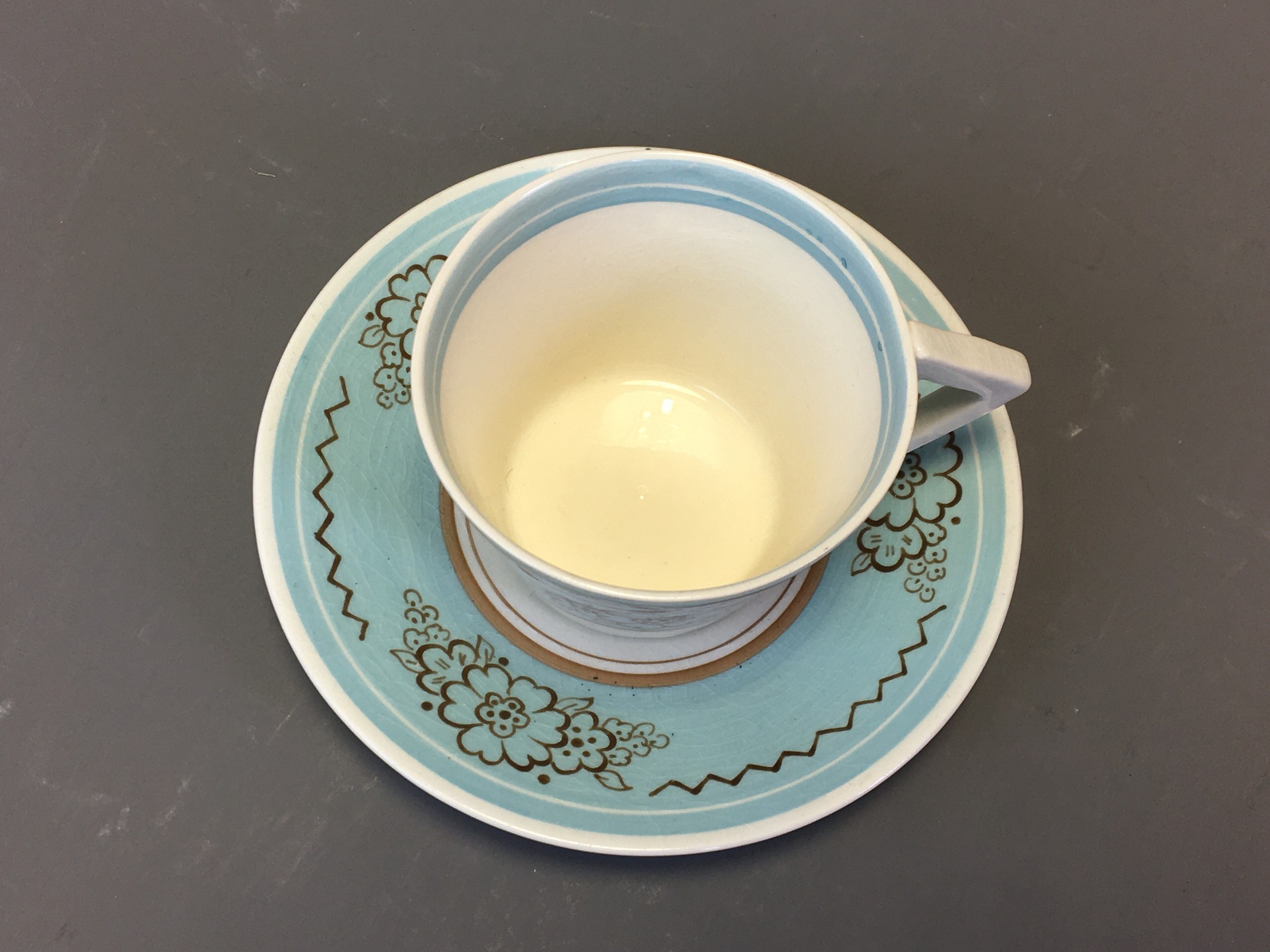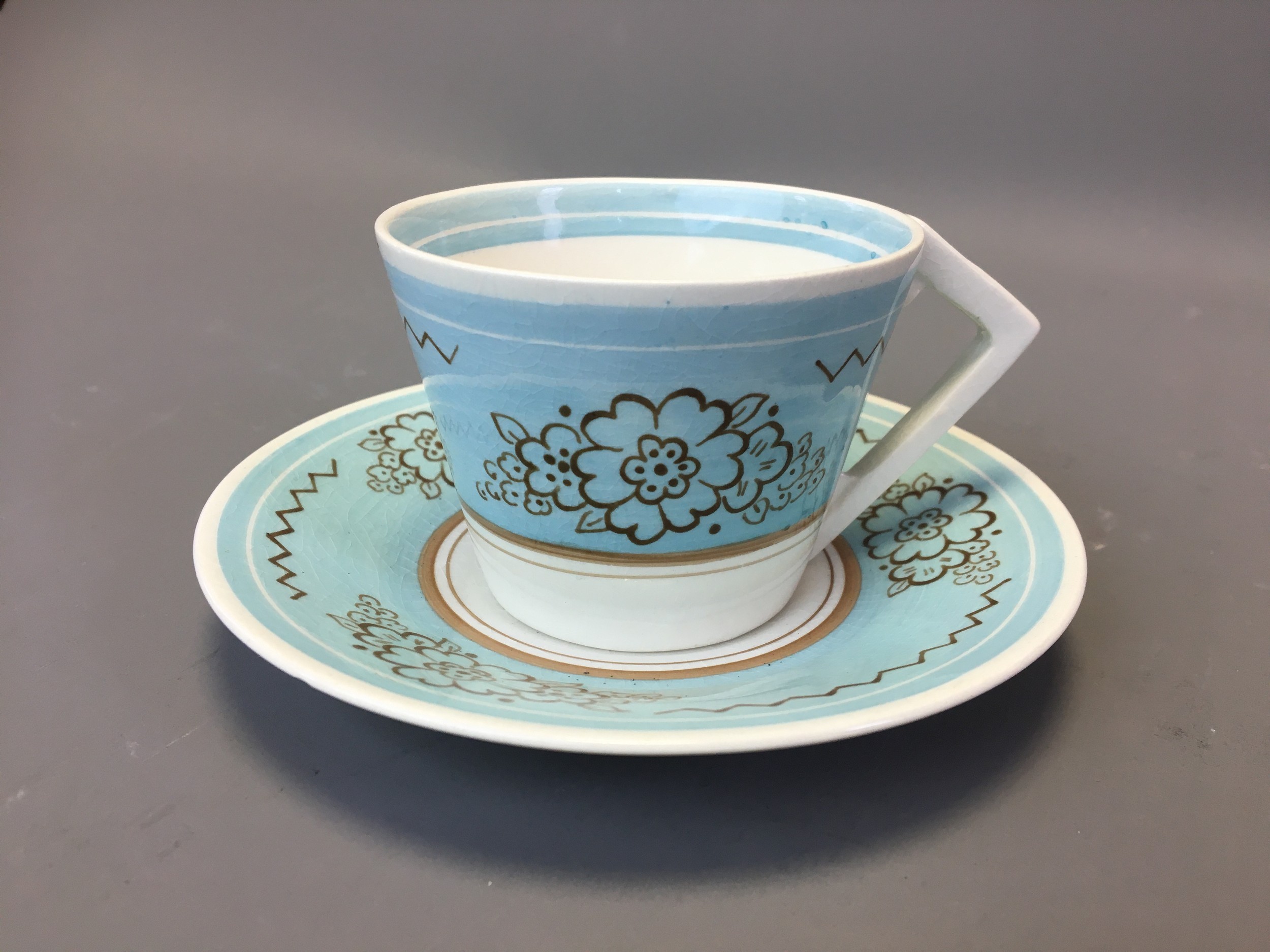 Art Deco - Clarice Cliff for Wilkinson Blue and Floral Decorated Cup and Saucer.