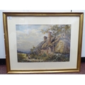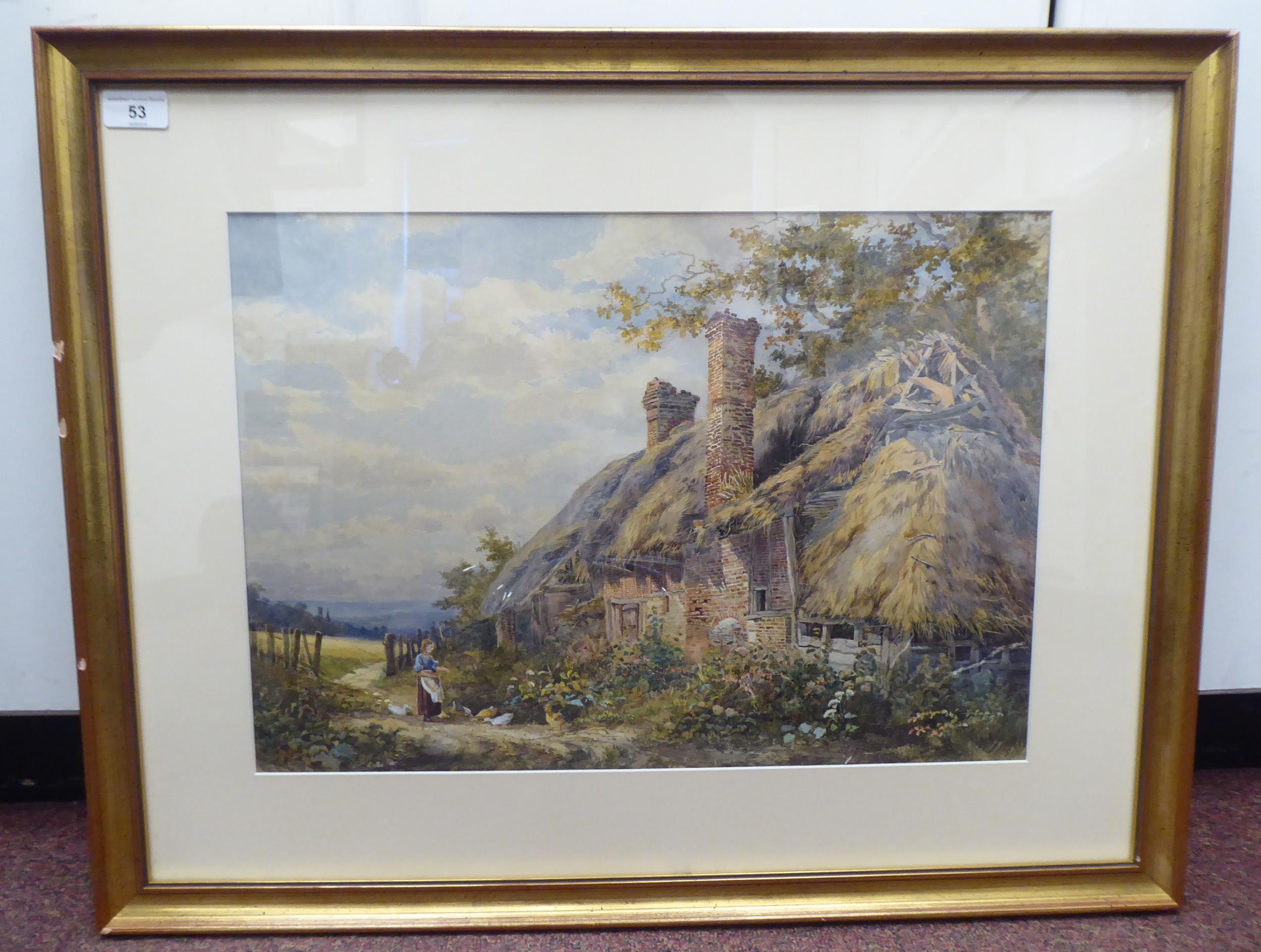 Albert Stevens - 'Feeding Poultry' watercolour bears a signature & label verso 14" x 19" framed