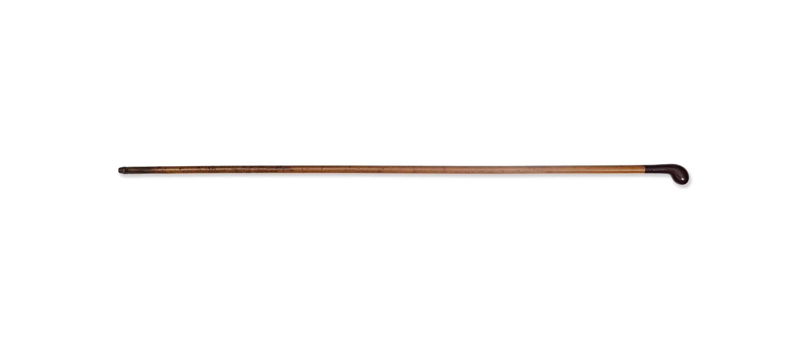 A PALM GRIP WALKING CANE WITH CHERRY AMBER HANDLE AND HARDWOOD SHAFT