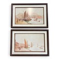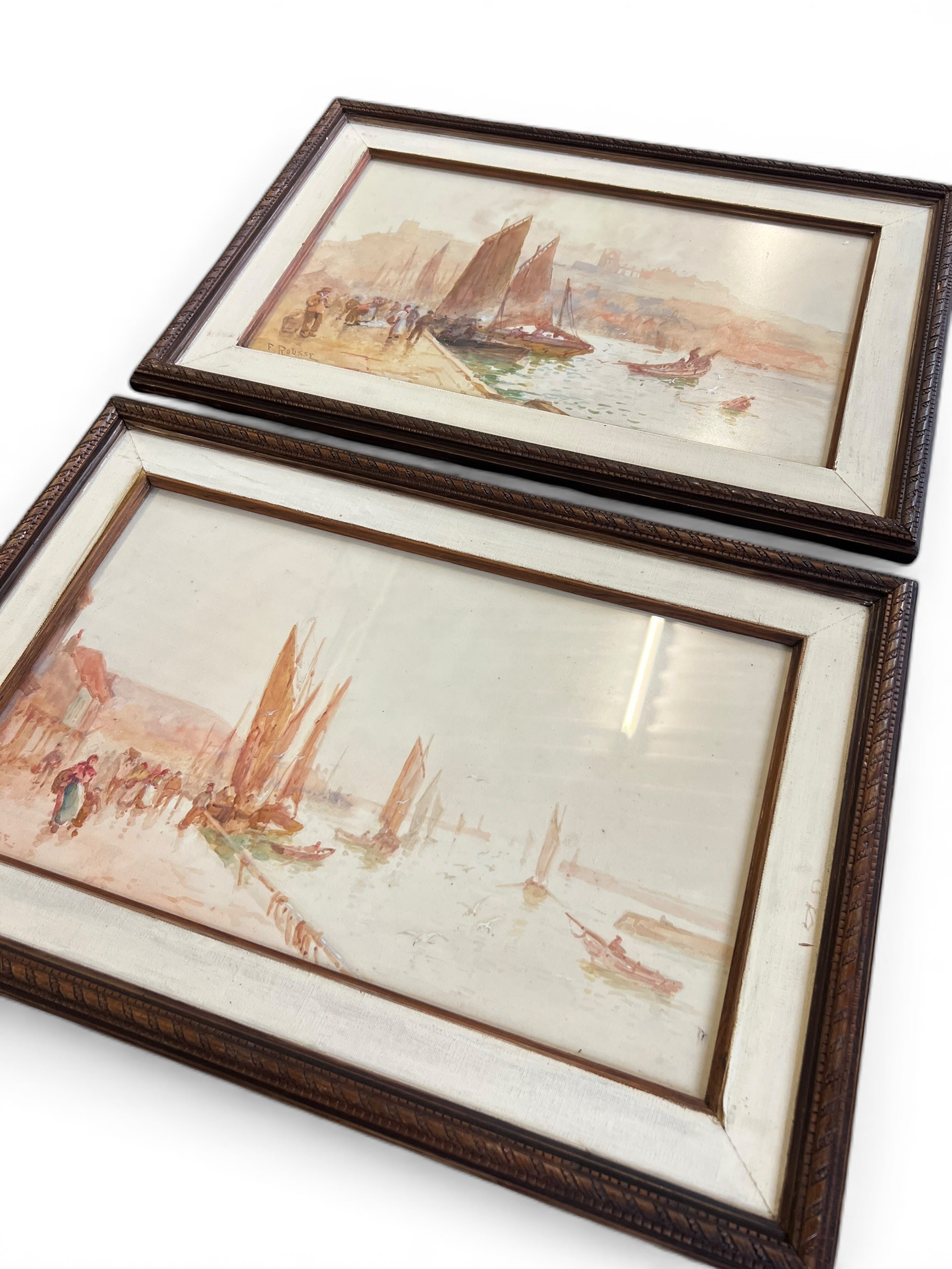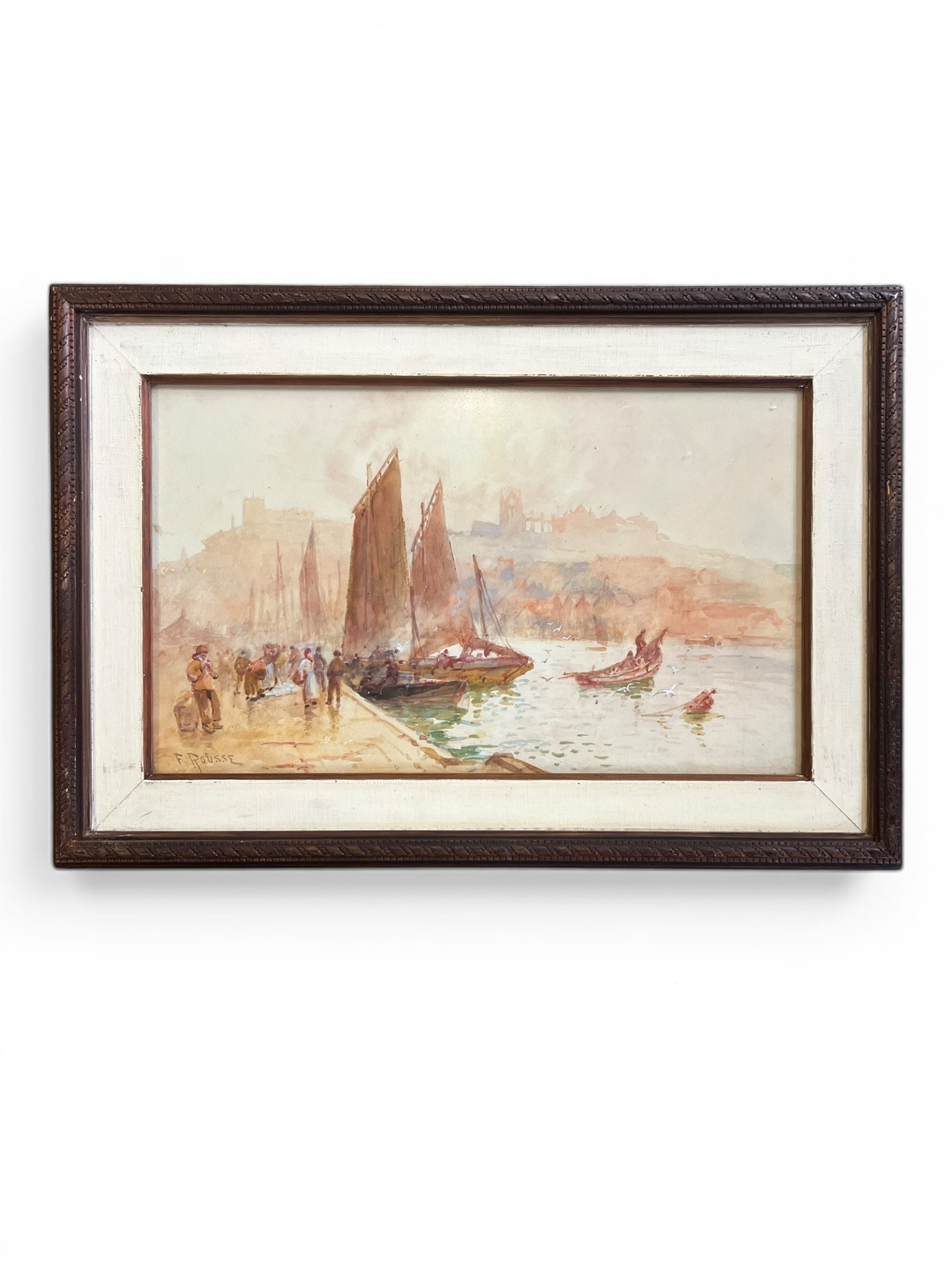 Late 19th Century Pair of Watercolours by Frank Rousse – Yorkshire Coast Seascapes with Boats
