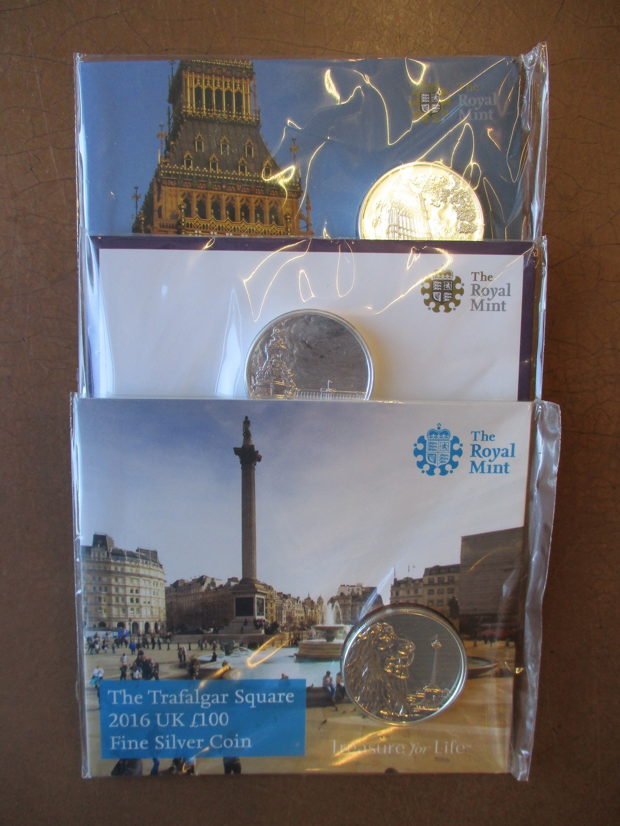 Uncirculated silver range on royal Mint cards with £20 2013-2017 (6 different), £50 2015 Britannia, 2016 Shakespeare, £100 2015 Big Ben, Buckingham Palace, 2016 Trafalgar Square. Qty 11 (T)