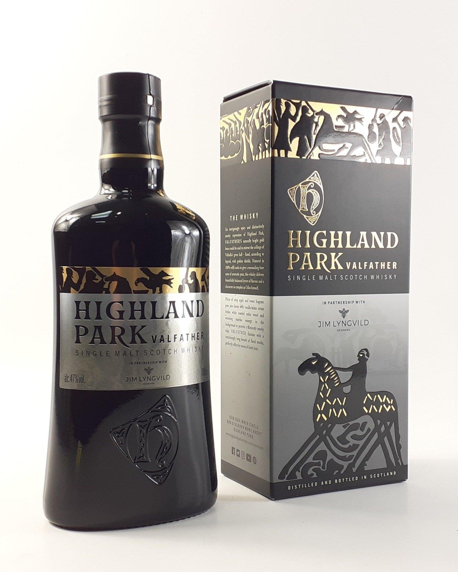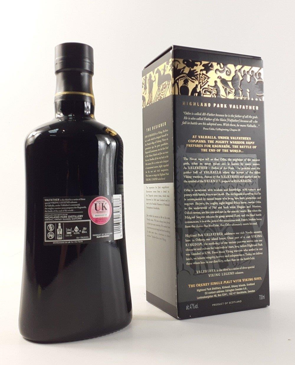 A boxed 700ml bottle of HIGHLAND PARK VALFATHER single malt Scotch whisky in partnership with JIM LYNGVILD being the third in the Viking Legend series.
