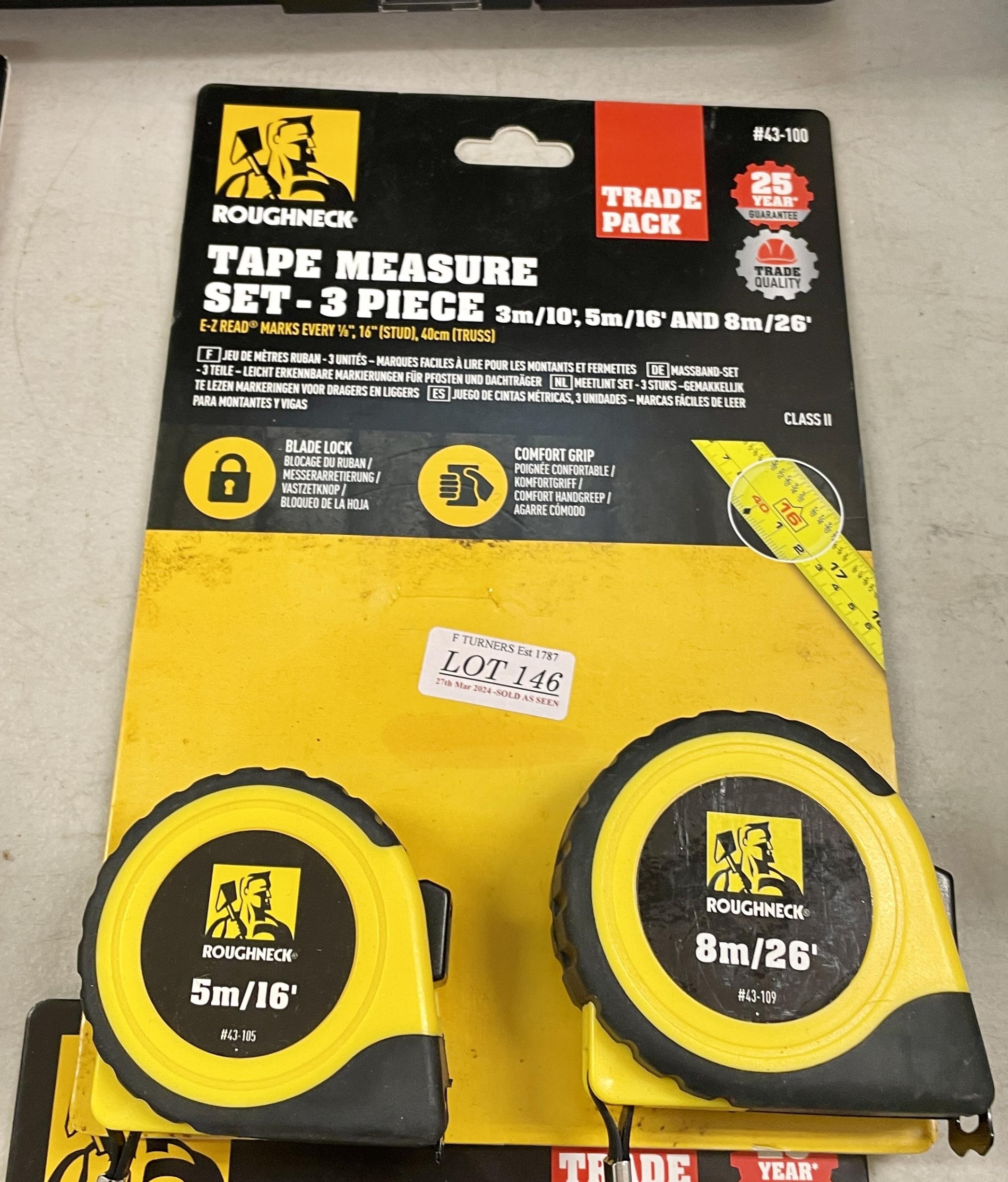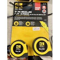 SET OF X2 ROUGH NECK TAPE MEASURES, 8M AND 5M