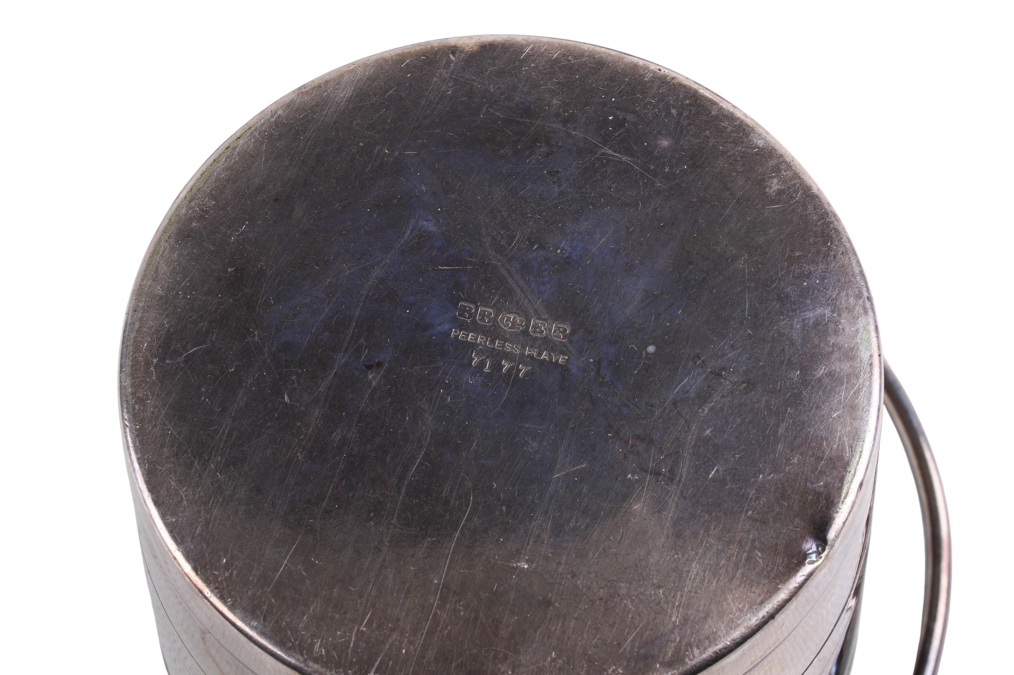 A silverplated three-piece tea set and an ice bucket. Consisting of a tea pot, sugar bowl and milk jug, Max. H13cm