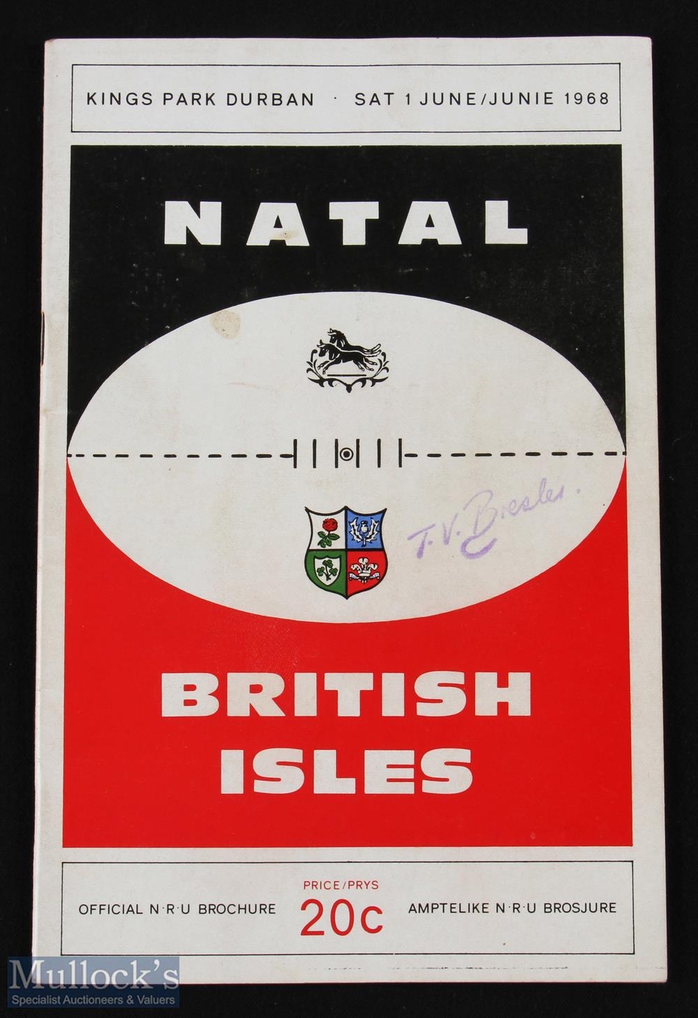 1968 Natal v British & I Lions Rugby Programme: 1st June at Durban issue, signed by 'Bok Andries Geyser. Owner's signature stamp to cover, o/wise VG