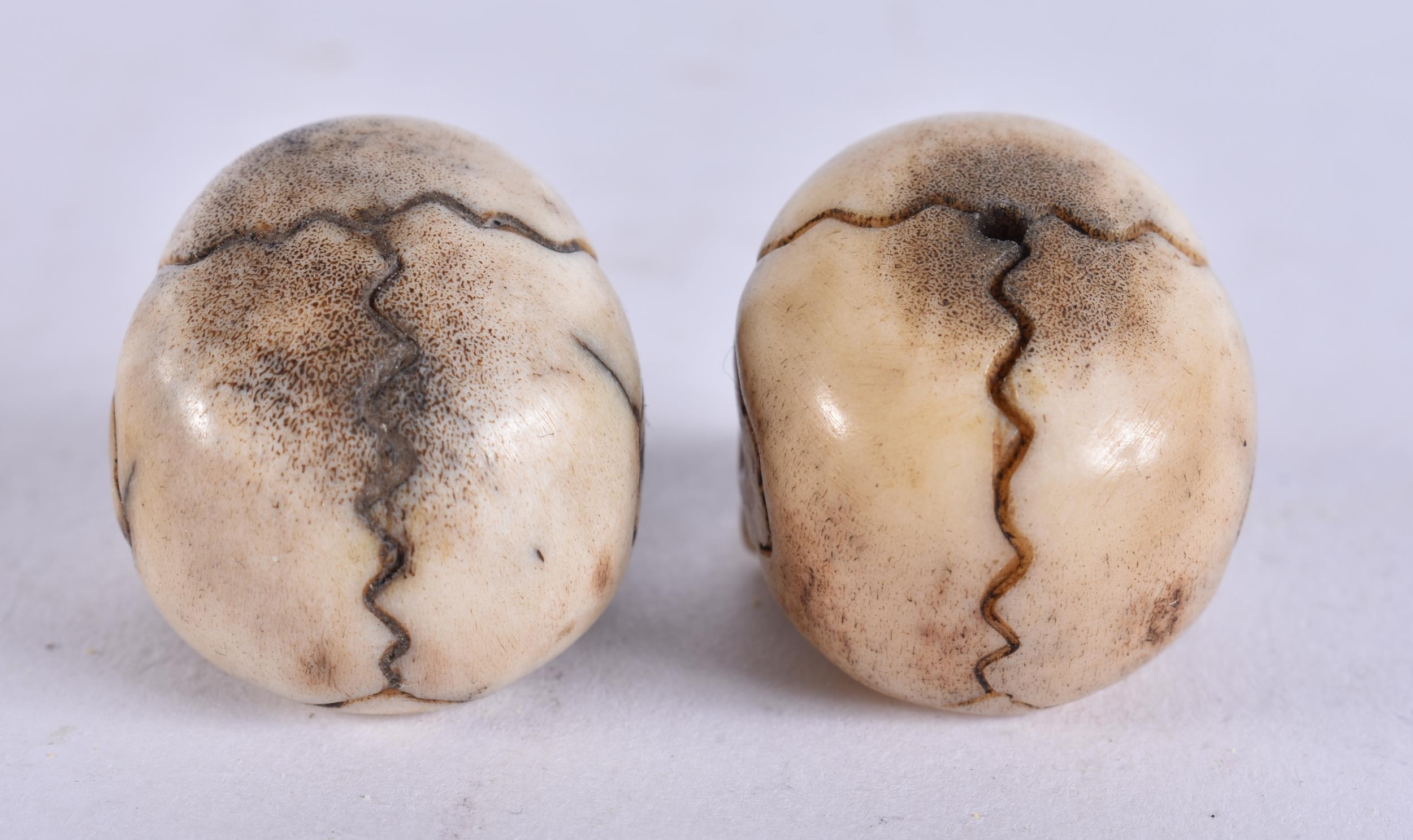 TWO MEMENTO MORI CARVED ANTLER HORN SKULLS. 28 grams. 2.75 c...