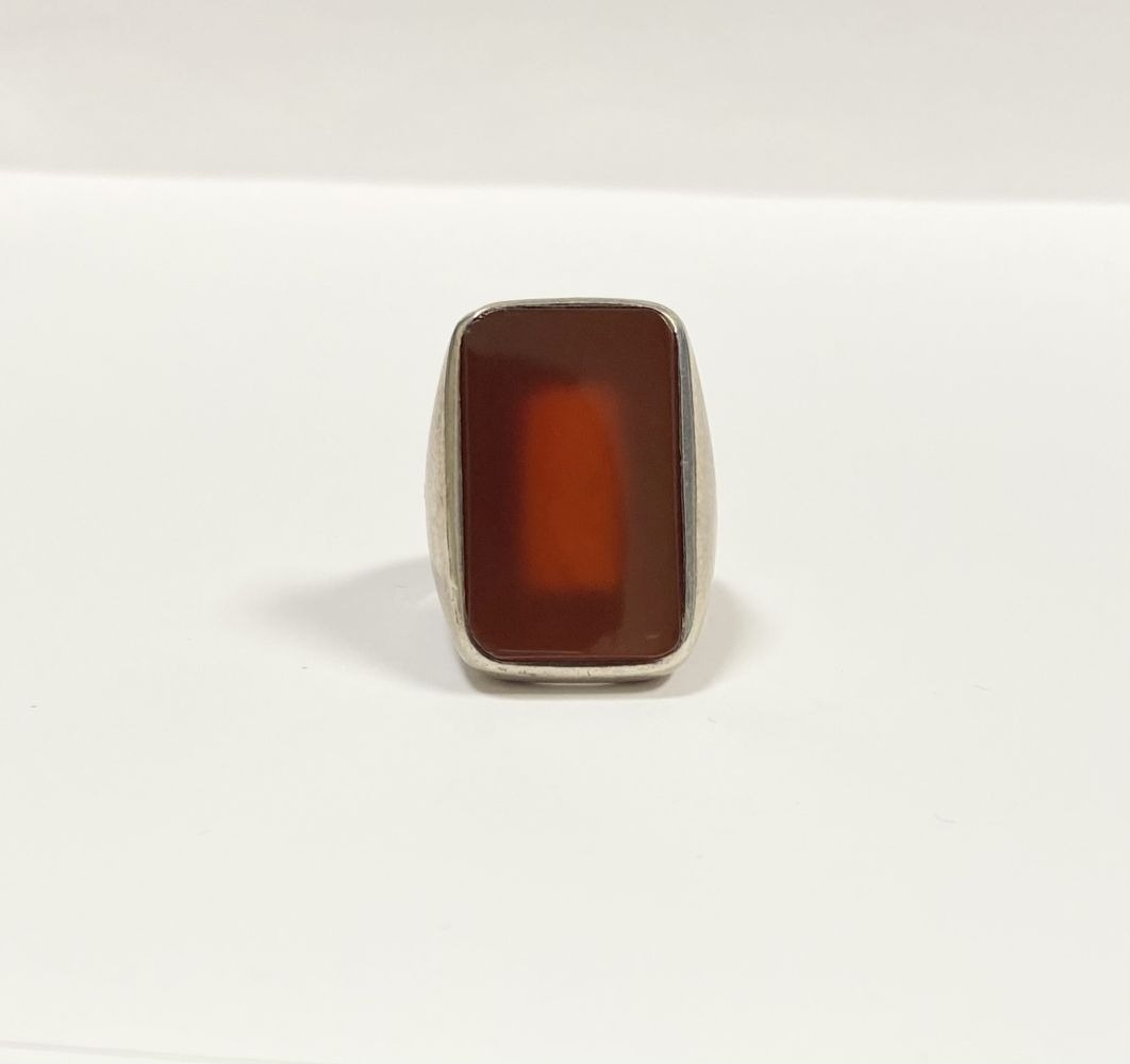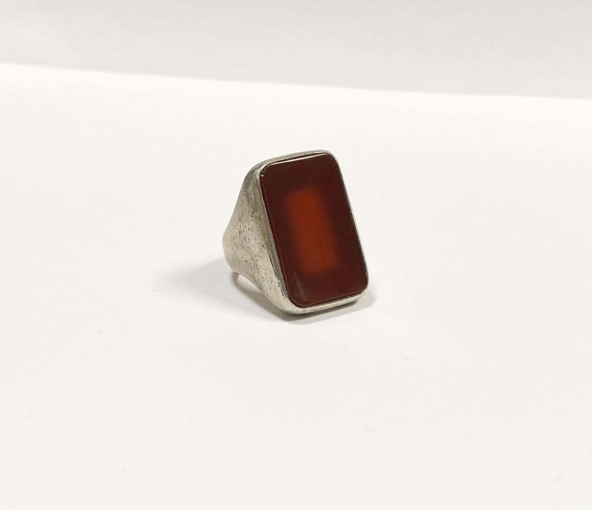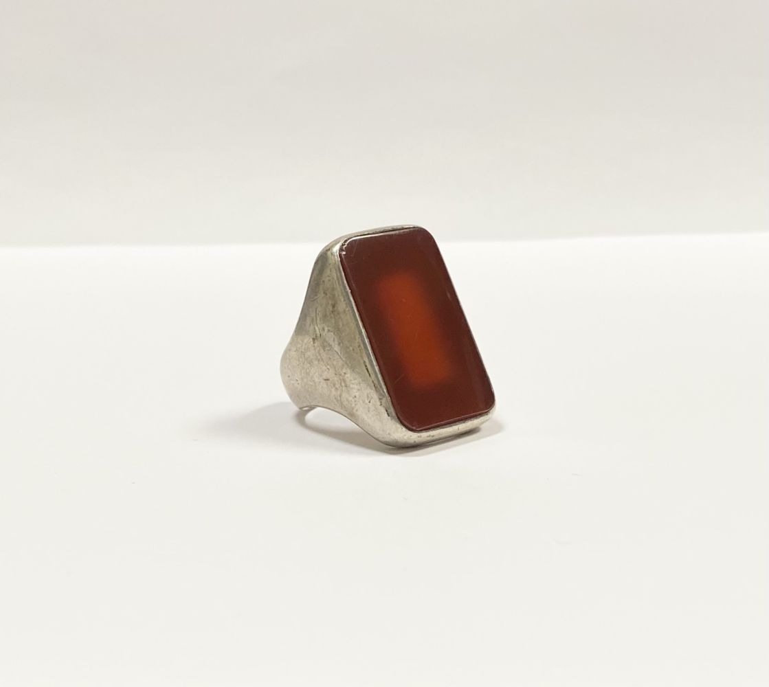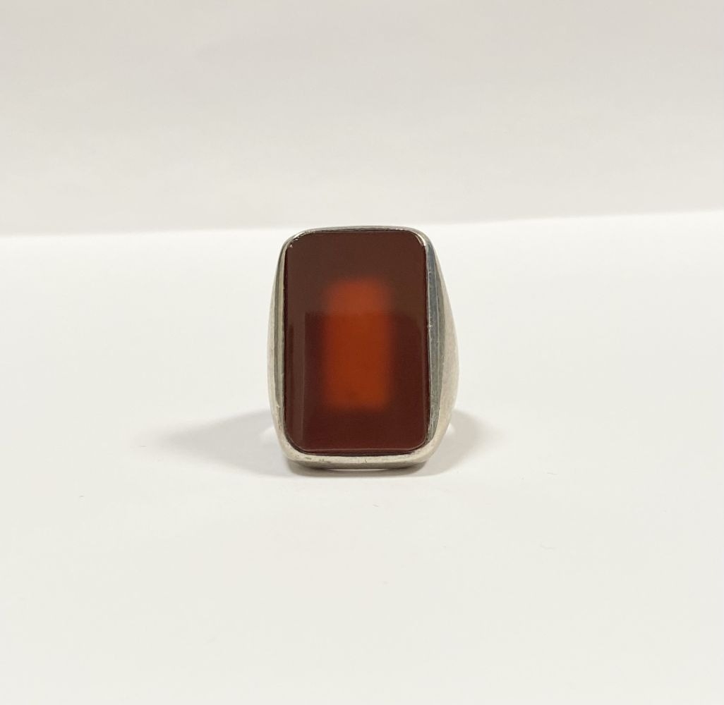 A JOACHIM S’PALIU SPAIN STERLING SILVER CARNELIAN RING, with large rectangular cut Carnelian with rounded corners, set in sterling silver with tapered shoulders to adjustable band. Hallmarked to interior band 925, S’Paliu Spain.