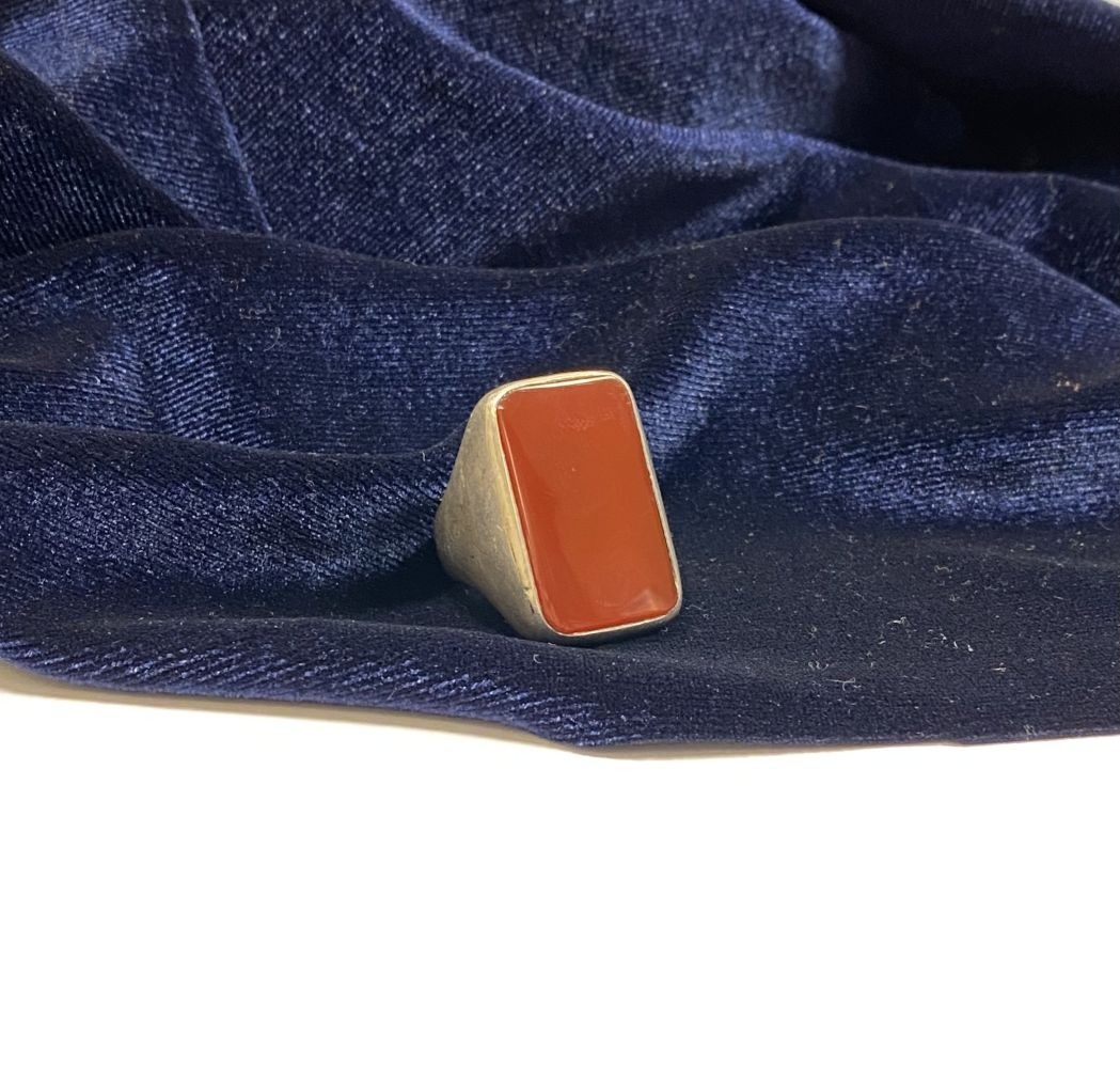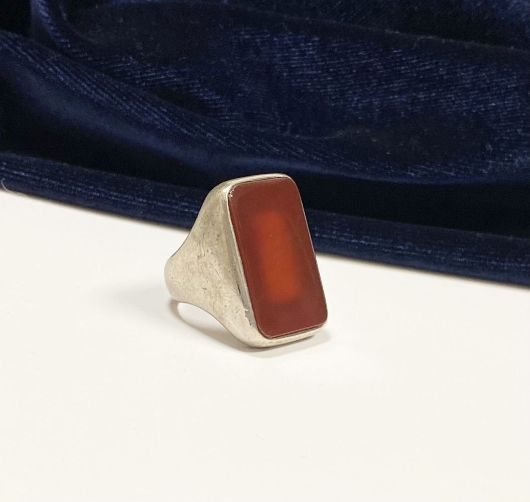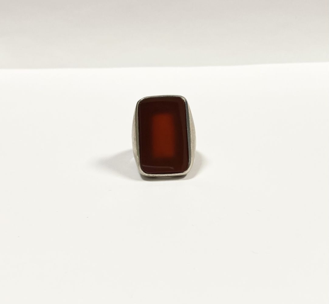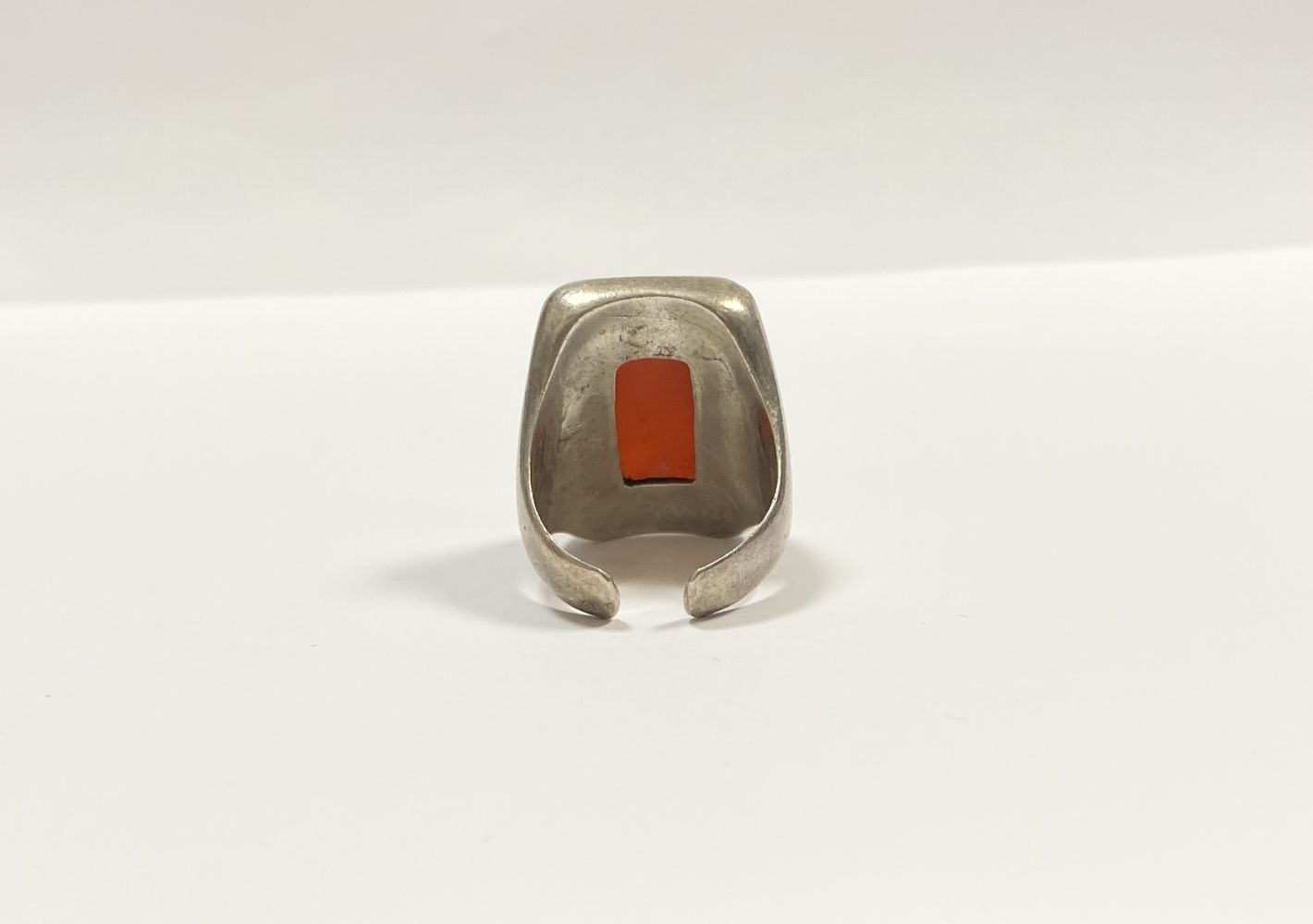 A JOACHIM S’PALIU SPAIN STERLING SILVER CARNELIAN RING, with large rectangular cut Carnelian with rounded corners, set in sterling silver with tapered shoulders to adjustable band. Hallmarked to interior band 925, S’Paliu Spain.