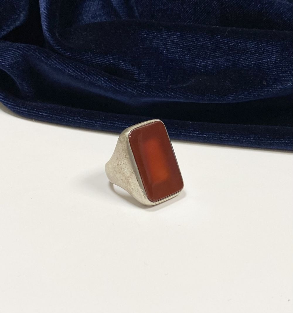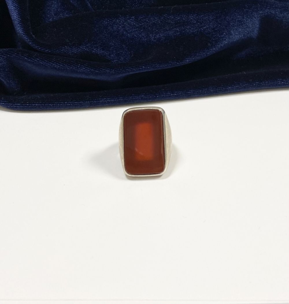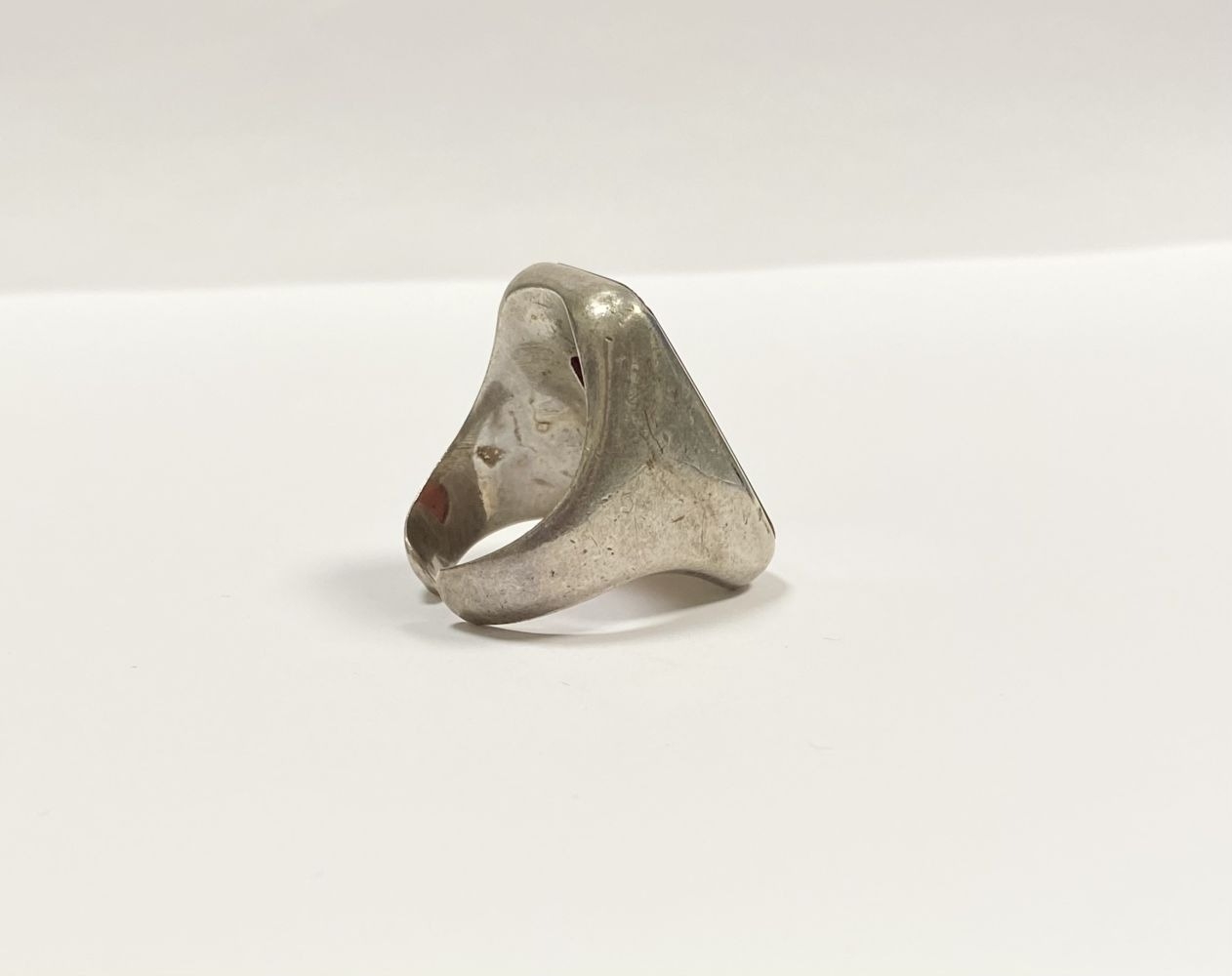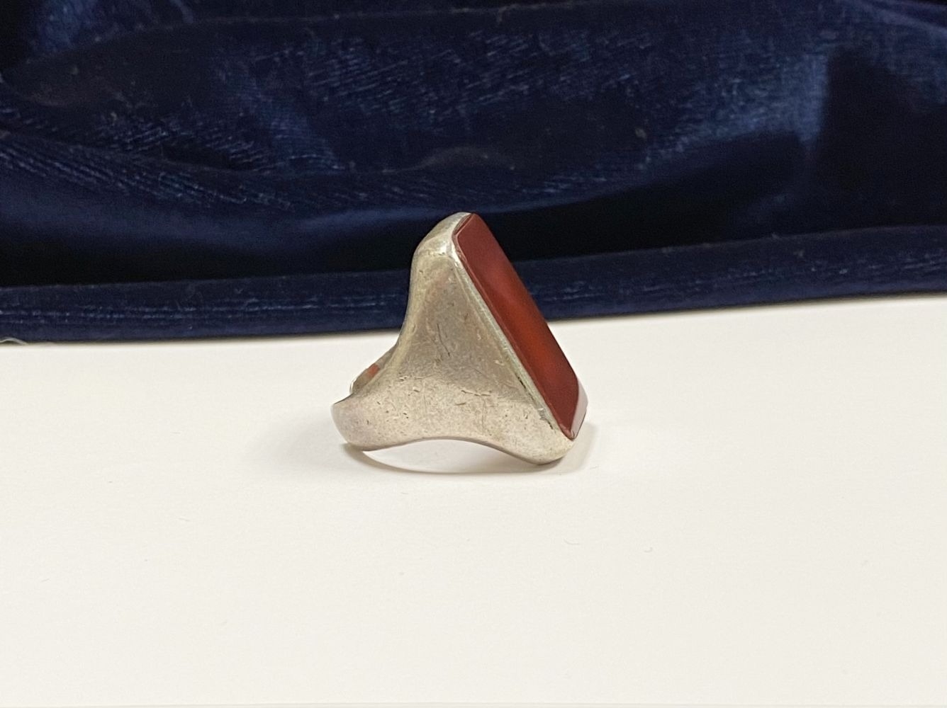 A JOACHIM S’PALIU SPAIN STERLING SILVER CARNELIAN RING, with large rectangular cut Carnelian with rounded corners, set in sterling silver with tapered shoulders to adjustable band. Hallmarked to interior band 925, S’Paliu Spain.