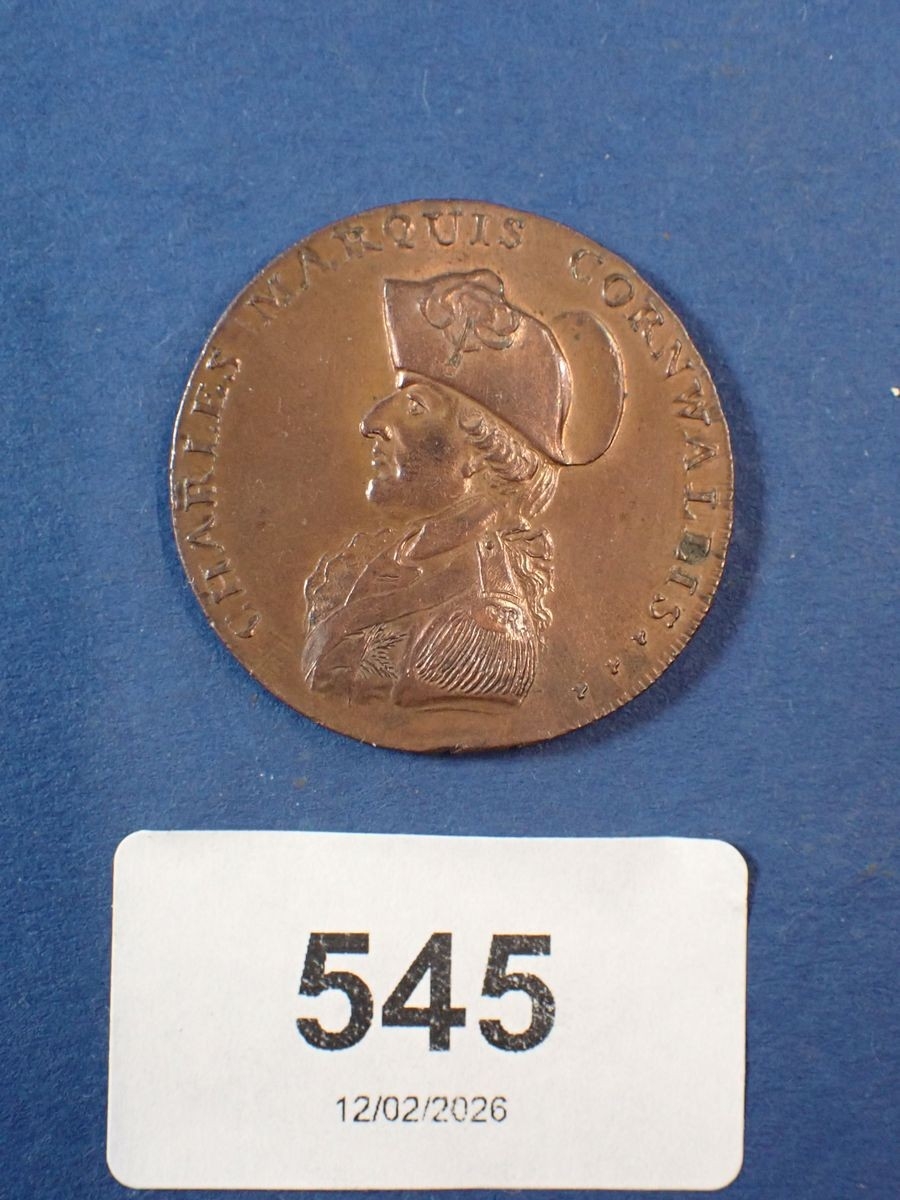 A 1794 Charles Marquis Cornwallis penny token with lustre Cond: EF