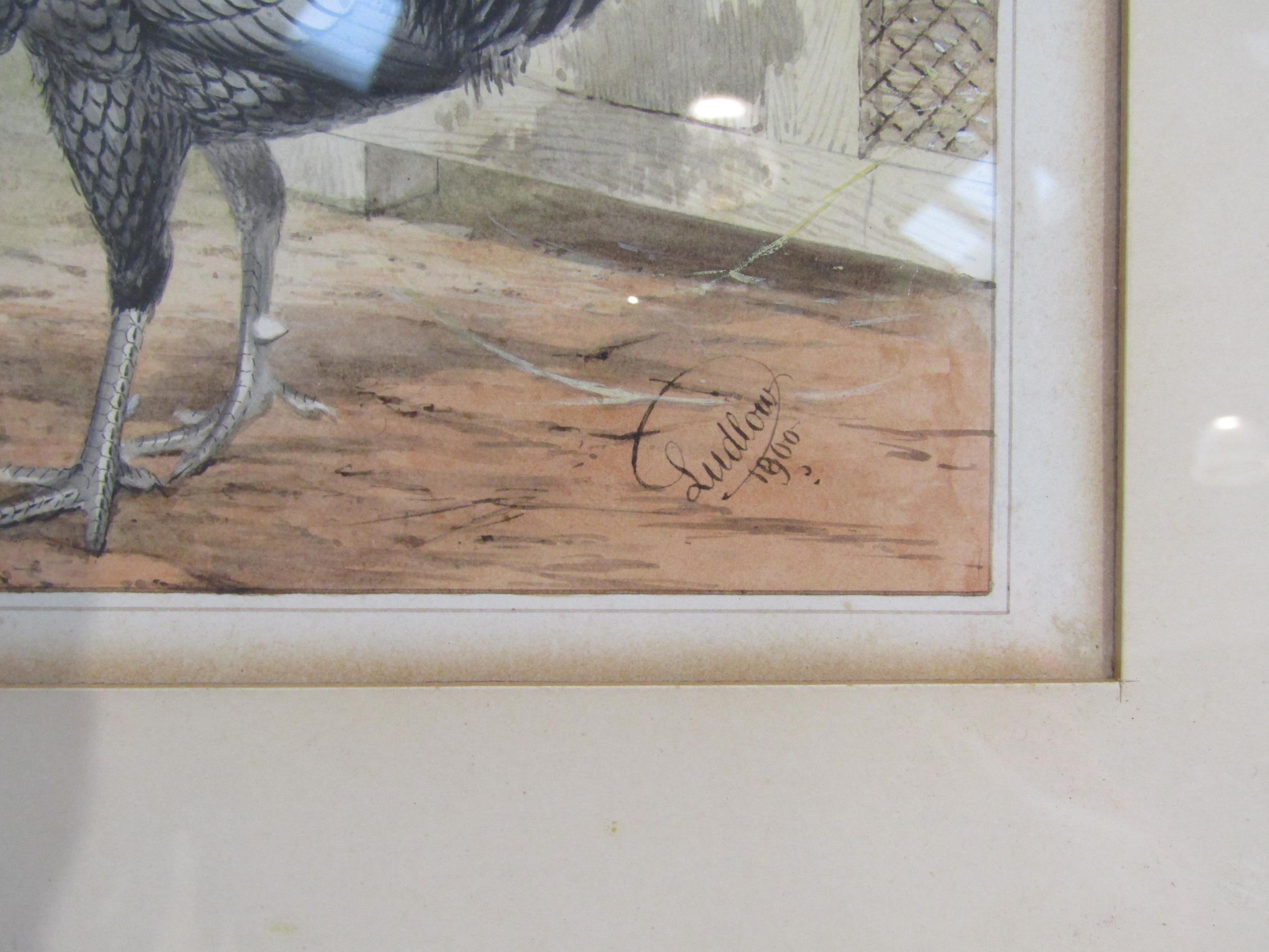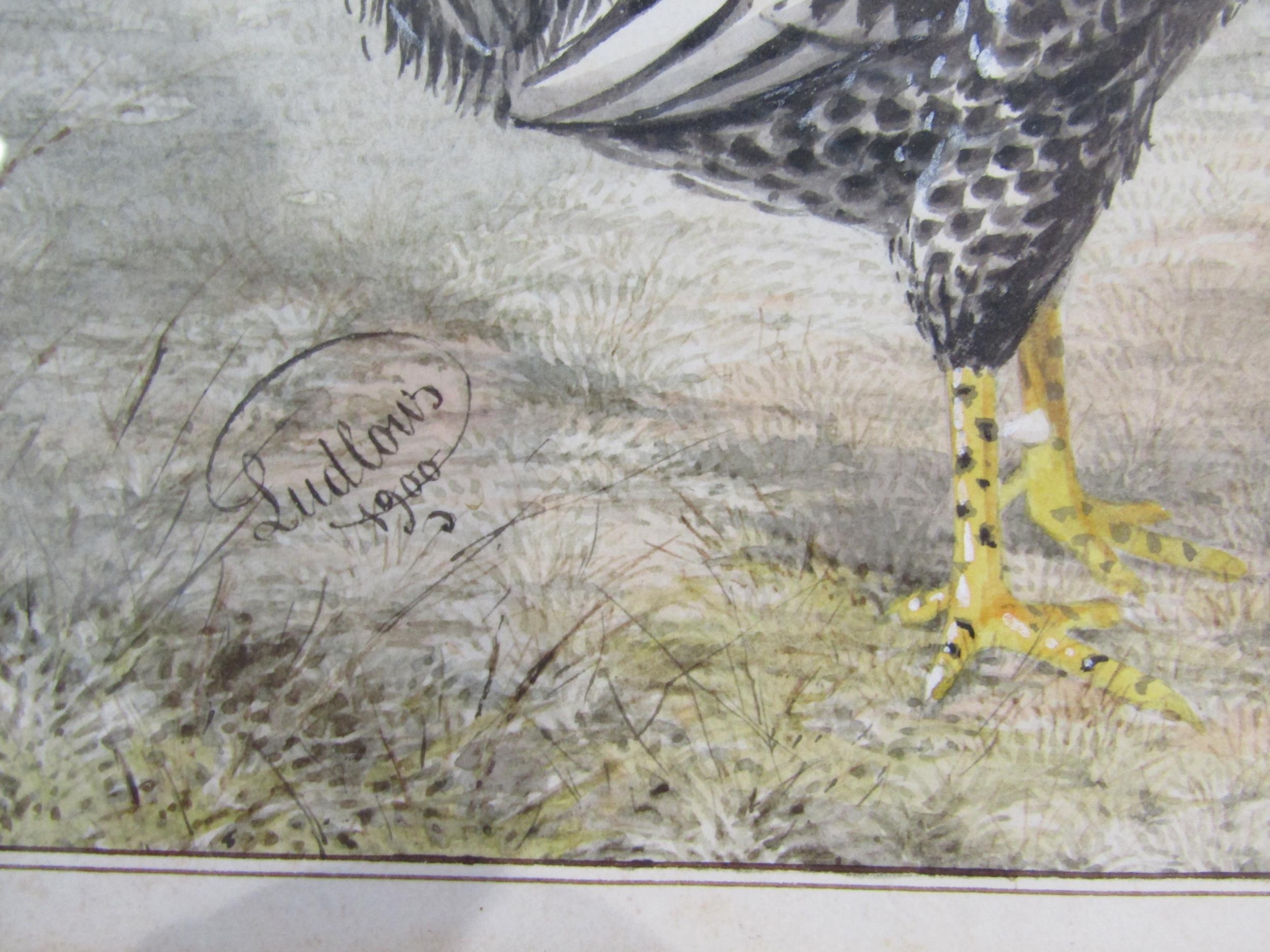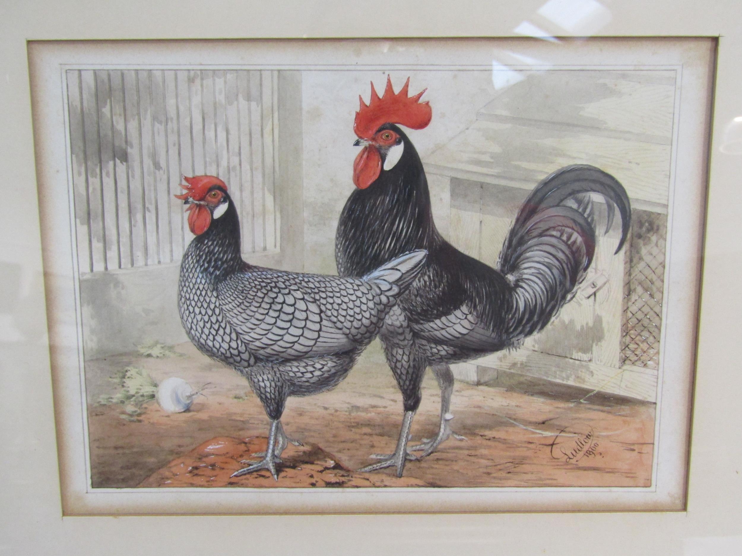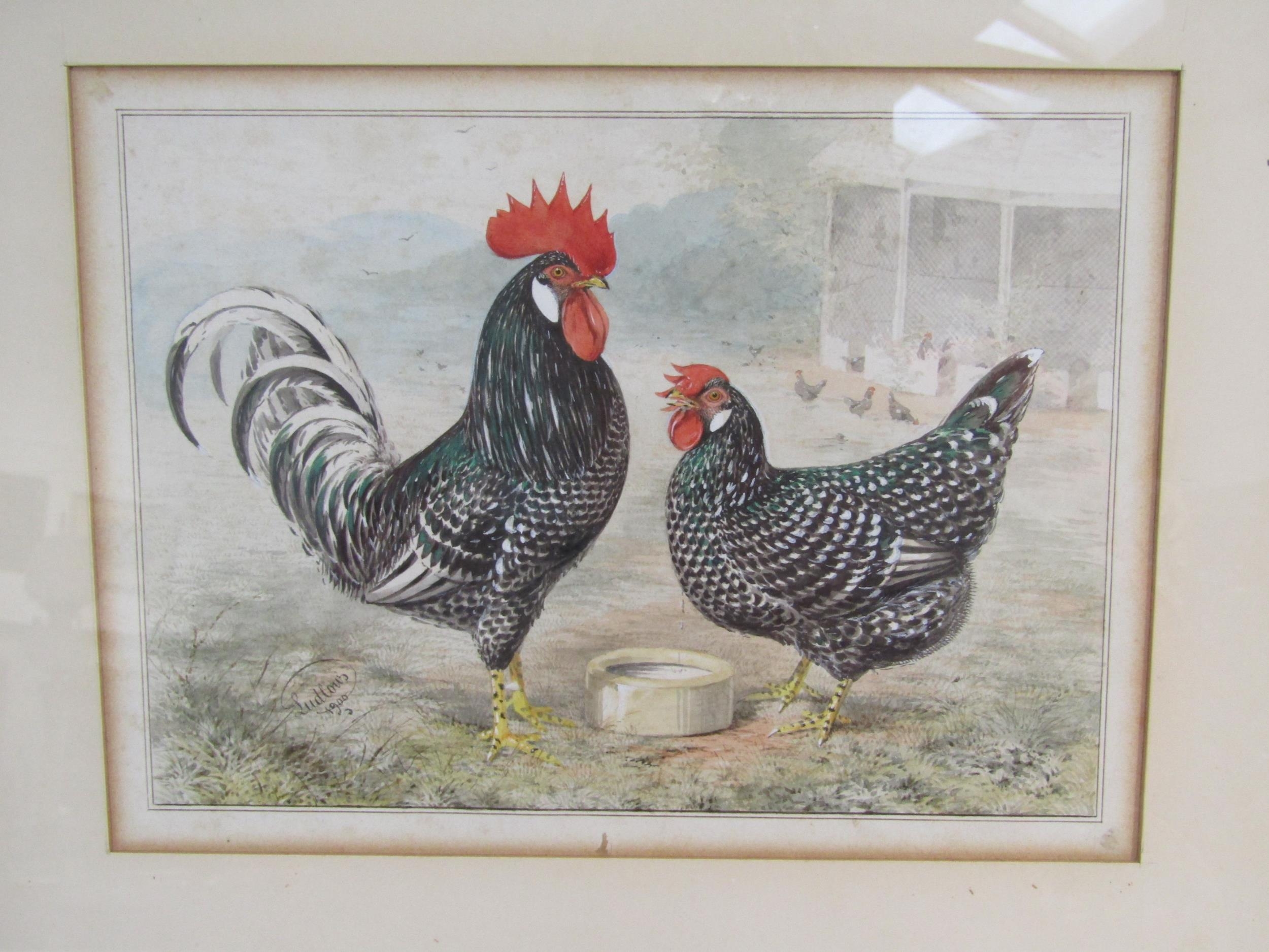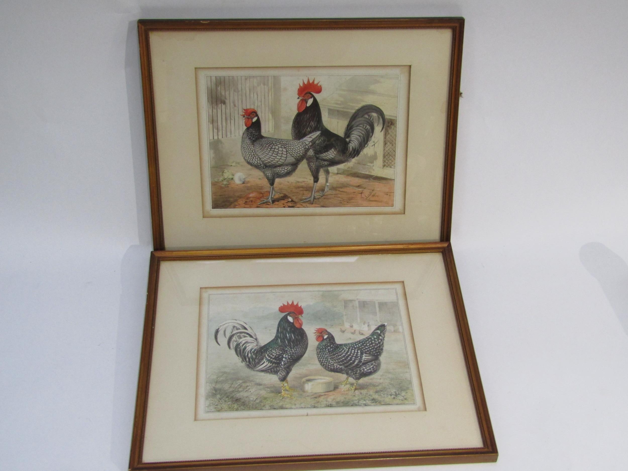 JOSEPH W. LUDLOW (1840-1915): A pair of Victorian watercolours of cockerels and hens, framed and glazed, 18.5cm x 25cm