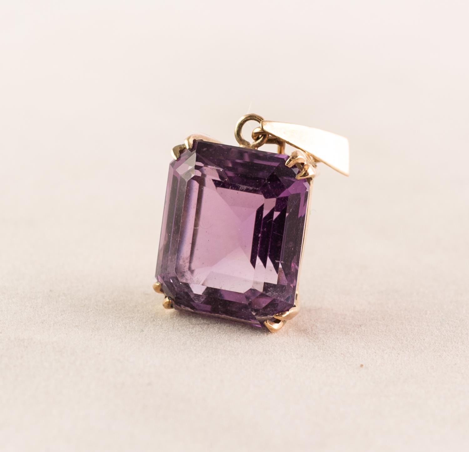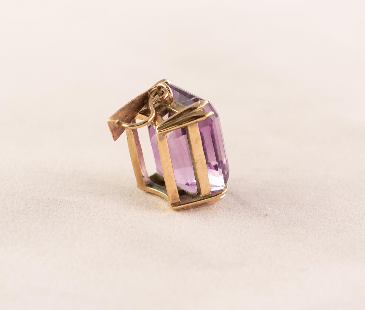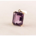 9ct GOLD NECKLACE PENDANT, claw set with an emerald cut amethyst, 5.8 gms gross
