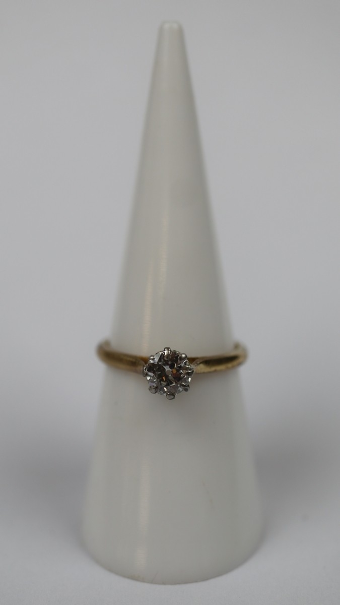 18ct gold and .5 carat diamond set ring - Size M - Approx 2.4g