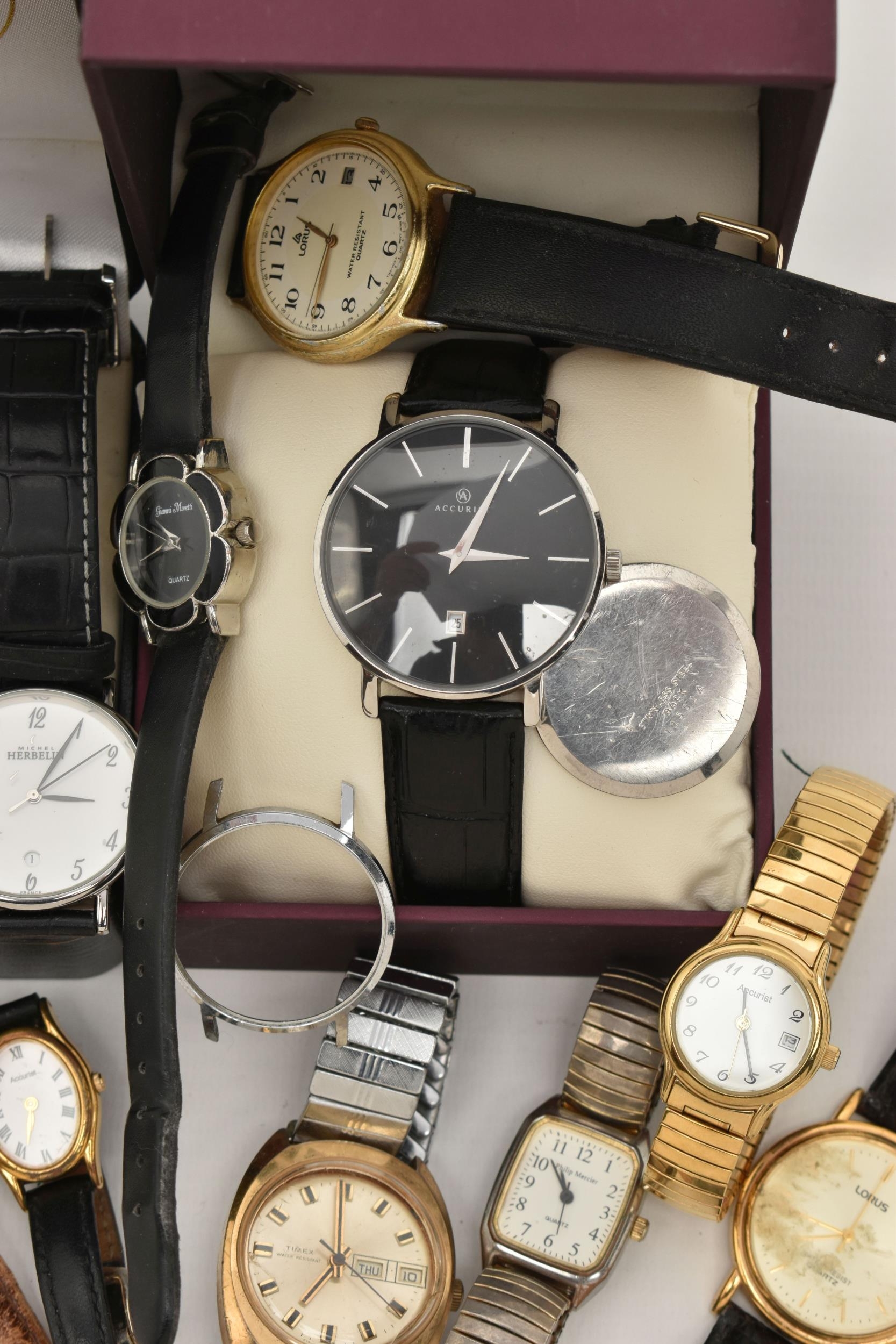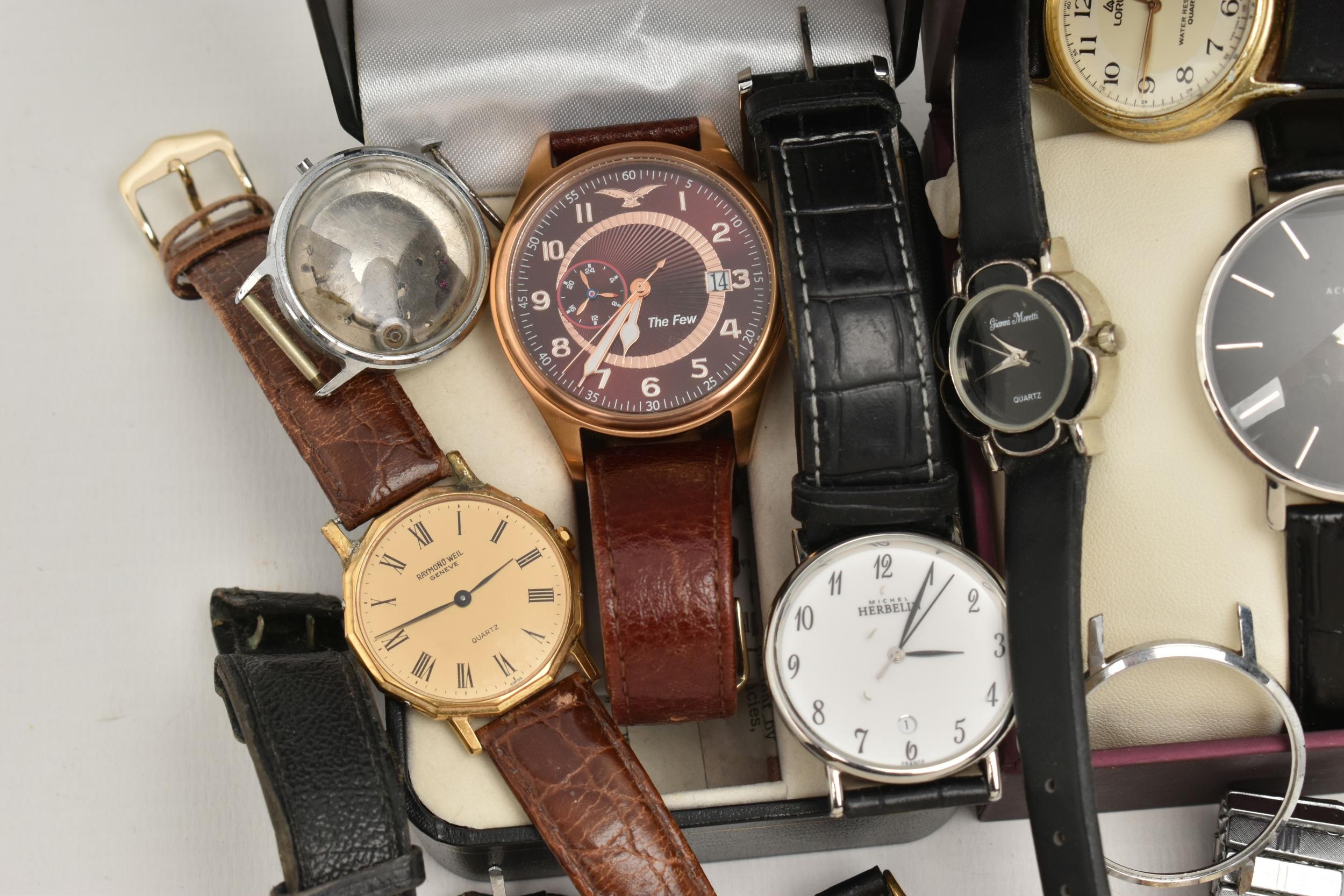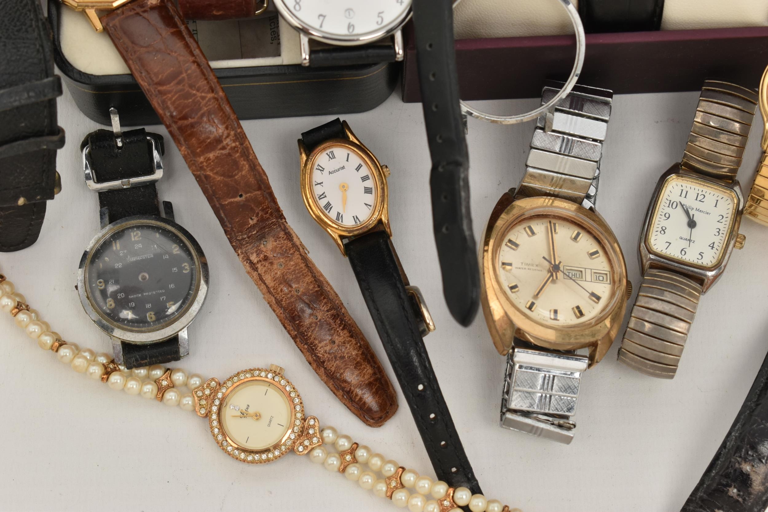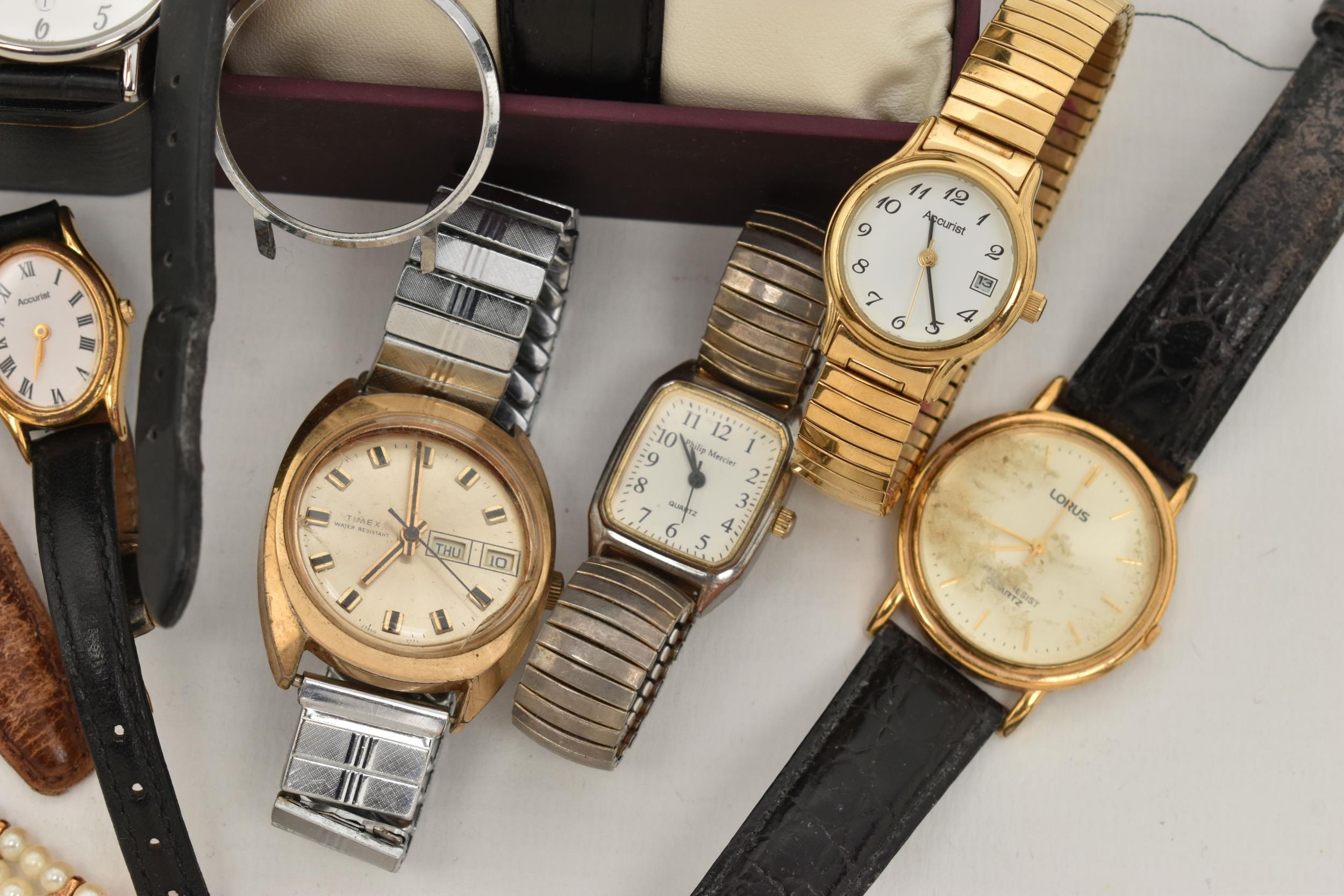A SELECTION OF WATCHES, to include a boxed gentleman's Accurist wristwatch, two lady's Accurist watches, a Raymond Weil watch with tan crocodile grain strap, a boxed Battle of Britain 70th anniversary watch etc (condition report: watches have not been tested, we cannot guarantee the working order of any watch)