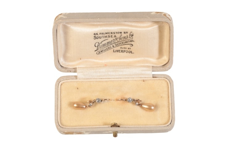 A PAIR OF VINTAGE FAUX PEARL AND DIAMOND DROP EARRING