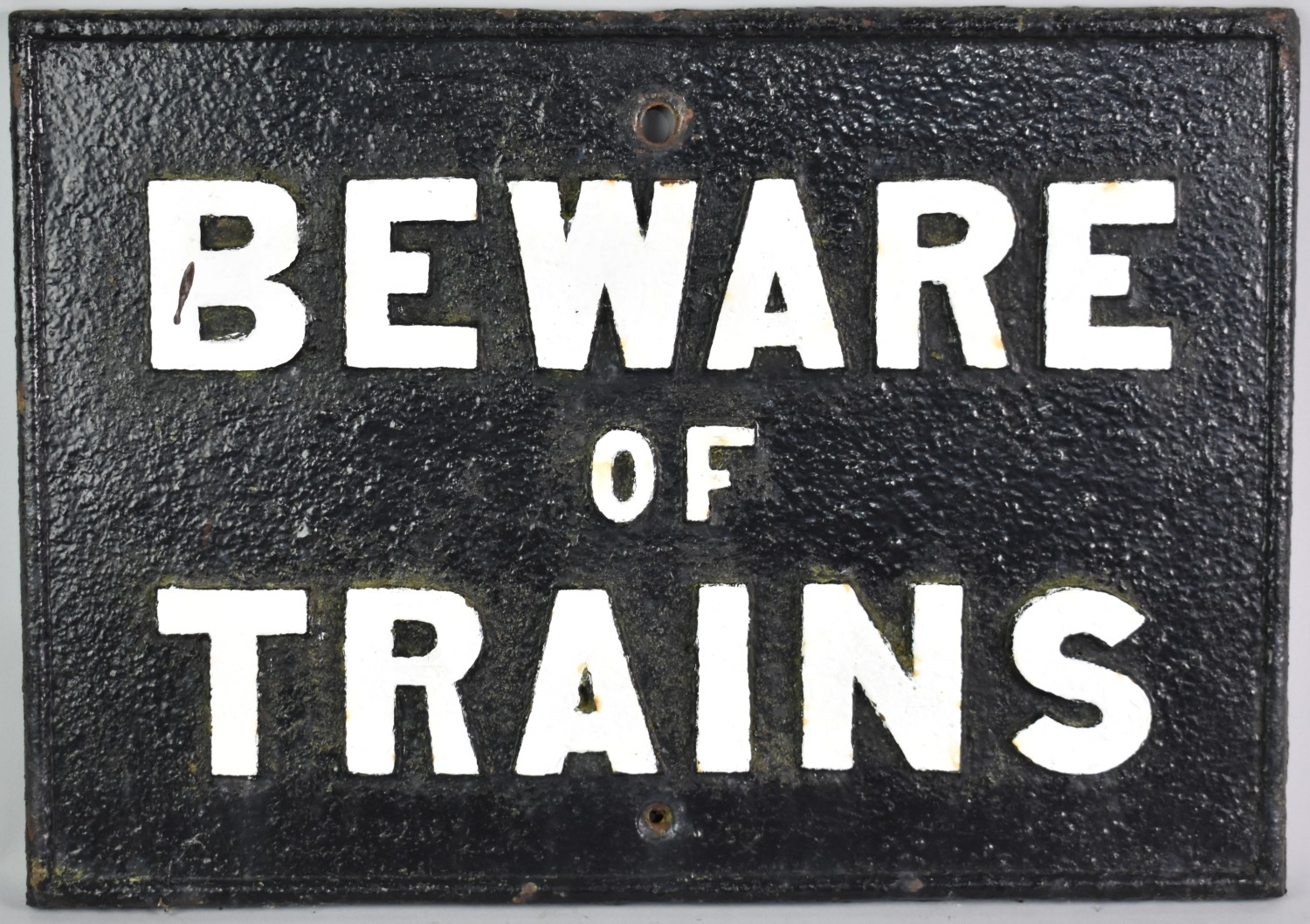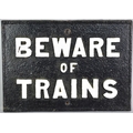 A Late Victorian/Edwardian Cast Iron Railway Sign, 'Beware of Trains', 50x37cms