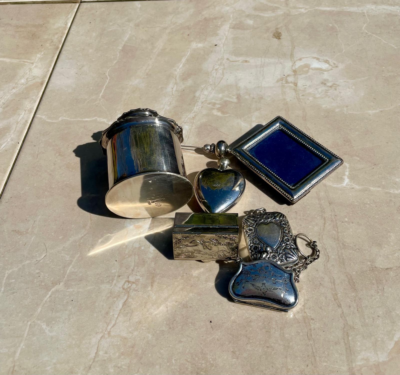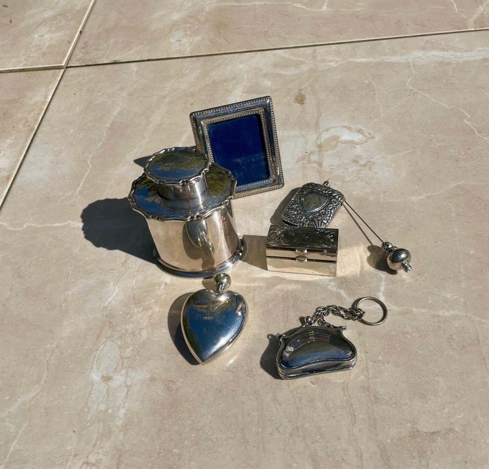 Selection of silver plate and white metal vesta case, caddy, pill box etc