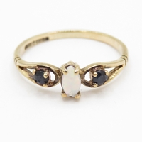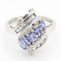 9ct gold diamond, tanzanite and gemstone dress ring (2.7g) Size P