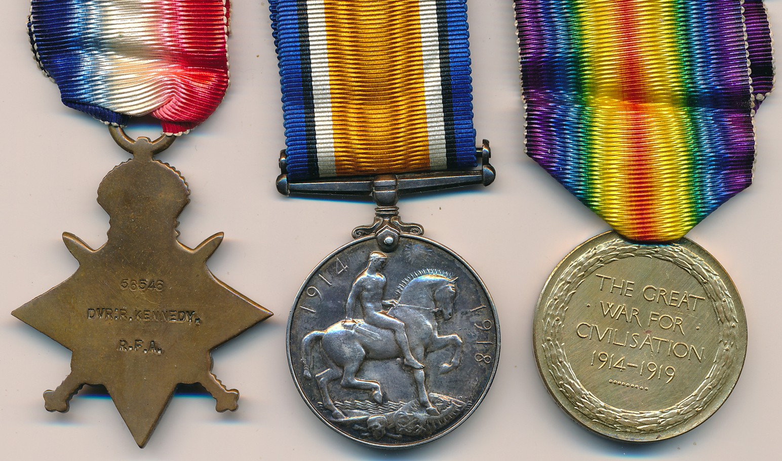 1914-15 Star trio to 56546 Gnr R. Kennedy R.F.A. nearly extremely fine.