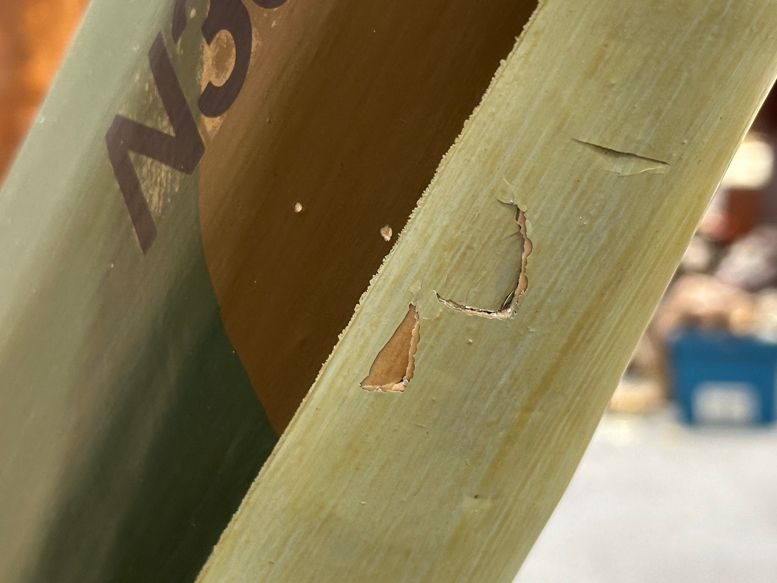 Some small areas of damage to the fuselage.