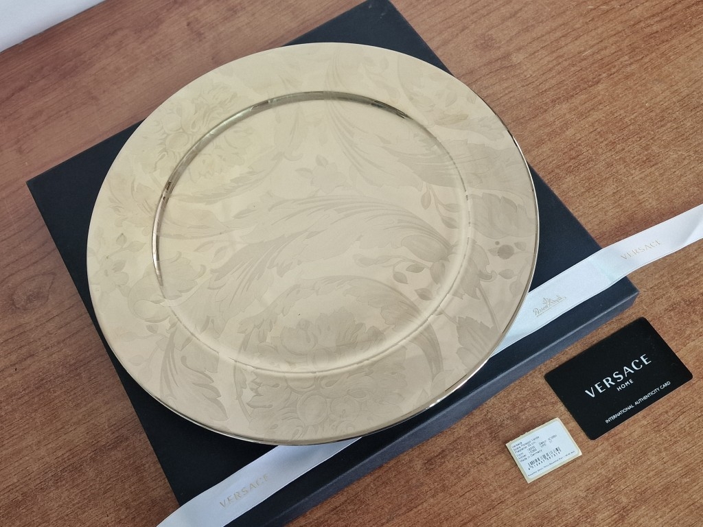 Rosenthal VERSACE 'Vanity La Doree' Round Plate with Gold Floral Pattern, in Original Box, (Approx. Ø: 33cm)