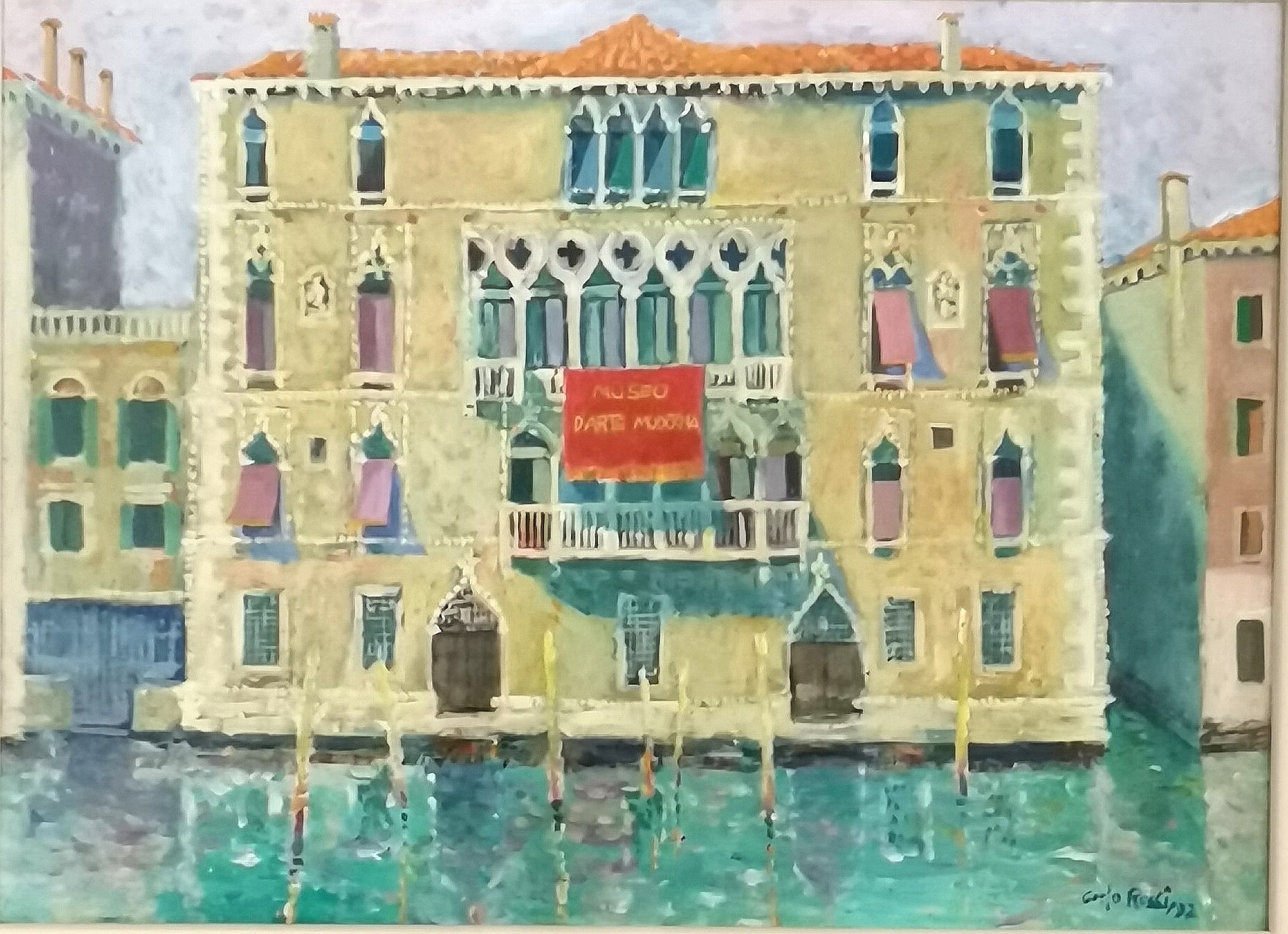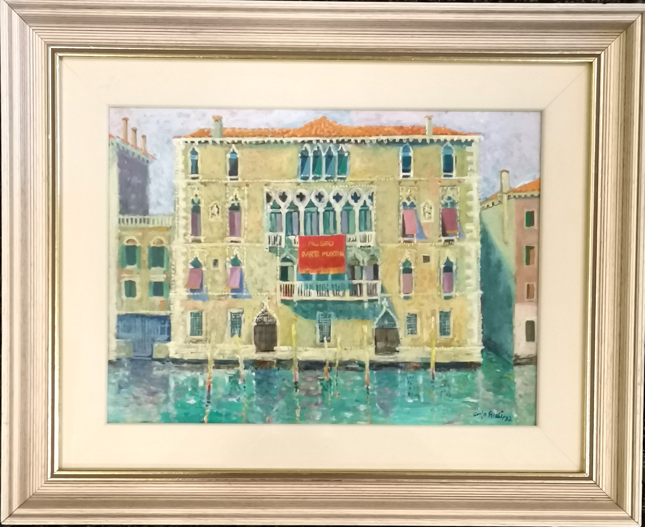 Carlo Rossi (1921-2010) oil painting 'Palazzo Venice' - glazed frame 44cm x 54cm