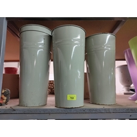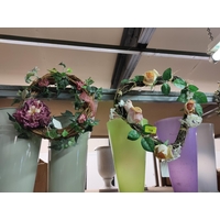Four plastic flower holders with bases different colours