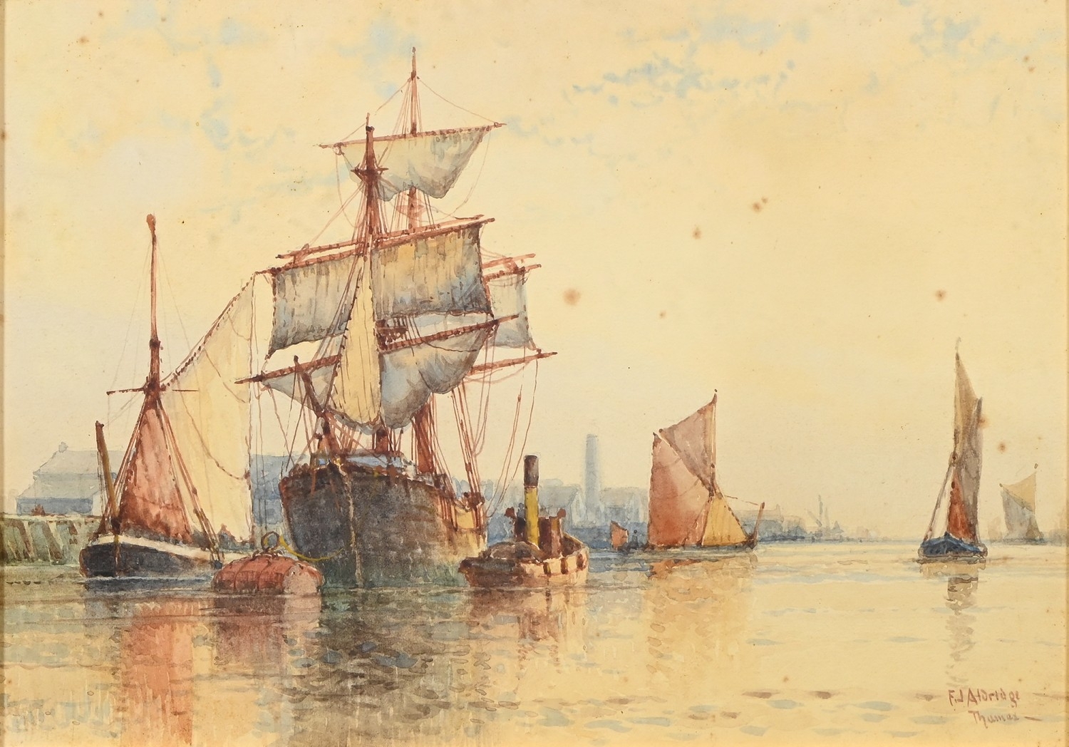 F. J. Aldridge (1850-1933) - Thames, signed and titled, watercolour, 25.5 x 36.5cm