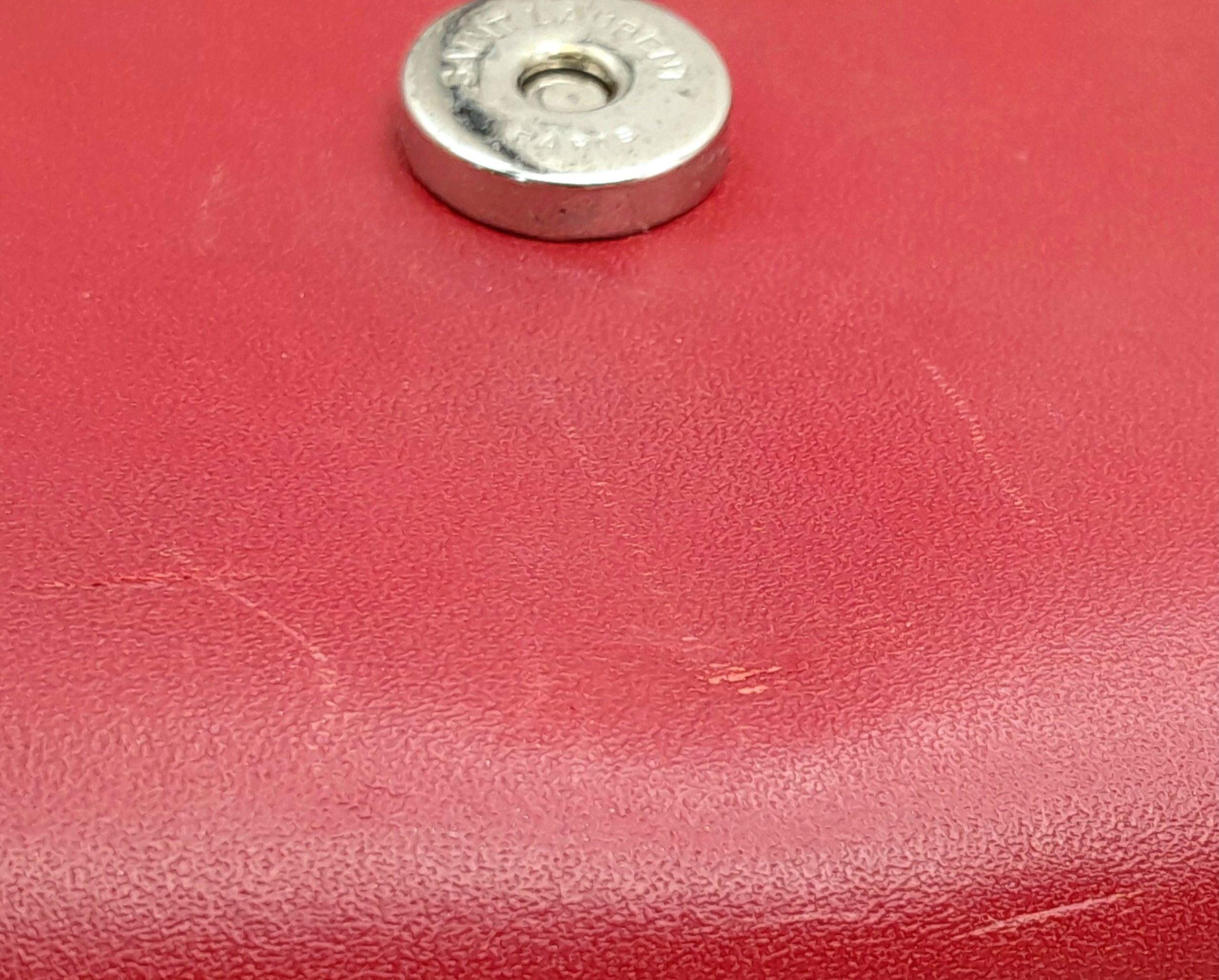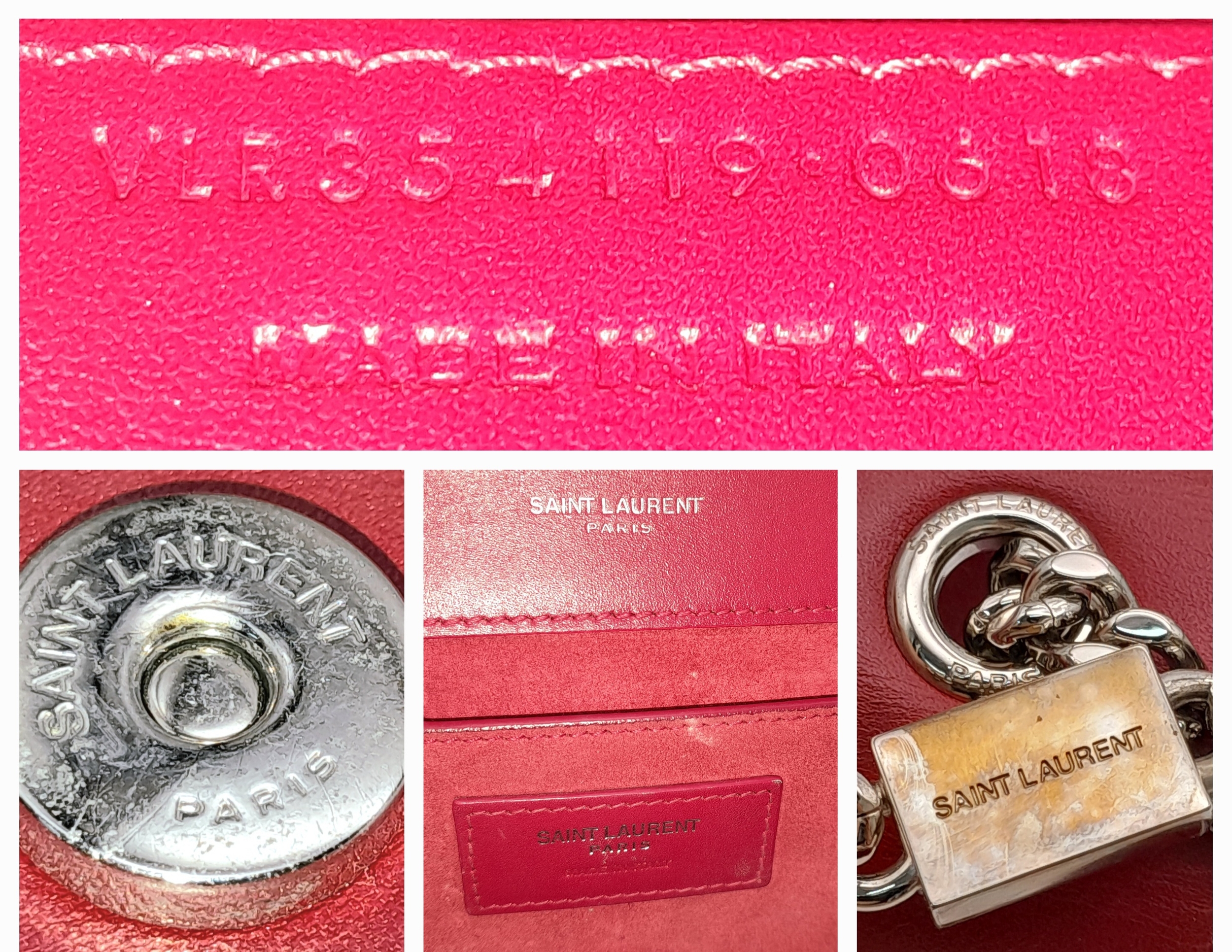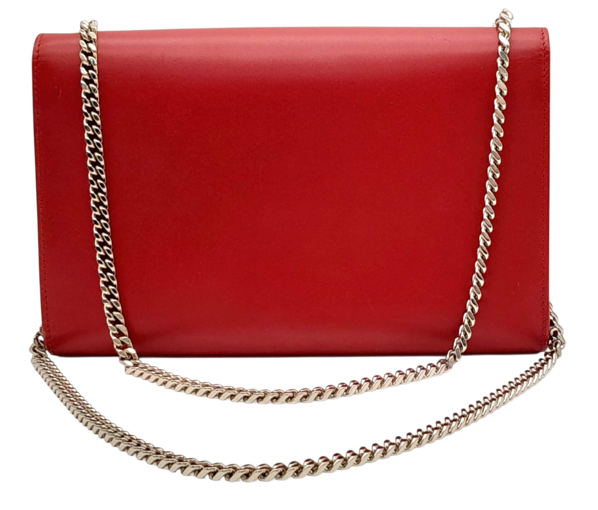A Saint Laurent Ruby Red Classic Kate Tassel Shoulder Bag. Leather exterior with silver-toned hardware, the iconic YSL logo, chain strap and magnetic closure. Red textile interior with an open side pocket. Comes with dust cover. Approximately 24cm length x 15cm height. Some scuffs and scratches to exterior - please see photos for conditions or request a condition report. . REF: STK024866