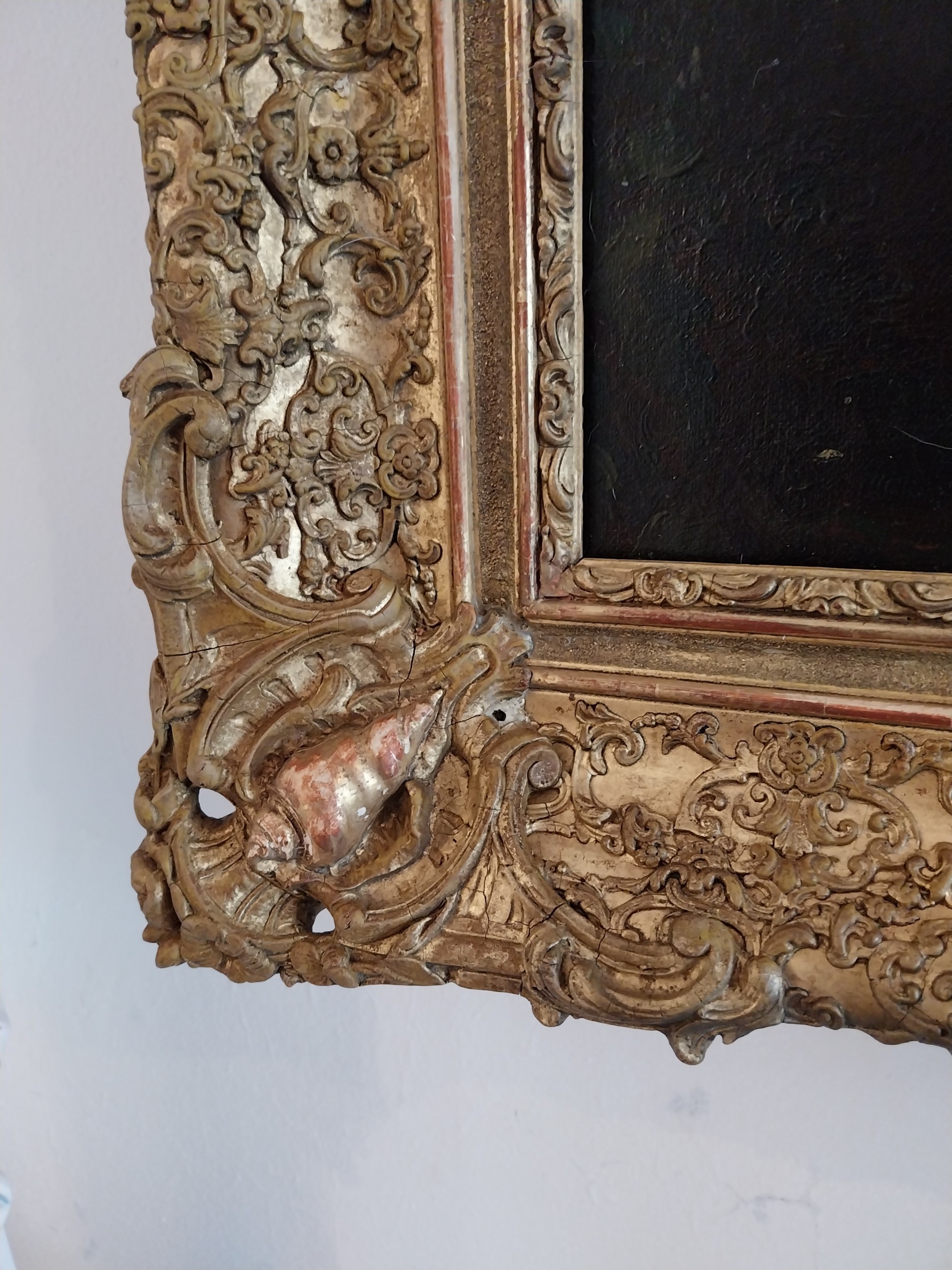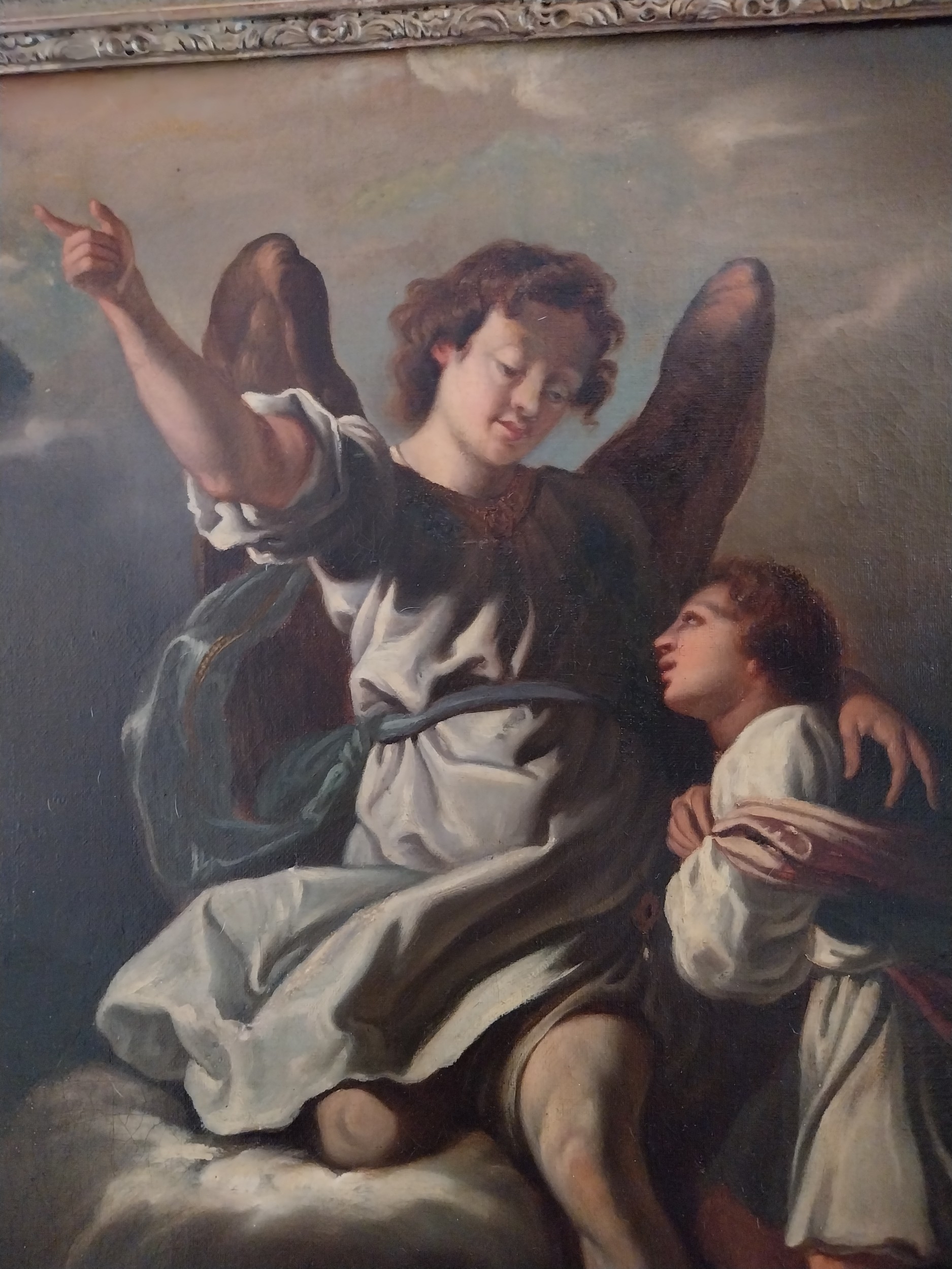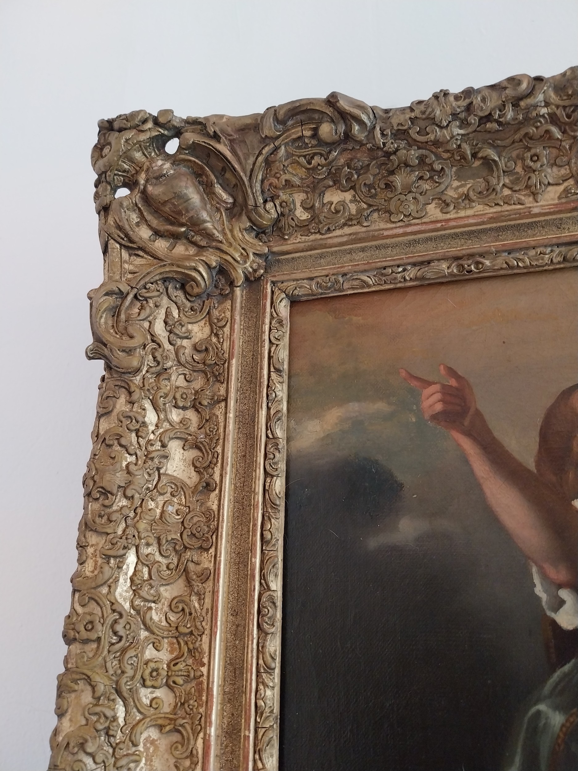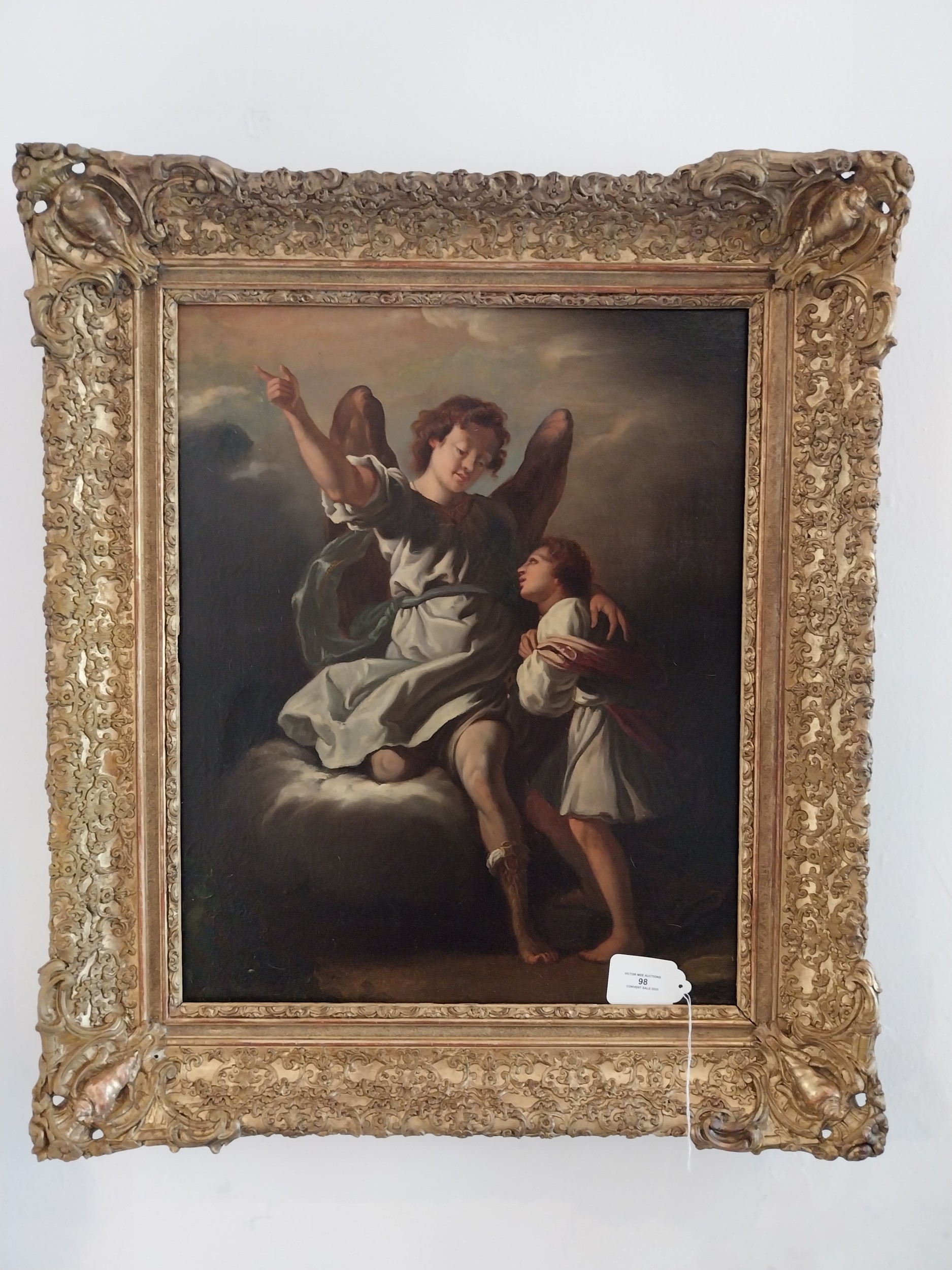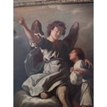 19th.C. Oil on Canvas depicting St Michael, mounted in decorative giltwood frame. { 83cm H X 72cm W }.