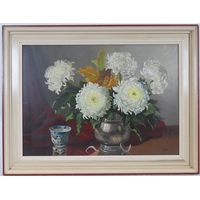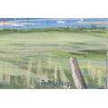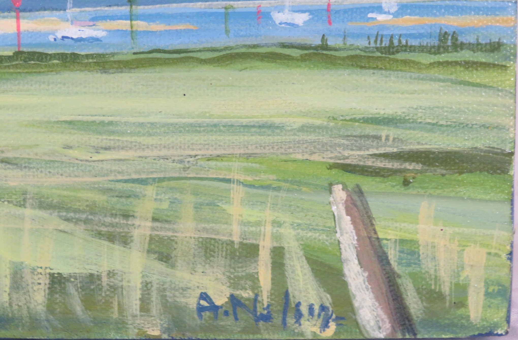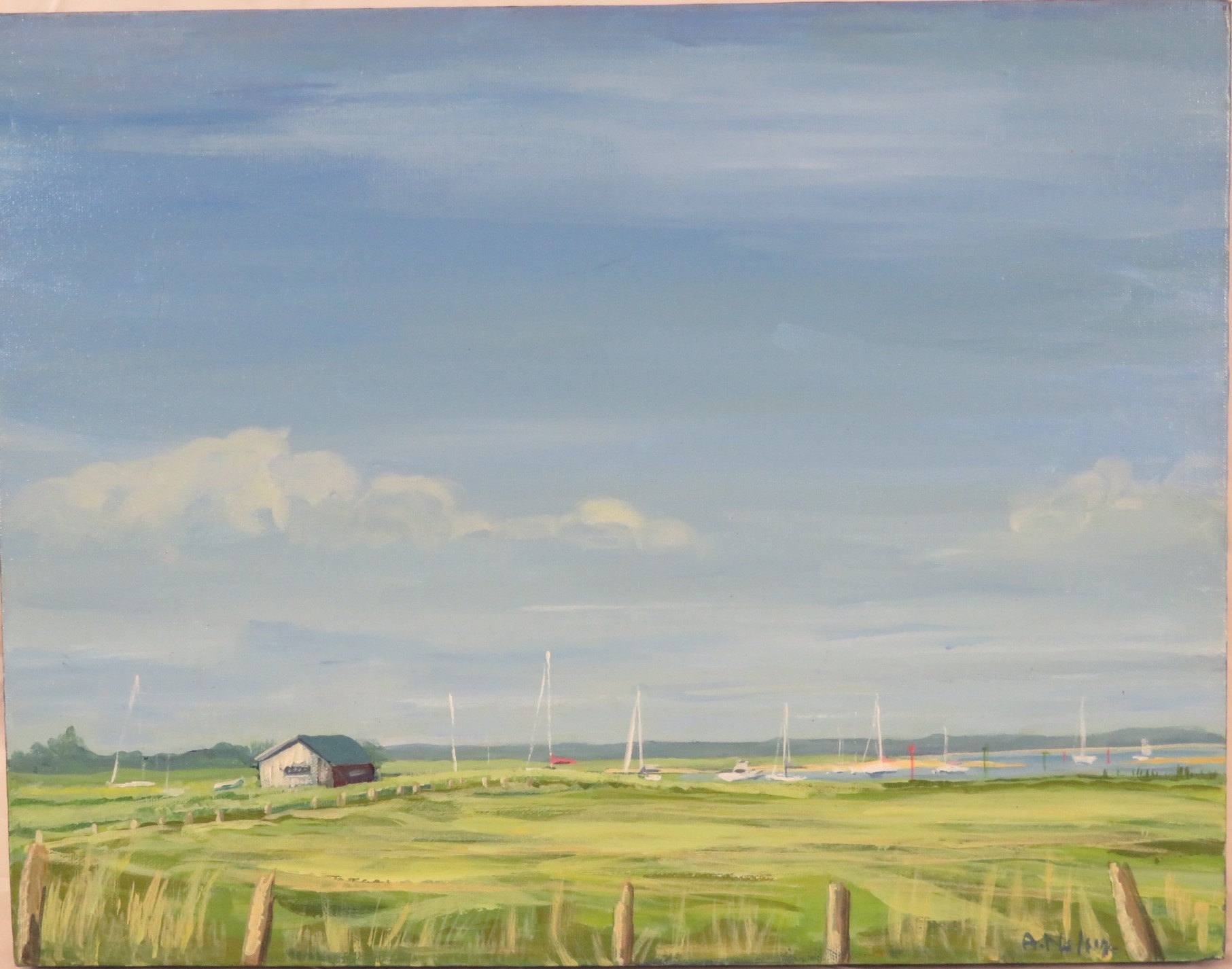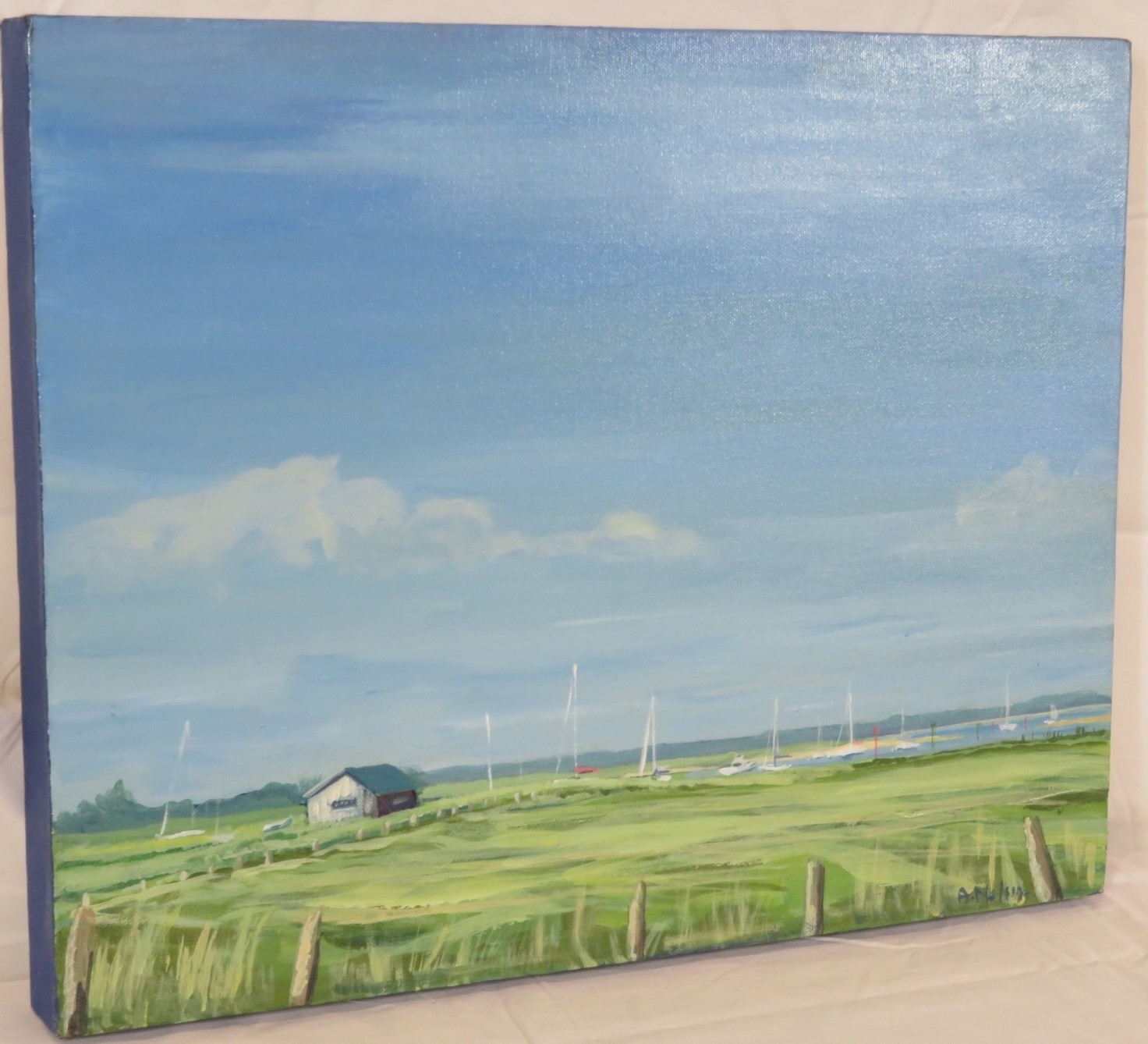 Angela Nelson 'Moored boats, Newtown' oil on canvas, 36x46cm, signed