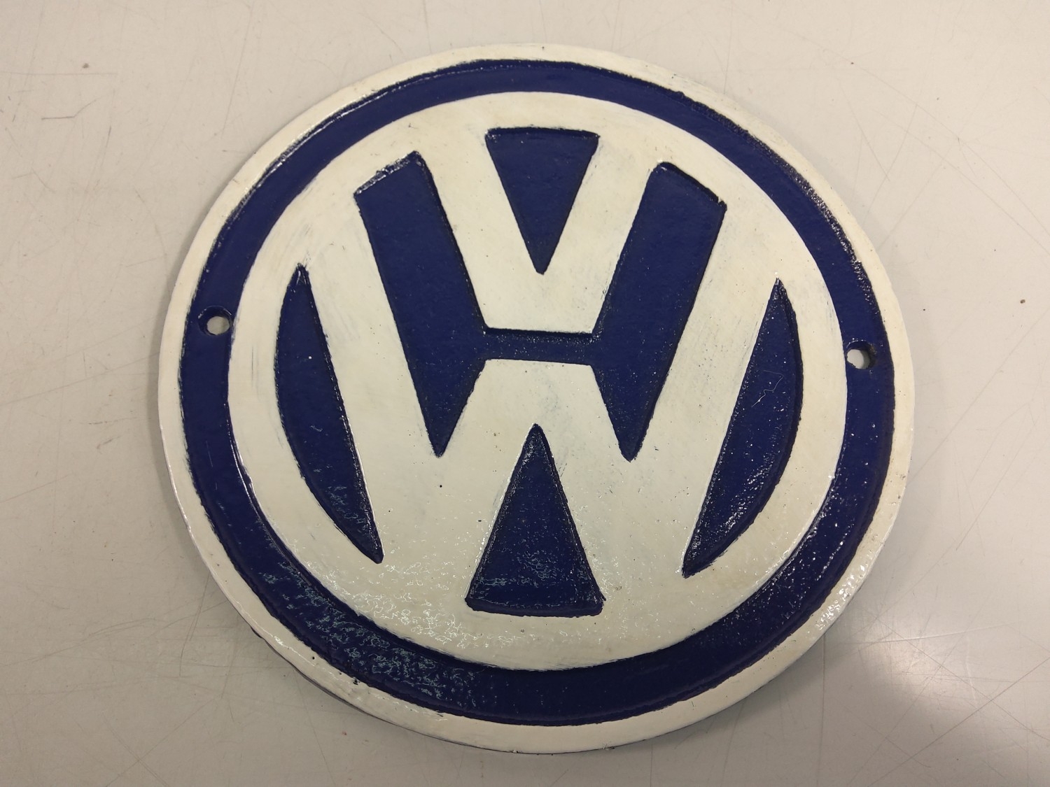 Cast metal VW advertising sign, 23cms in diameter