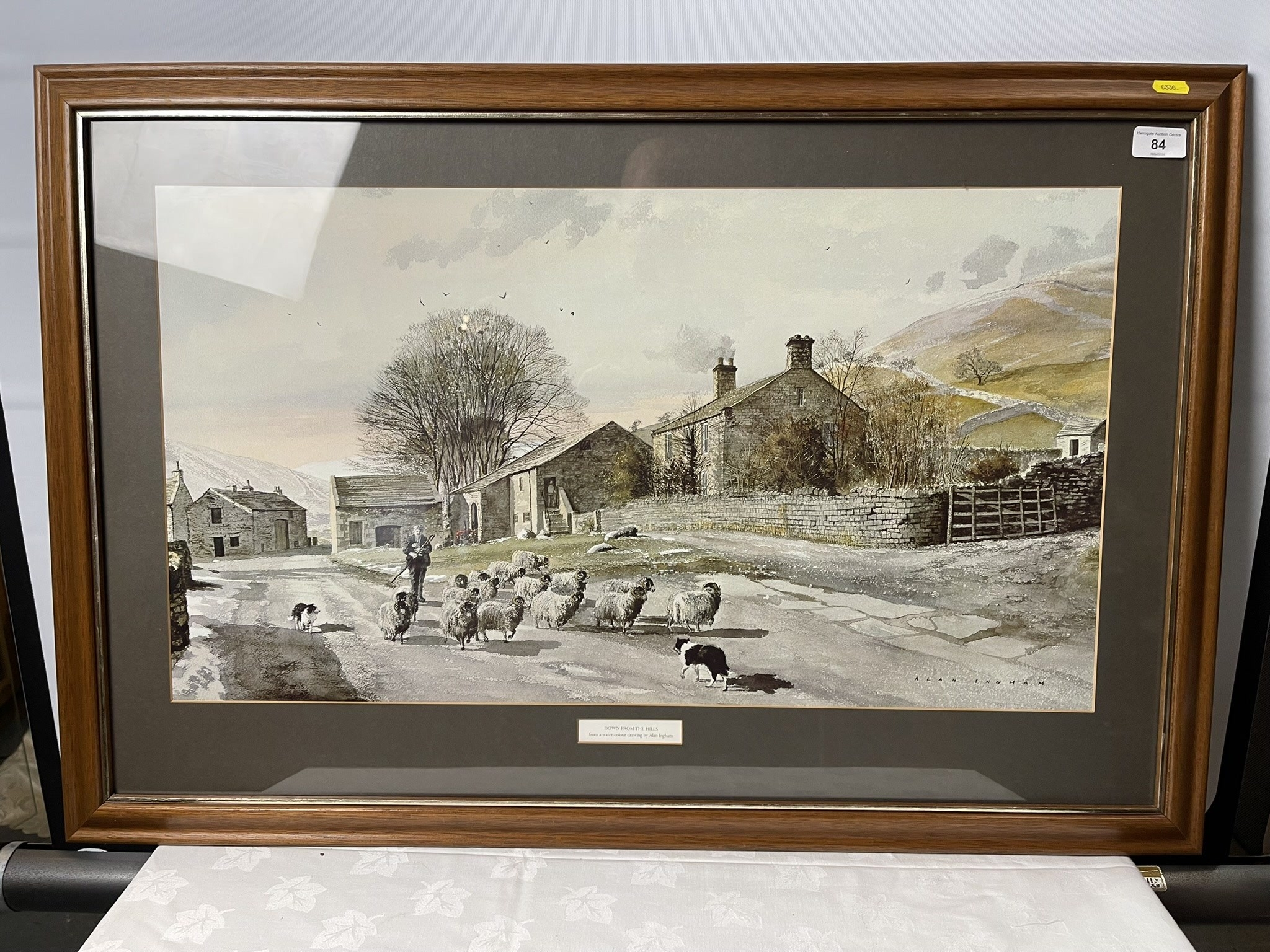 LARGE FRAMED "DOWN FROM THE HILLS" PRINT BY ALAN INGHAM
