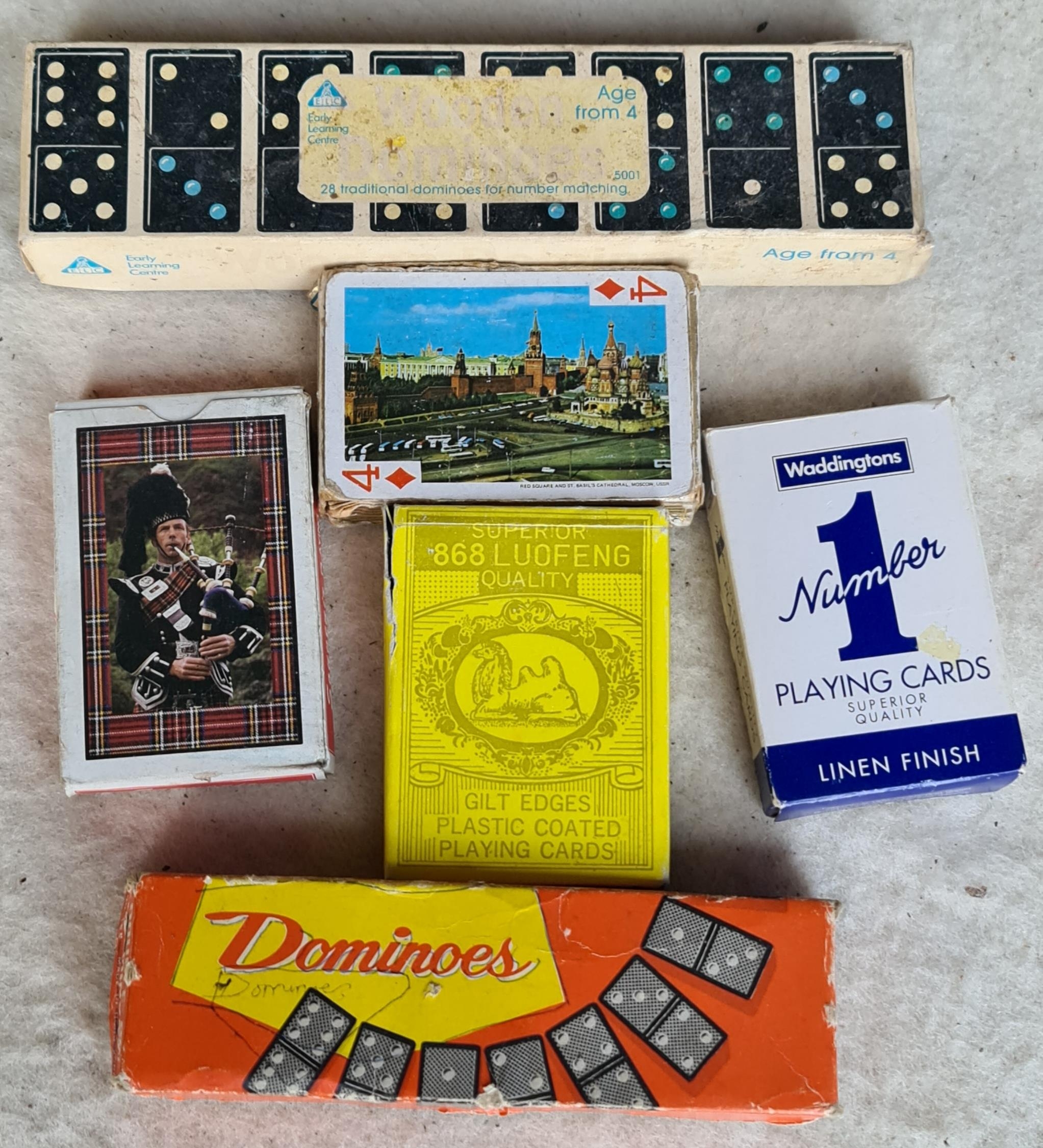 Vintage Playing Cards and Dominoes. Shipping is available. Please ask for a quote before bidding. Where possible we combine shipping costs. Remember, if you are the highest bidder above reserve on this Lot you have bought the item and are legally responsible for the item. Viewing is recommended in either person or via video link. Contact us to arrange.