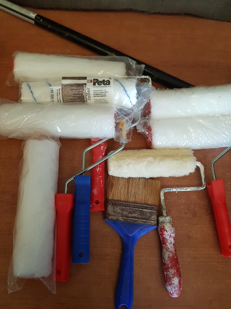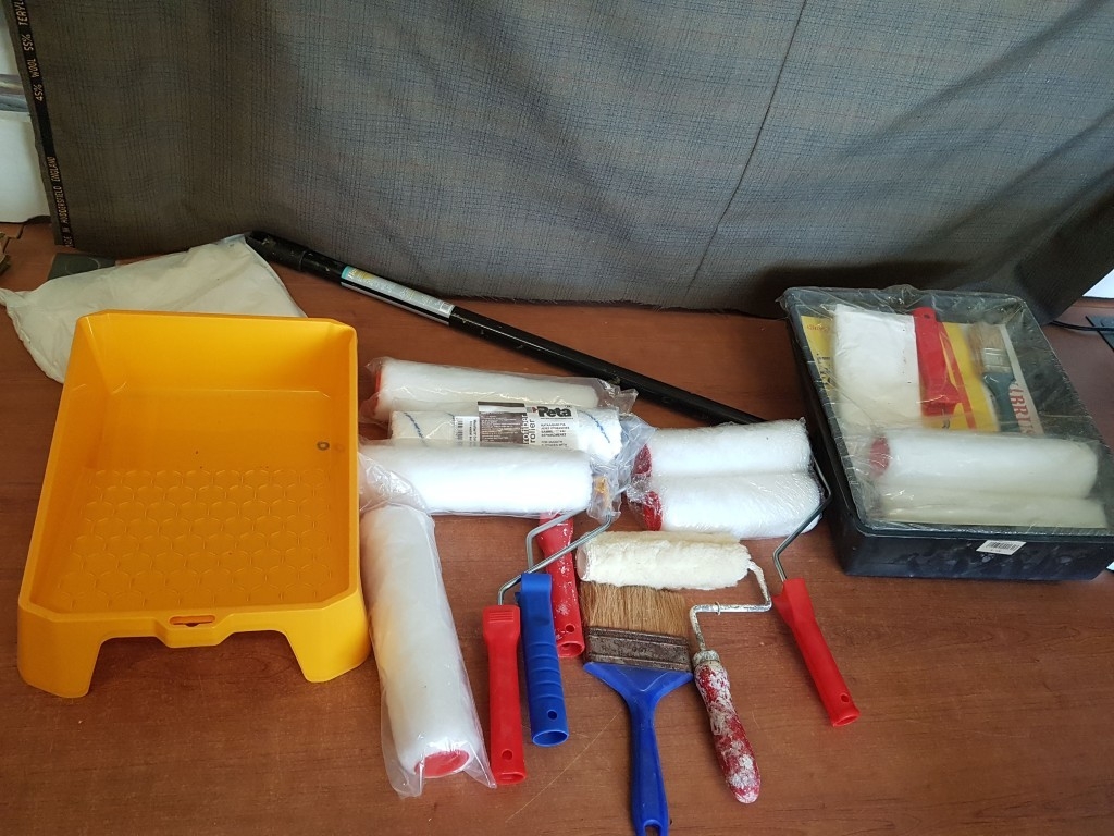 Assorted Collection of Painting Tools; Inc. Paint Trays, Brush, Roller Cages, Paint Roller Refill and Others.