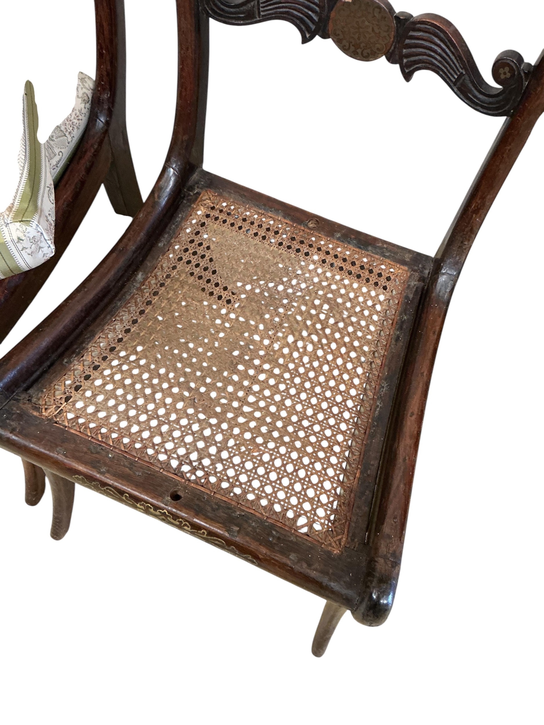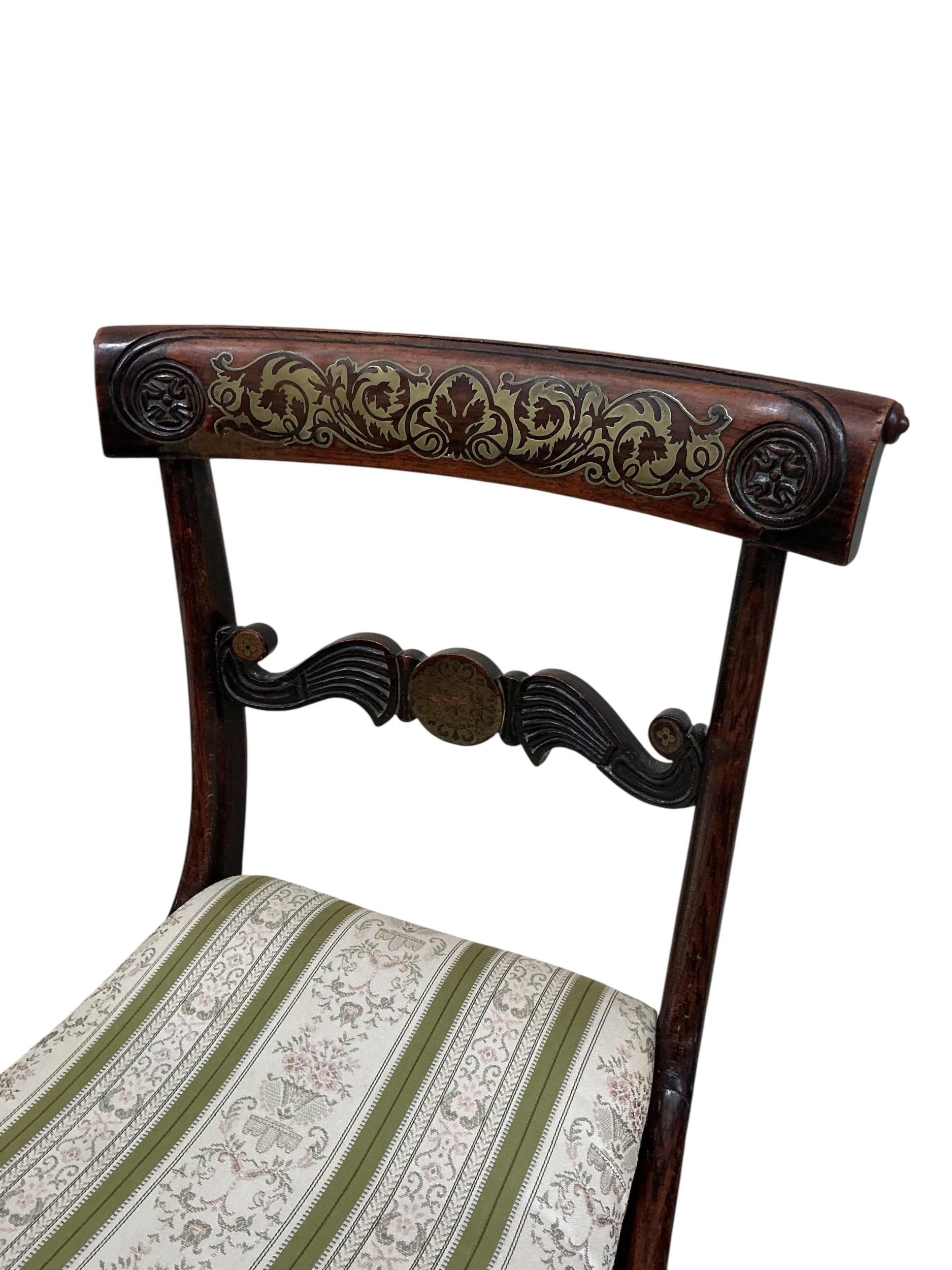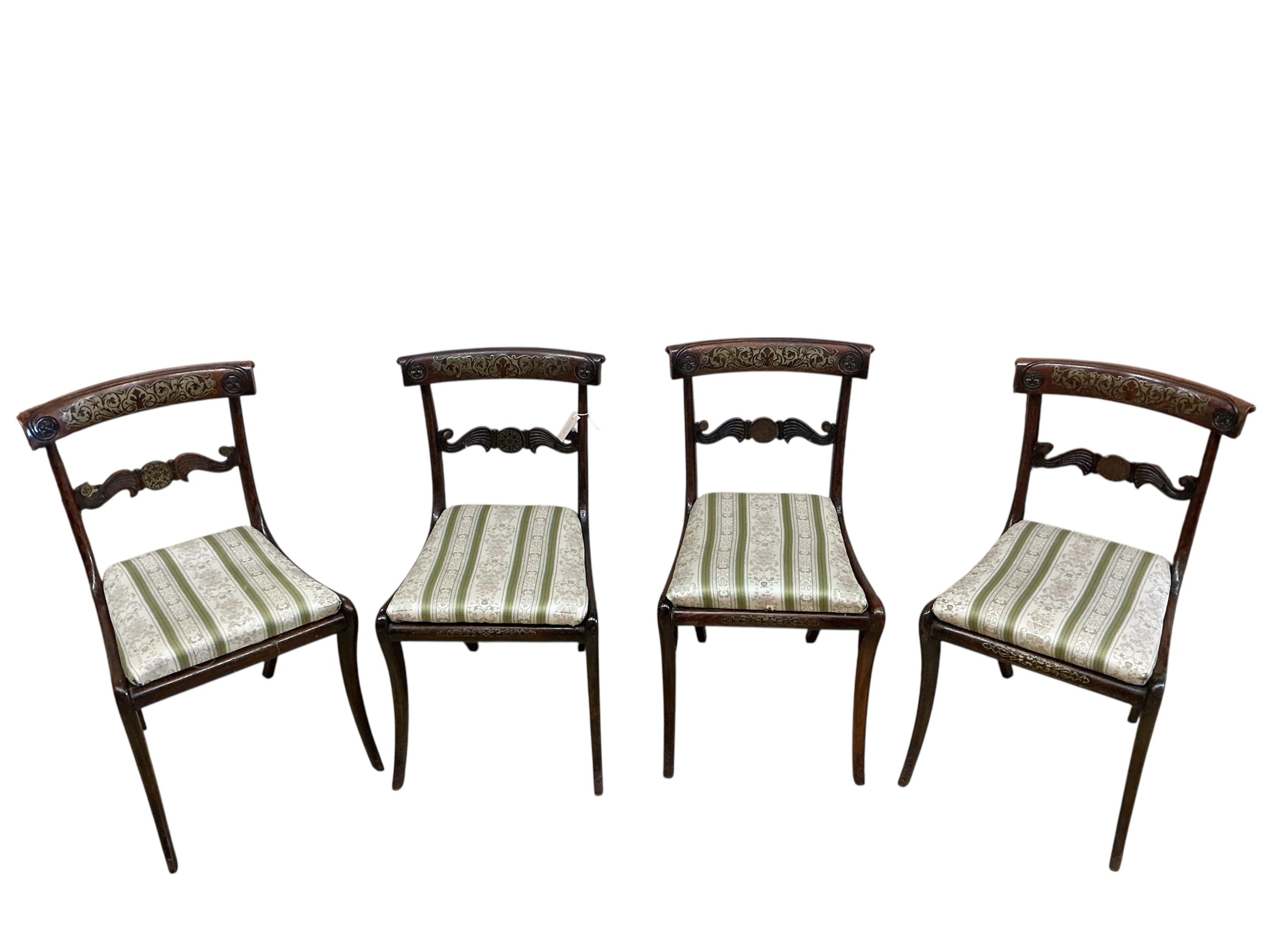 A set of four Regency brass inlaid simulated rosewood dining chairs