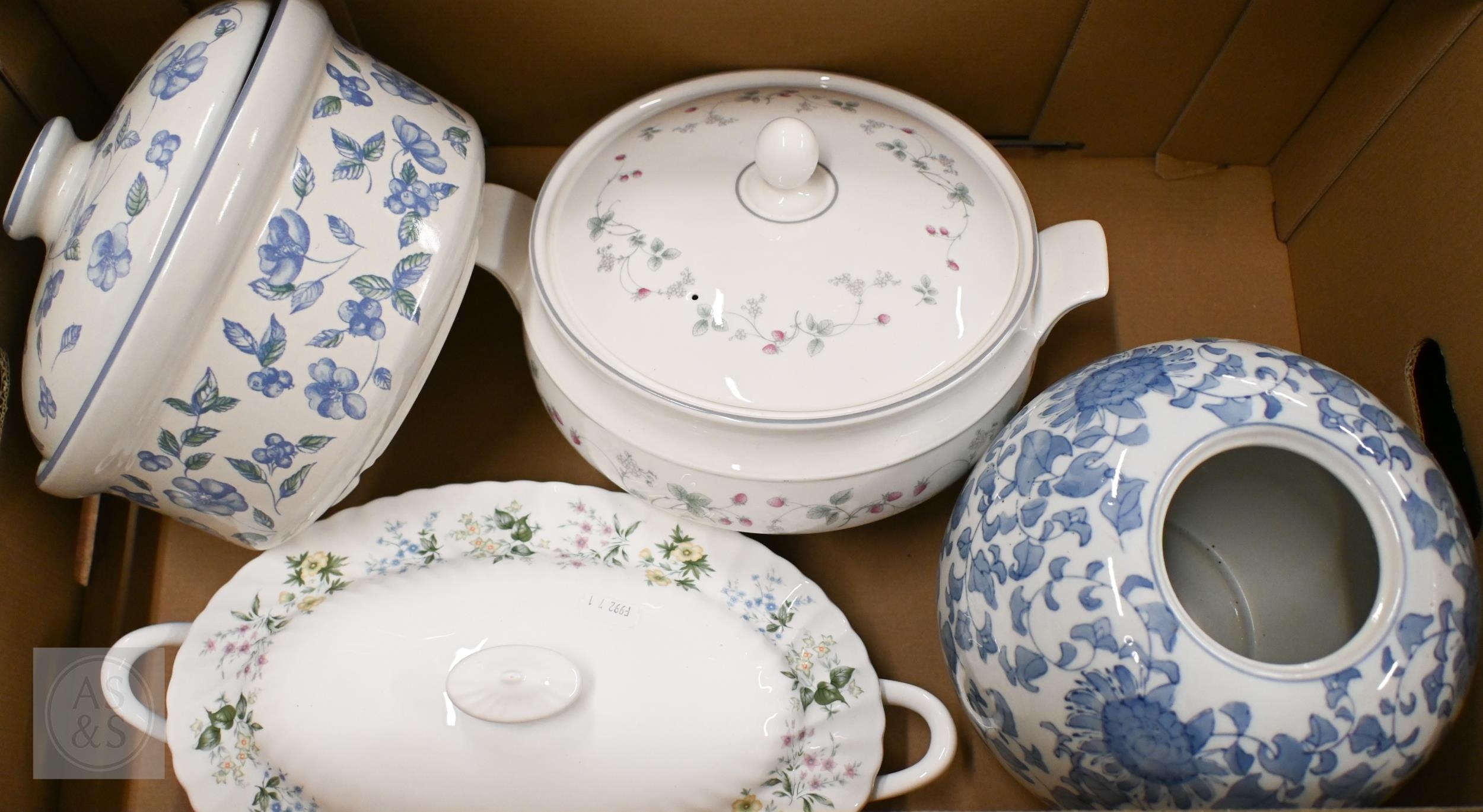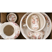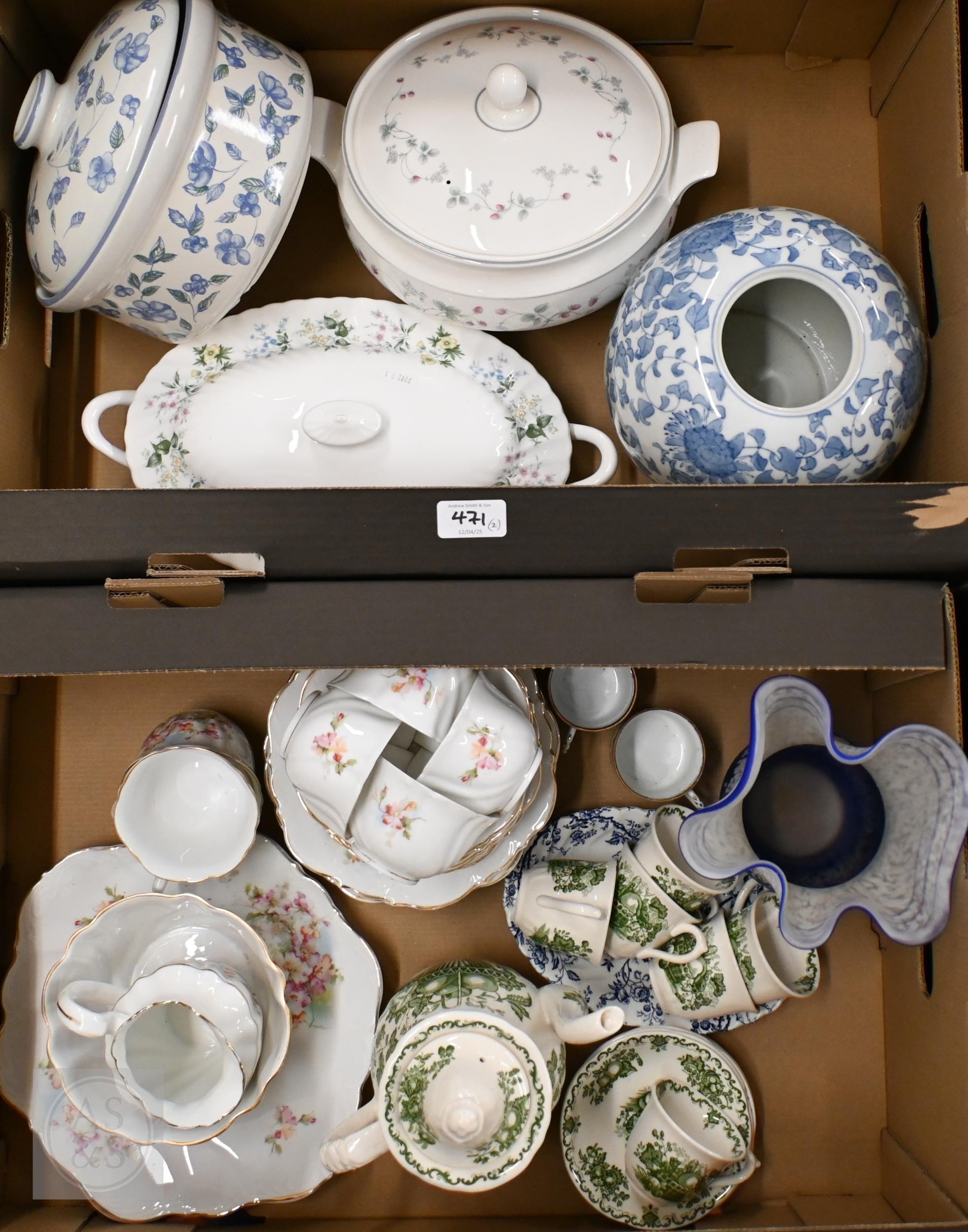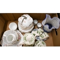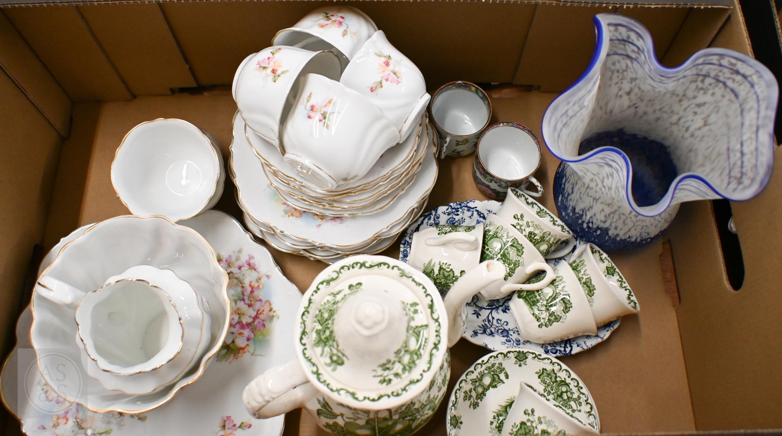 A Masons 'Floral Basket' coffee service to/w a Continental floral-printed tea service, a papillon glass vase and other ceramics (2 boxes)