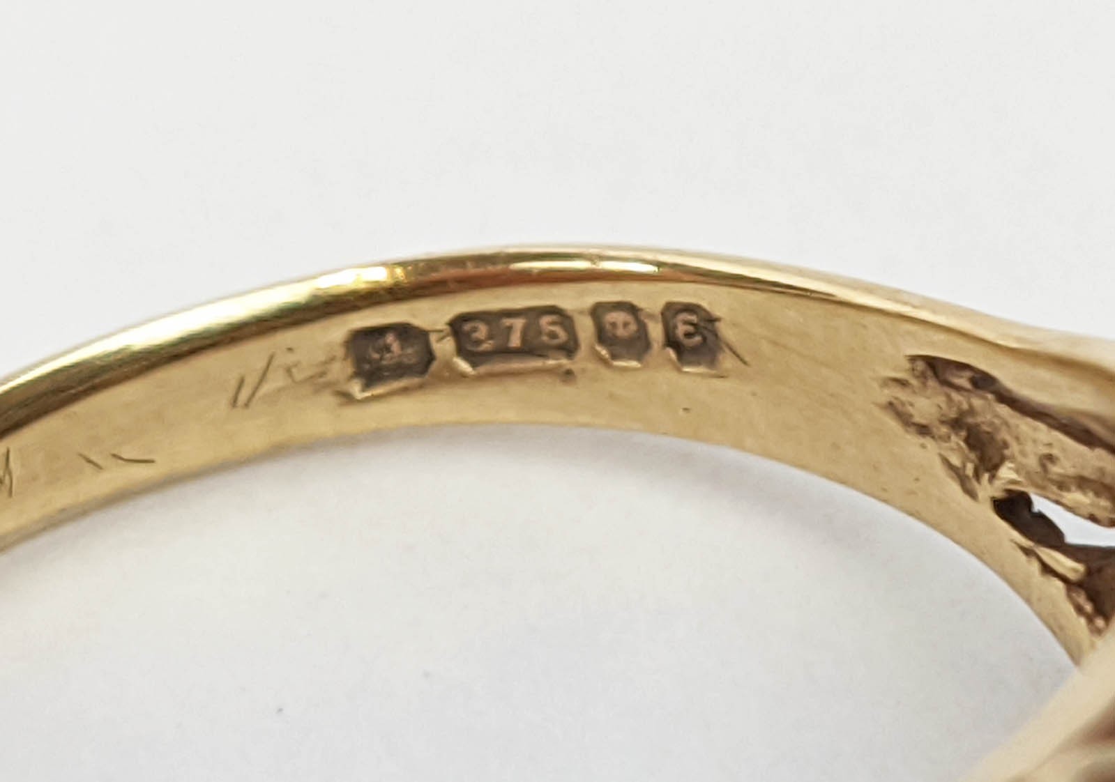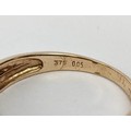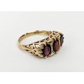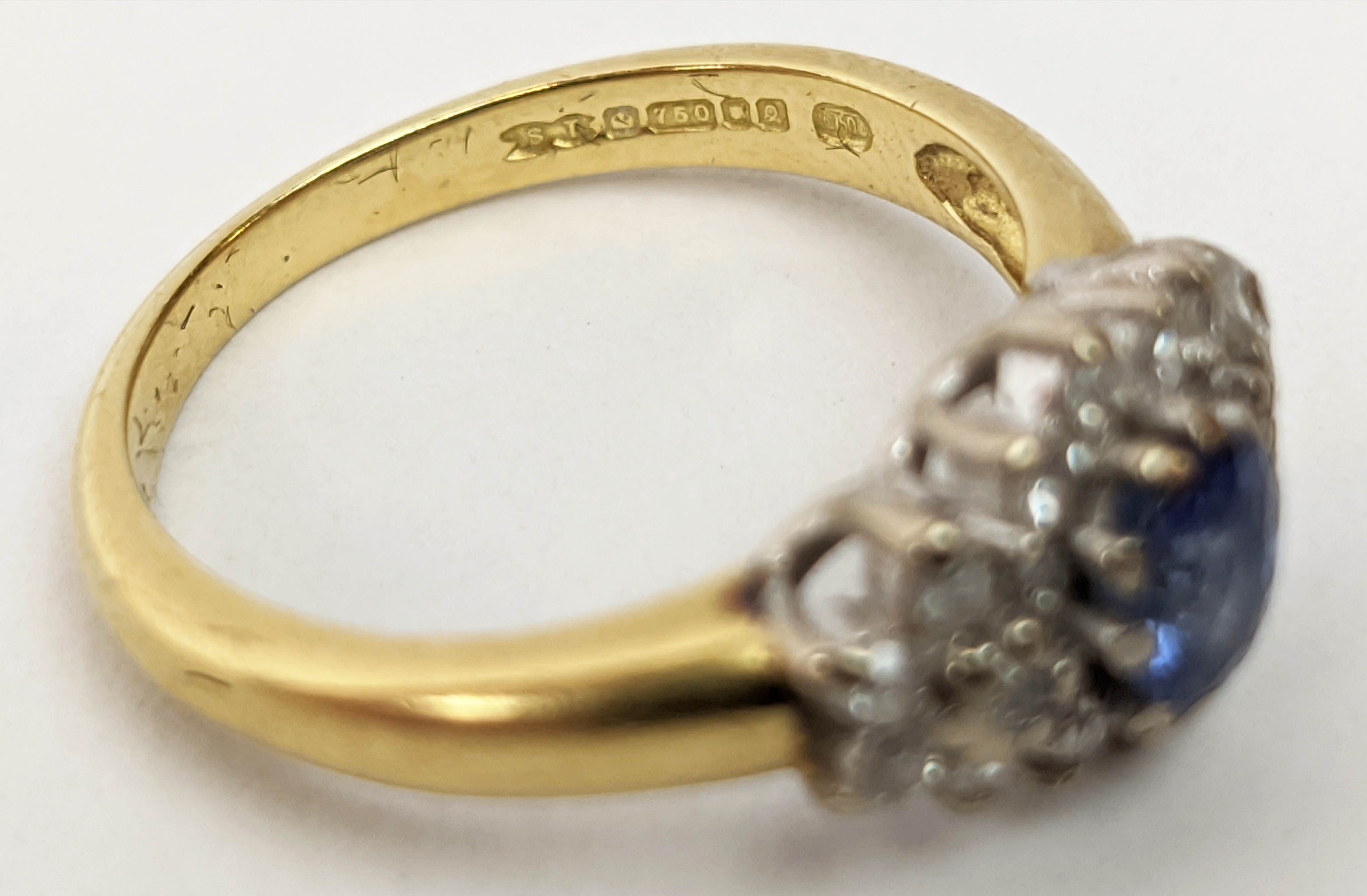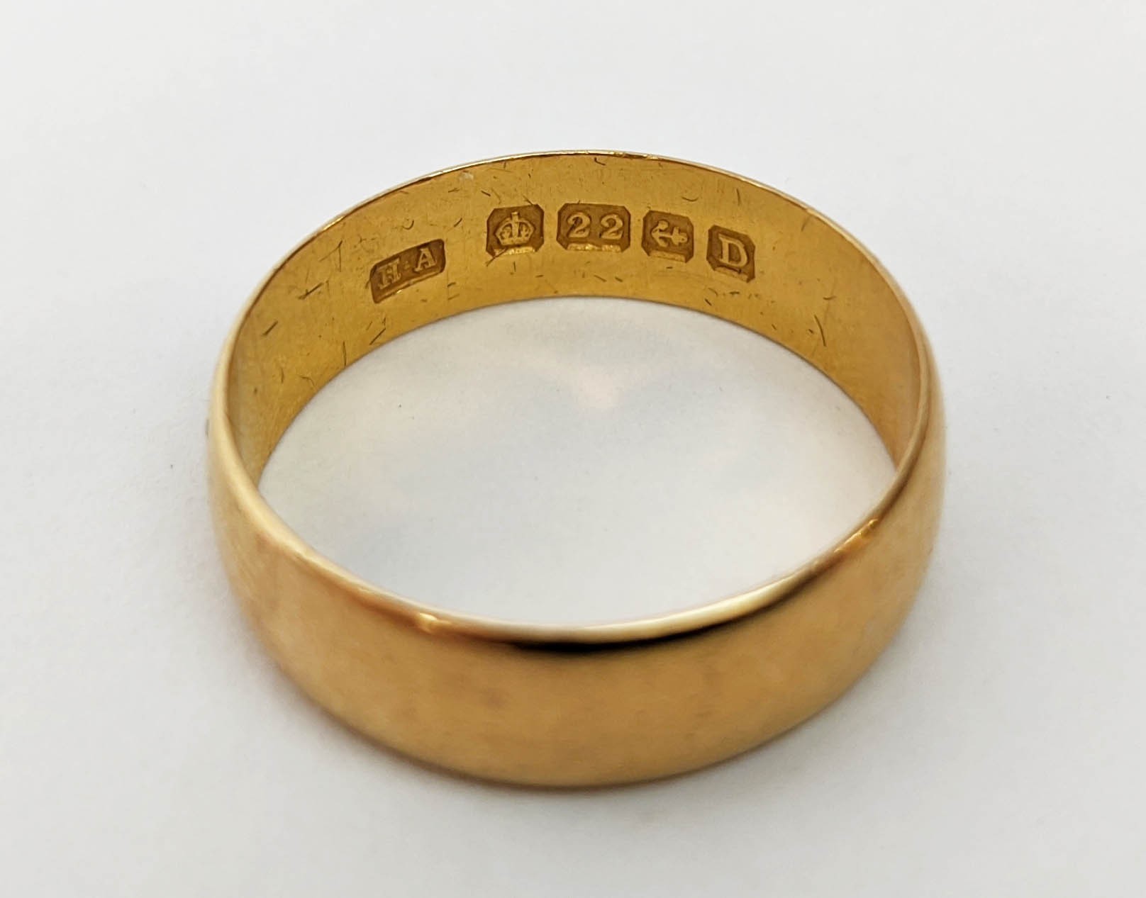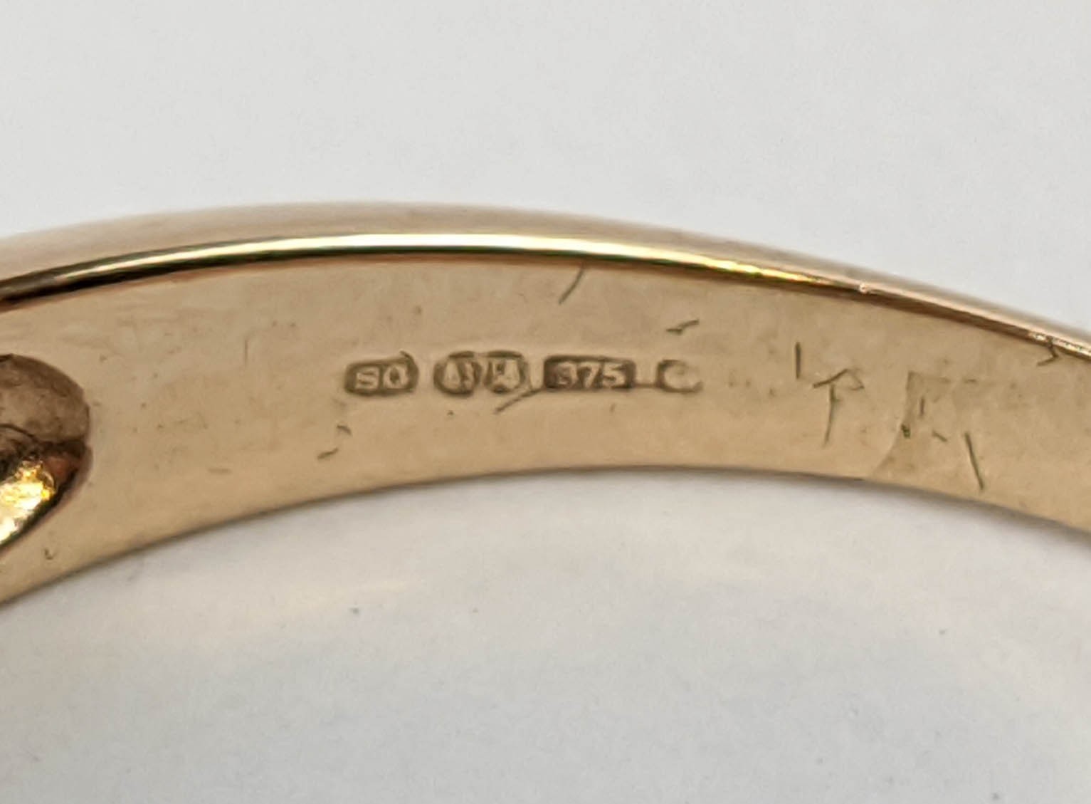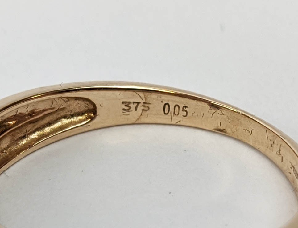 FOUR VARIOUS DRESS RINGS, comprising a 22ct gold wedding band, ring size Q½, 4.64 grams; a 9ct gold single stone diamond ring, 0.05ct, ring size U, 3.02 grams; a 9ct gold three stone garnet set dress ring, heart motif pierced gallery setting, ring size P½; an 18ct gold sapphire and diamond dress ring, central sapphire of approximately 0.20ct with a diamond cluster surround, ring size K½, 3.79 grams. (4)
