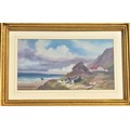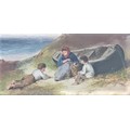 Sarah Louisa Kilpack (British 1839-1909), Fishermen's cottages on the coast, oil on paper, signed 27 x 50cm.