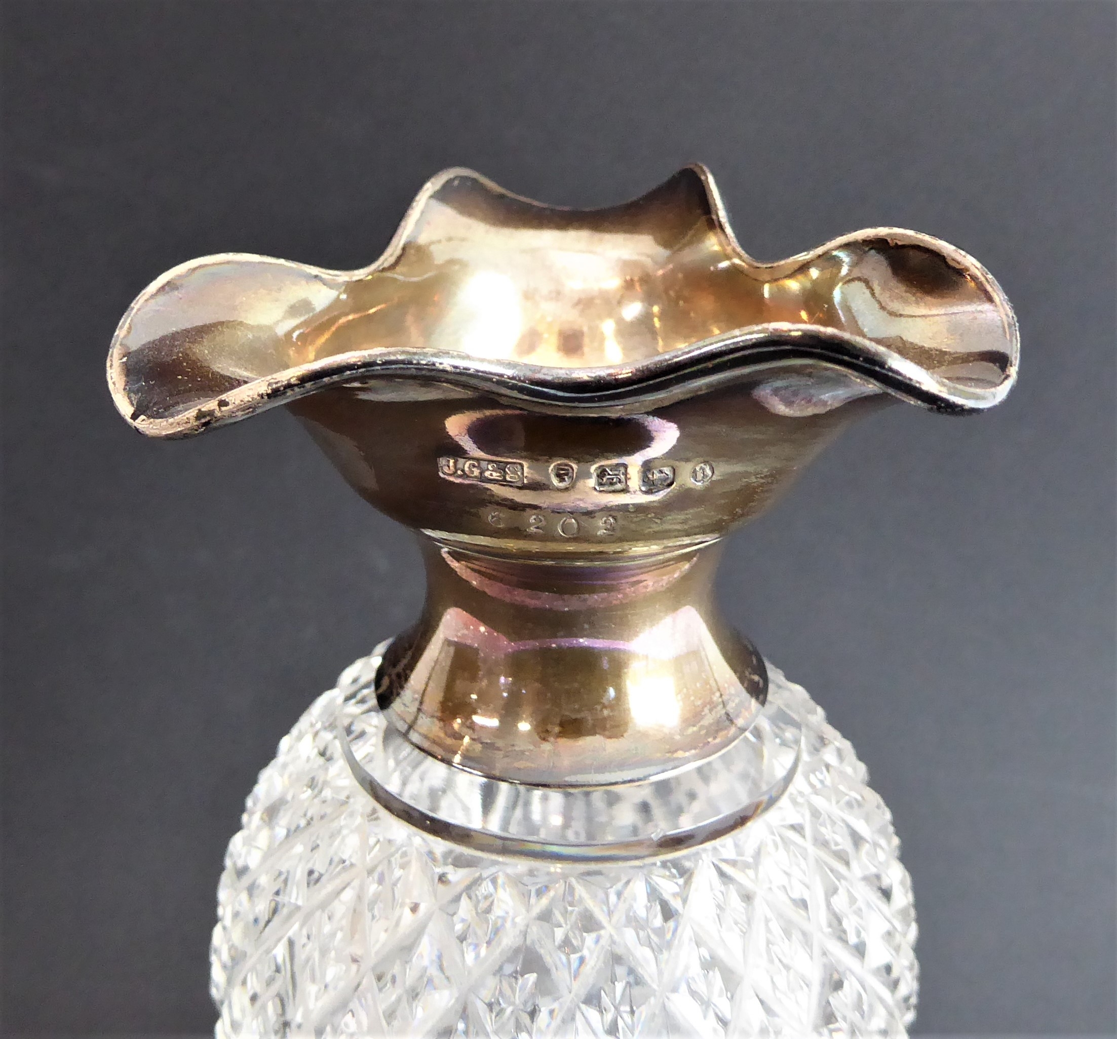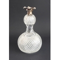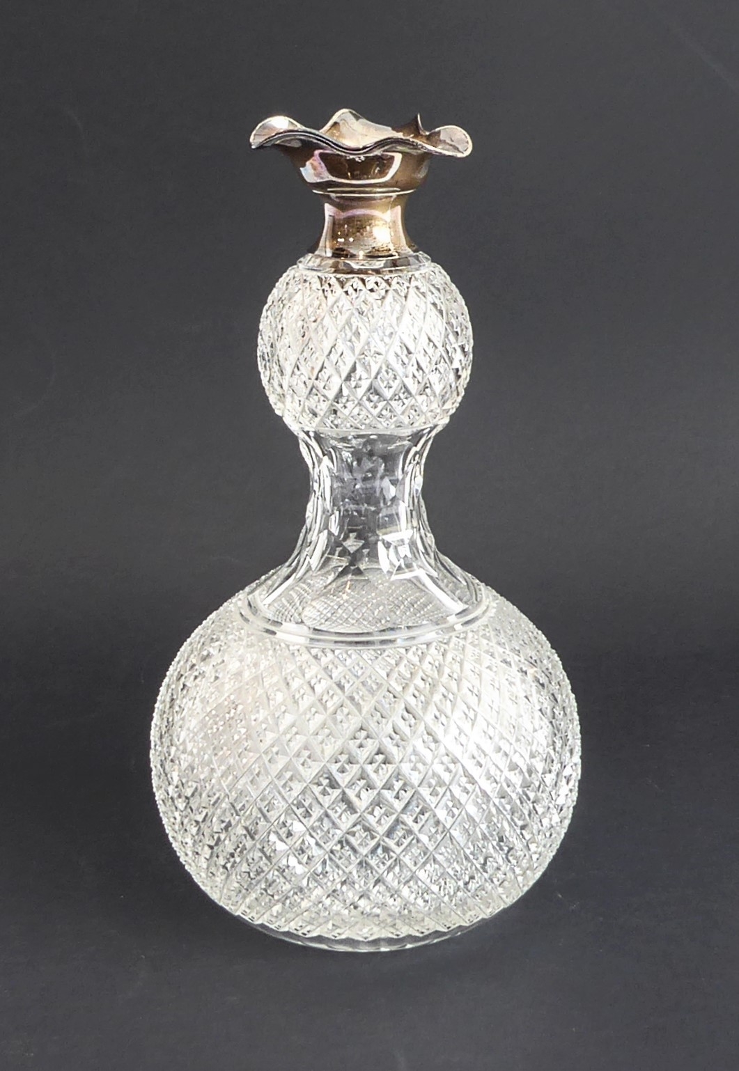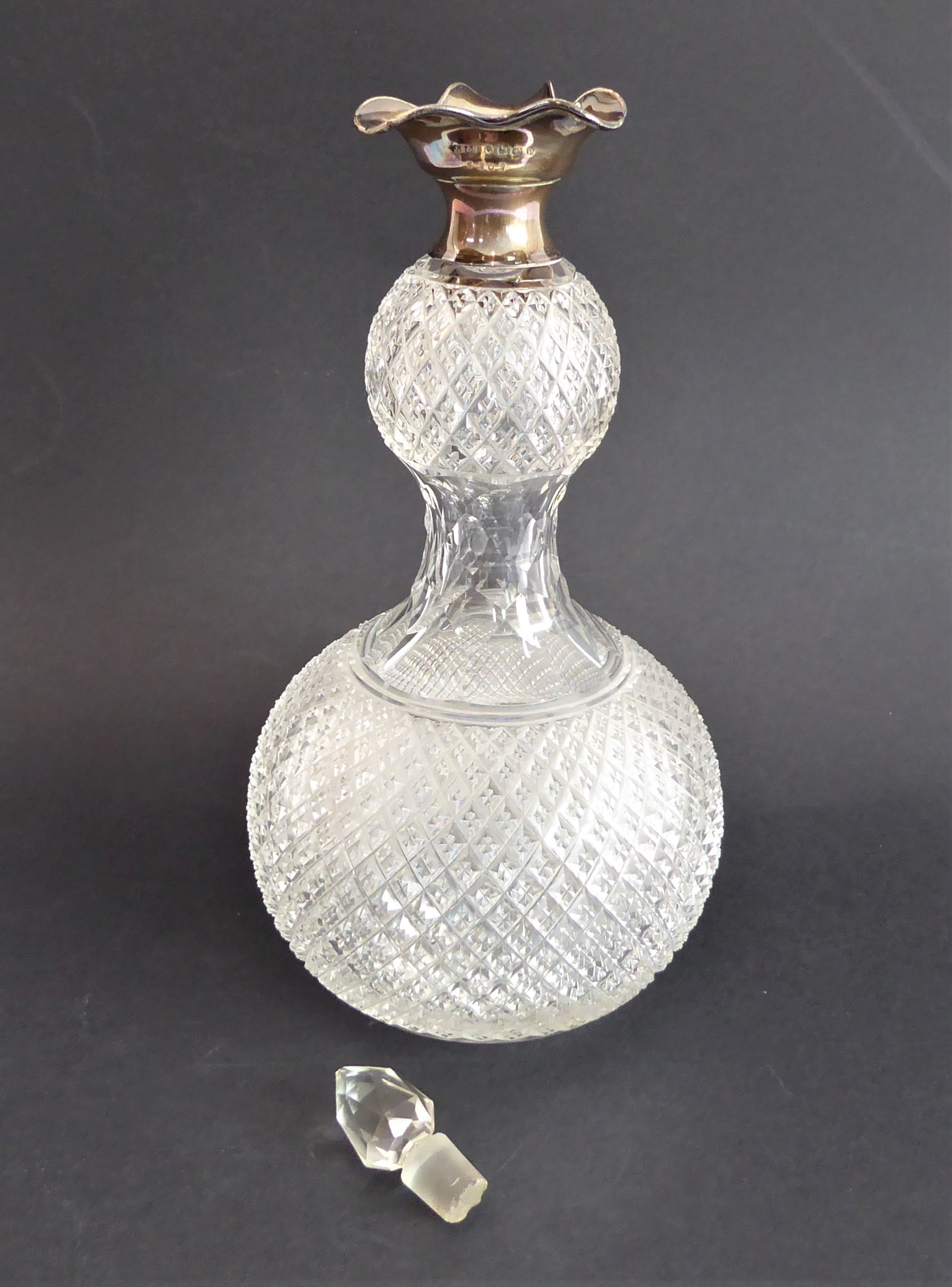 a 19th century cut-glass double-gourd shaped and silver mounted decanter with associated stopper, assayed Birmingham 1887.
