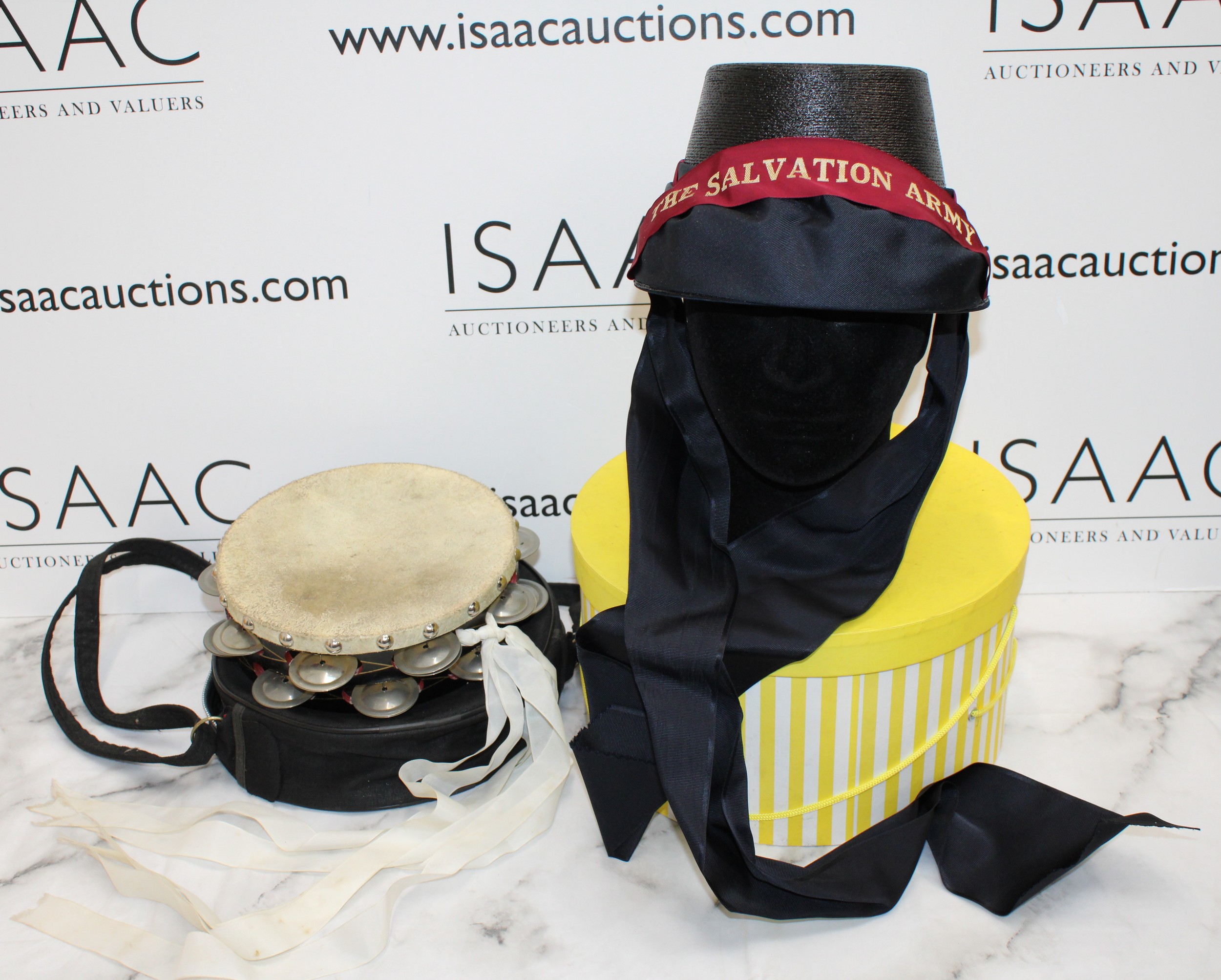 A Collectable Boxed Salvation Army Bonnet And A Tambourine In A Case As Shown