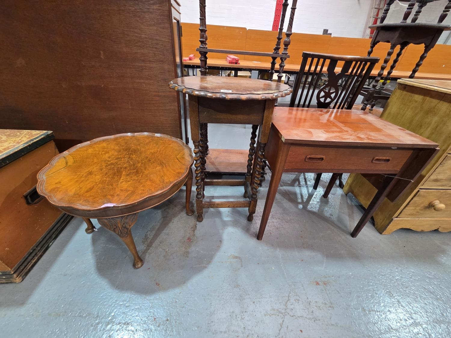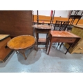 A teak style drawer cabinet, oak occasional table and a coffee table